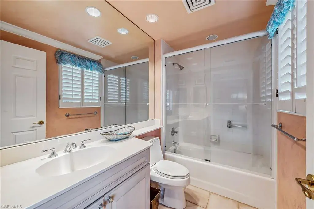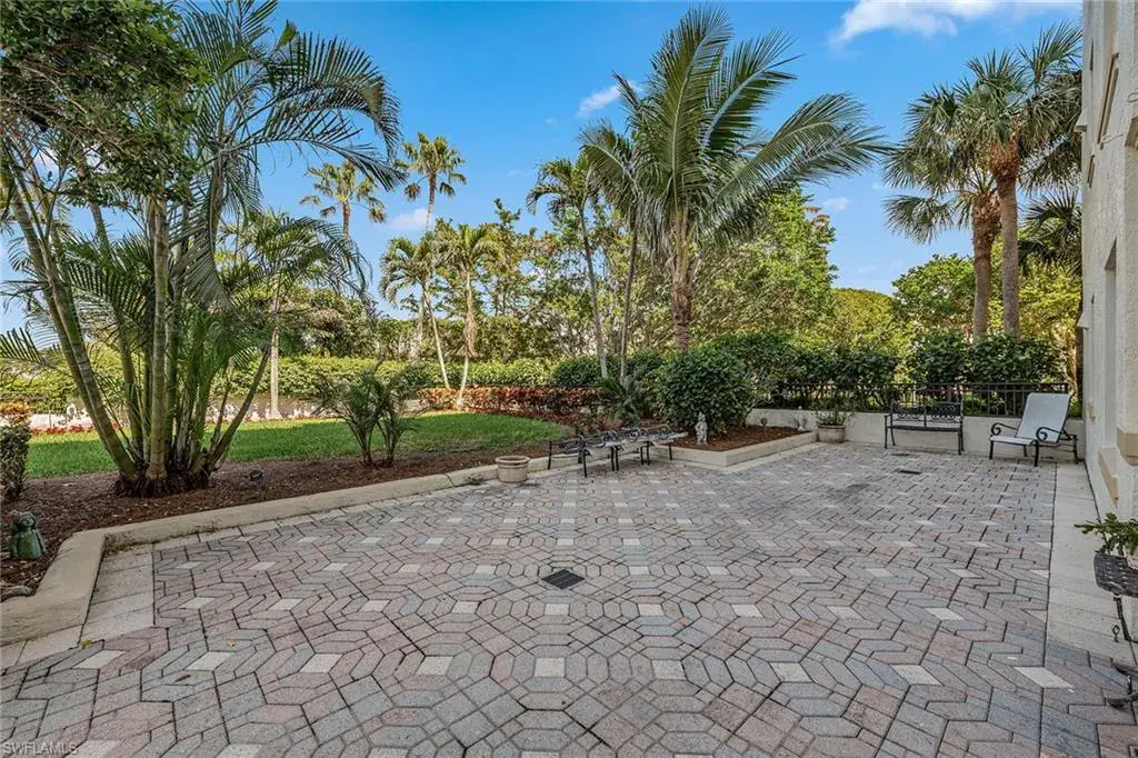 Amazing first-level home lives like a private villa with patio and open space! Enter this spacious and popular three-bedroom, three-bath floor plan from your private foyer into an expansive living and entertaining space highlighted by floor-to-ceiling sliding glass doors, elegant tile flooring and an expansive screened-in lanai with electric rolldown hurricane protection. The kitchen design features a peninsula countertop with a separate breakfast table area with maximum natural light illuminating the space. The spa-inspired primary bath features an oversized shower and dual vanities. Your friends and family can enjoy privacy and comfort in the spacious guest bedrooms with en-suite baths. Mansion La Palma residents enjoy manicured common areas, and a relaxed and private tropical pool. Experience Bay Colony and Pelican Bay beach clubs, with attended beach services or work on your serve at the newly updated Bay Colony Tennis Club.