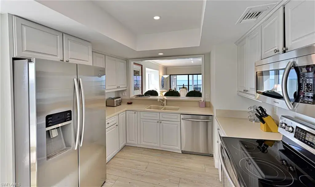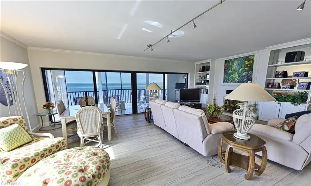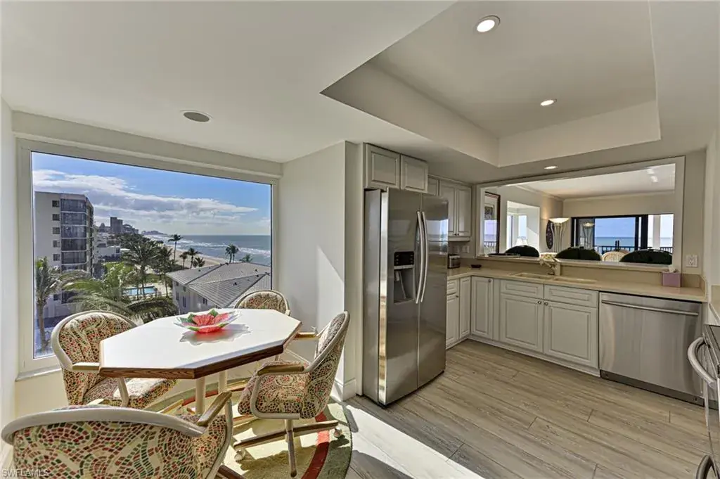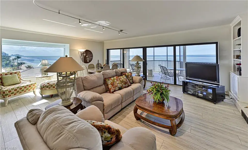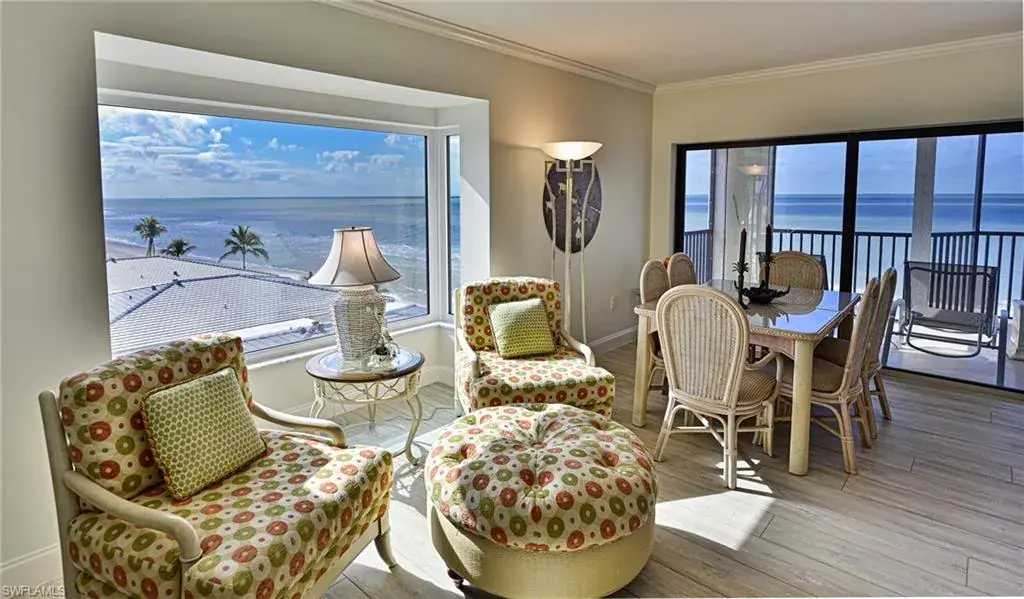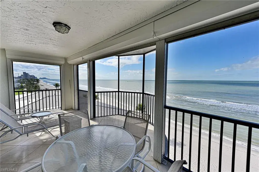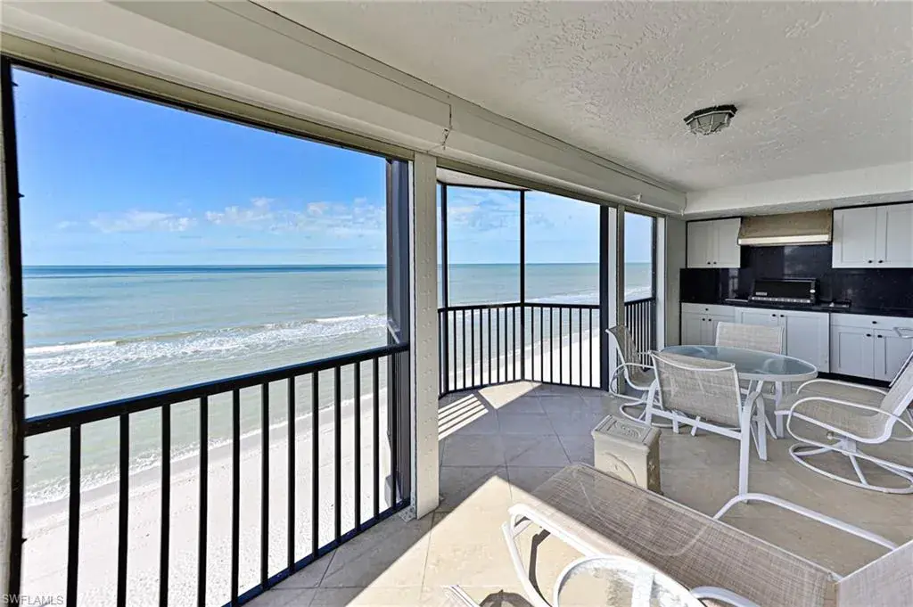 Rarely available direct beach front and bay view condo located in Mansions at Vanderbilt Beach. Only 12 luxury units in this building! This property is a 6th floor unit and offers direct west and southwest “on the sand views including the Naples coastline. Layout includes 2,400 ac sq ft with 3 bedrooms and 3 total baths. This condo has a wood burning fireplace with a rare gas grill on the screened lanai with wide Gulf of Mexico views and year round sunsets. The floor plan is open and spacious with views from every room. Spacious Master suite offers large bath with separate tub and shower and his and her vanities. Mansions offers private beach access, beach entry pool, Mercato mall and entertainment across the street, approximately 30 minutes to international airport. Furniture & furnishings negotiable. Mansions has been updated with all new larger impact windows, new lobby, pool, roof and paint and is one of the most desirable condo buildings on Vanderbilt Beach.