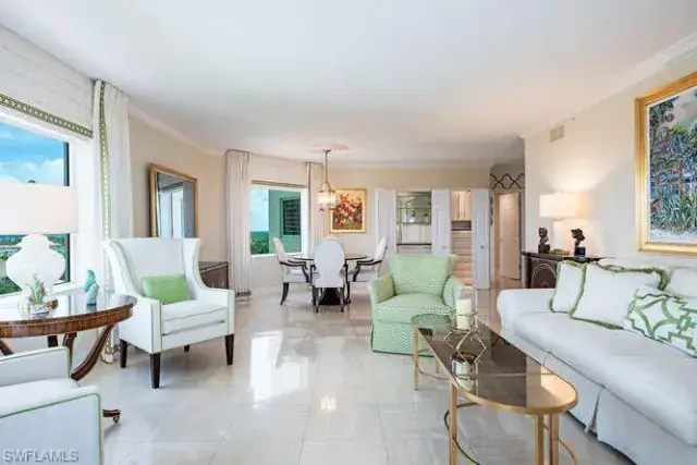This elegantly maintained home provides the lifestyle everyone dreams about. The 2,555-square-foot, two-bedroom, 2-1/2 bath plus den residence radiates beauty and comfort. The soft finishes will enrapture one in comfort while feasting upon the magnificent vistas of the Gulf of America and Pelican Bay. Experience every sunrise and sunset while enjoying the sounds of songbirds and gentle breezes from two large lanais. Soak in the warmth of the Gulf, sun, and natural beauty of Southwest Florida while walking the berm or riding the tram through the mangroves and scenic waterways to the white sand beach and private clubhouse with outdoor dining. Situated within Pelican Bay, the Marbella is a luxury high-rise with amenities that are second to none. Our helpful staff of 75+ provide concierge, dining including room service, housekeeping, maintenance, assisted care and many more services at your fingertips.