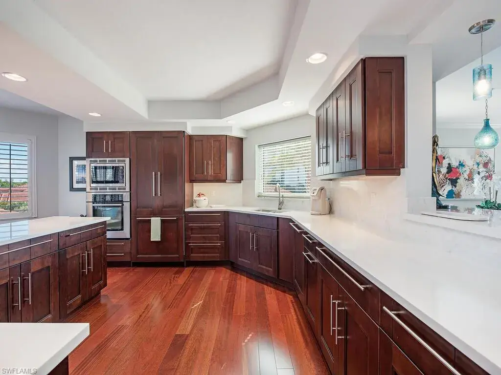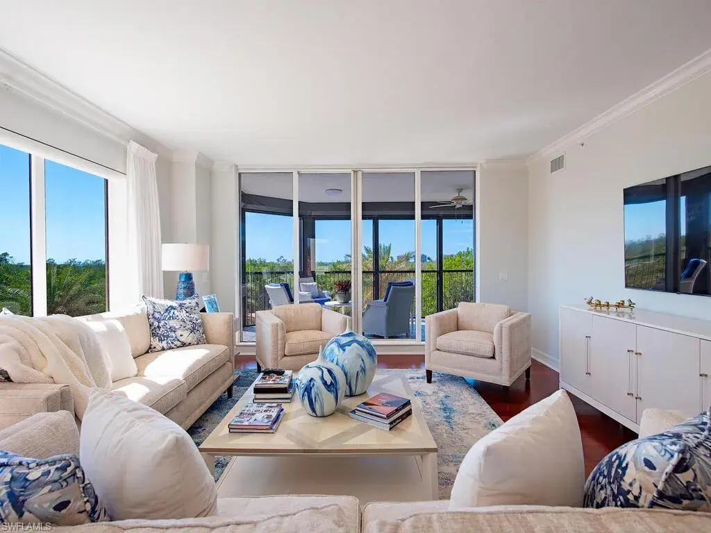 Be the first to live in this beautifully renovated third-floor, 2,555-square-foot, two-bedroom plus den, three-bath condominium located in the heart of Pelican Bay. Perched atop the lush landscape of Southwest Florida’s Gulf Coast, enjoy the sights and sounds of nature, warm sun, and soft, cool ocean breezes and breath-taking sunsets. Inside your home you will be enwrapped in the warmth of rich wood cabinets and flooring accenting the bright and warm natural décor. The luxurious amenities of The Marbella will enhance your lifestyle. Savor fine dining in four beautiful venues or order room service. Relax in the library, grand salon, and on the outside terraces. Amusement and entertainment await in the social, card, or arts and crafts rooms. Stay in shape at the fitness center, pool with lap lane, and spa. Giving peace of mind and healing, The Cove is a state-of-the-art 14-suite wing for assisted care that will comfort you. The concierge and staff will arrange all your desires and wishes. The Marbella at Pelican Bay offers a truly five-star resort lifestyle.