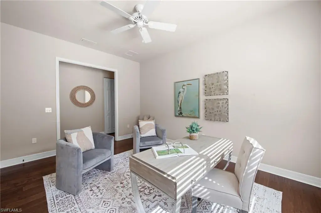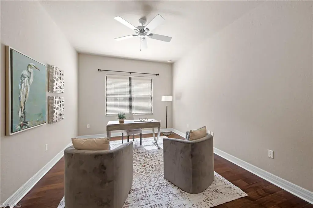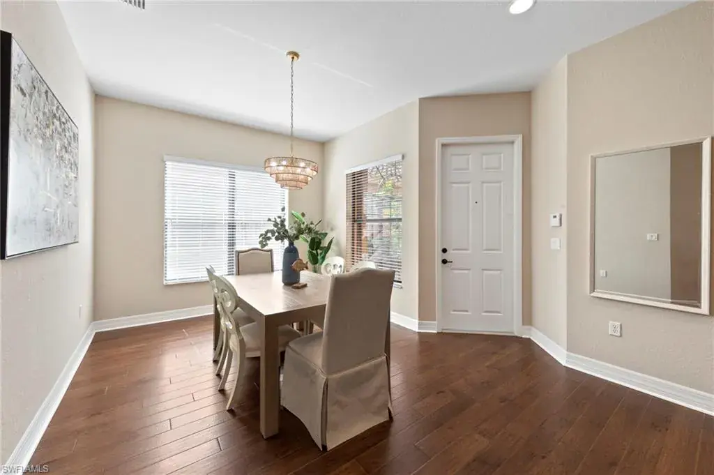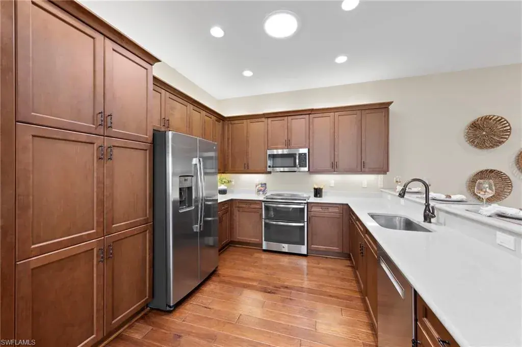 Immaculate and beautifully cared for 2-bedroom + den, 2.5-bath attached villa with a desirable split-bedroom floor plan and spacious two-car garage. This home offers both comfort and convenience with thoughtful upgrades. Warm wood floors flow through the primary bedroom, living and dining areas, and den, complemented by solid wood interior doors throughout. The kitchen is roomy and functional, featuring pull-out drawers and a walk-in pantry with custom shelving. Roomy living area and a separate dining room—perfect for creating different zones that suit your lifestyle. Solar tubes (2022) in the kitchen and living room provide natural light throughout the entire living area. Storage is plentiful with built-ins in both the primary and guest closets, additional hall closet in guest wing and separate laundry room with space for more cabinetry. Storm protection for all windows and a roll-down hurricane screen for the rear patio. Move-in ready and thoughtfully upgraded, this villa is a perfect blend of style, function, and peace of mind. Marbella Isles is a beautiful and wonderfully located North Naples community just off of Livingston Road btwn Vanderbilt Beach Rd and Pine Ridge – with a convenient entrance/exit off of Airport Rd as well. With a full time activities director on site at the gorgeous clubhouse, this is a very active community! Just some of featured calendar events happening throughout the month are aqua classes, workout classes, coffee talks, Mah Jong, Pickle Ball, Canasta games, and even a Back to School party! Other community amenities include large community pool, playground, gym, indoor basketball court.