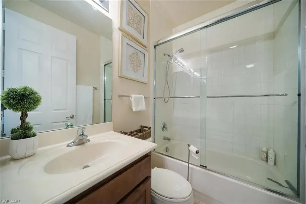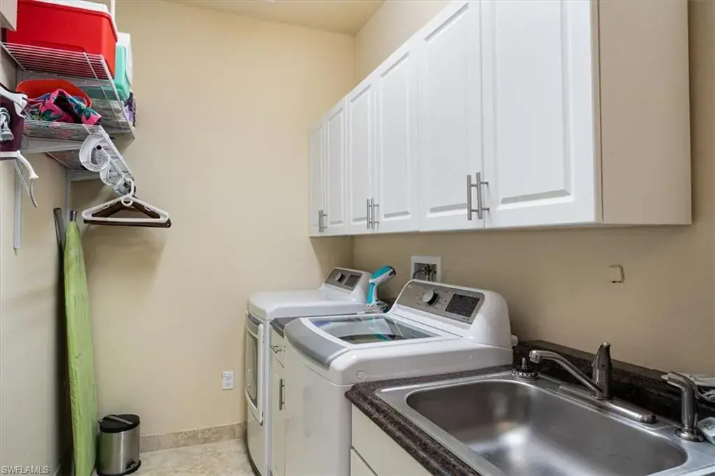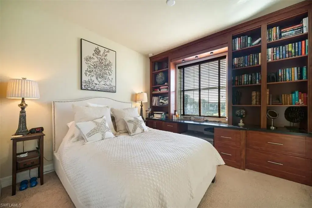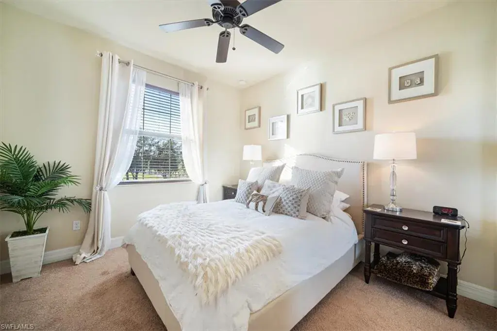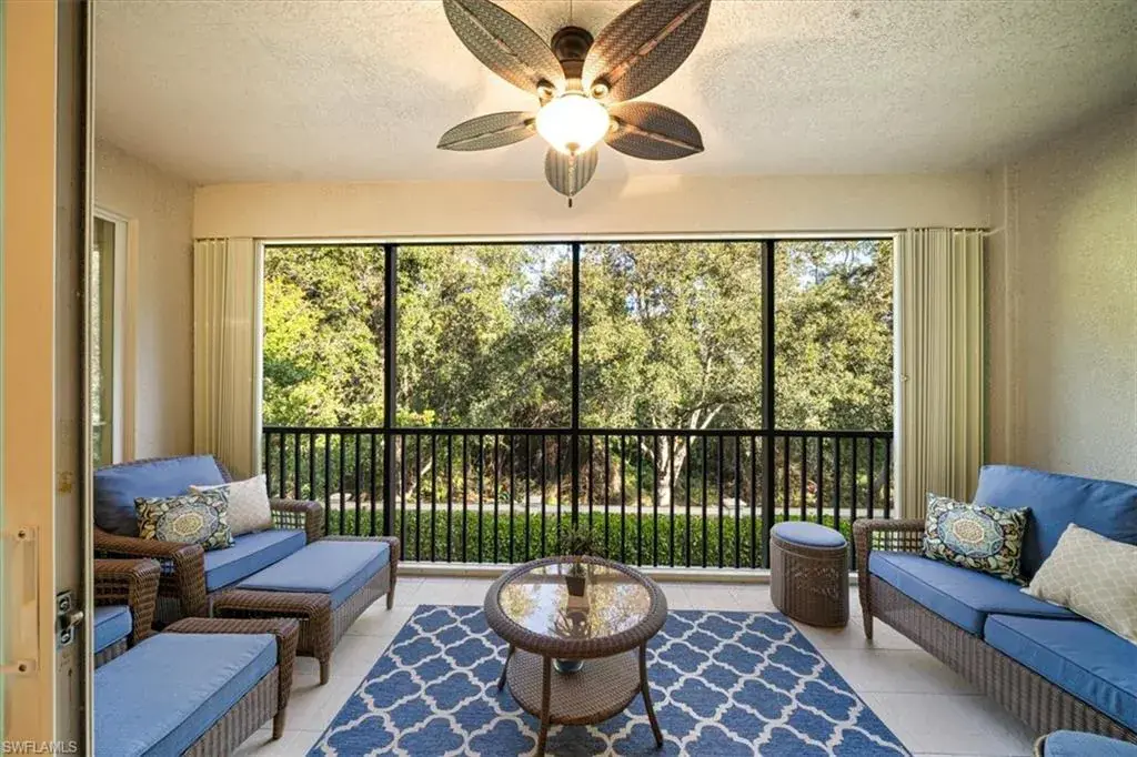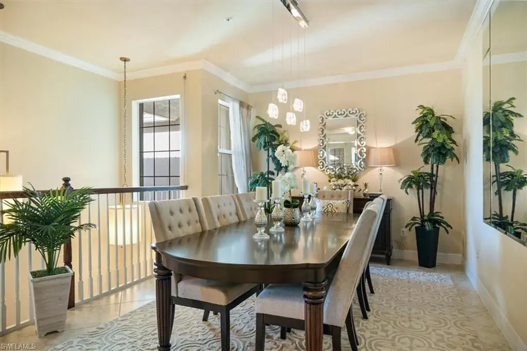 Welcome to this meticulously maintained 2nd-floor condo in the sought-after gated community of Marbella Lakes. Freshly painted and beautifully furnished with high-end decor (furniture package negotiable), this residence offers a spacious kitchen with warm wood-toned cabinets, a large pantry, stainless steel appliances, and a tiled backsplash. Enjoy versatile dining options with a breakfast bar, eat-in kitchen nook, and formal dining space. Upgrades include crown molding, updated lighting, and custom draperies and blinds. The neutral tile flooring is laid on a diagonal throughout. A guest suite doubles as a den with custom built-ins for a desk and storage. Relax on the private screened lanai with tiled floors. Community amenities feature a resort-style pool, splash pad, fitness center, clubhouse, three clay tennis courts, and four new pickleball courts. Conveniently located near shopping, dining, downtown Naples, and the Gulf of Mexico’s sunny beaches, just west of I-75—an ideal location for enjoying the Naples lifestyle.
