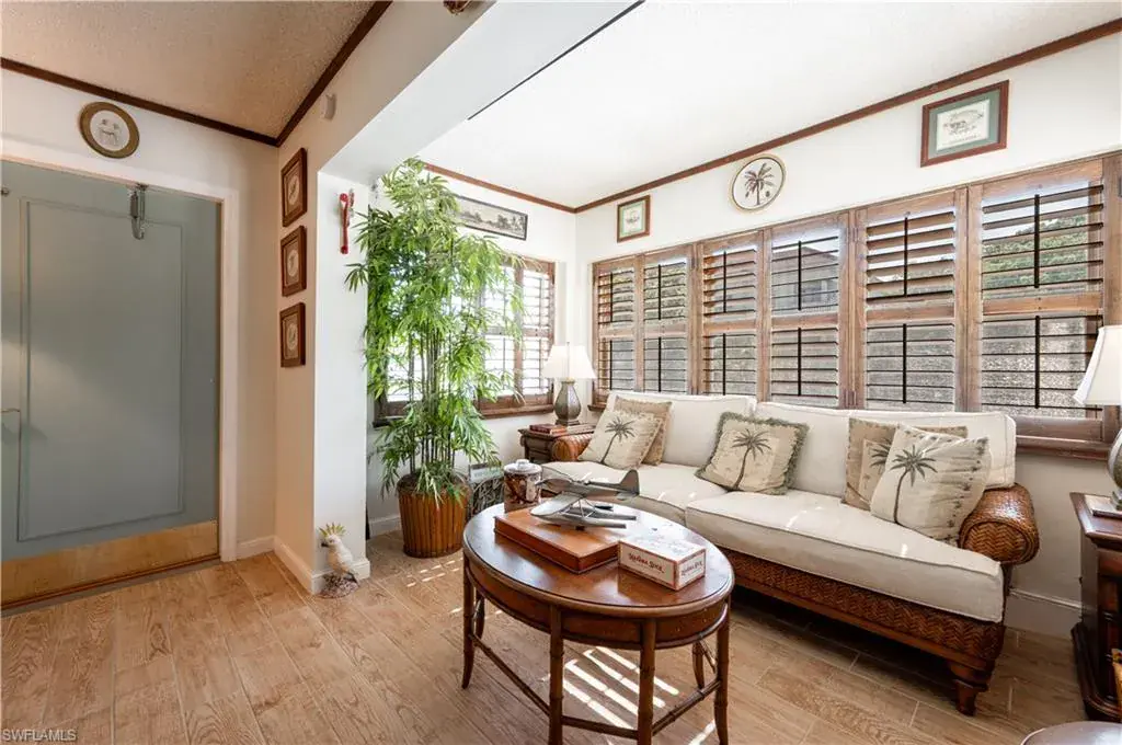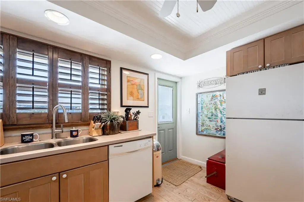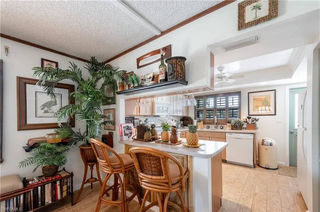 palm, parrot and nautical decor add to the tropical vibe. This optimum location is a short walk to the bustle and glamour of 5th Ave S, Collier Park tennis courts, Cambier Park events, Gulfshore Playhouse, around the corner from quayside restaurants of Tin City, and a short bike ride to the beach and Naples Pier. This charming oasis offers the perfect lifestyle within the Naples Historic District. This is a marina community with possiblity of slip rentals. No-bridge access to the Gulf of Mexico.