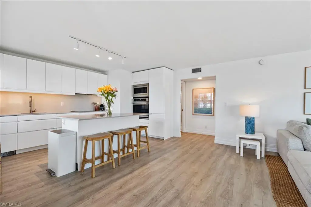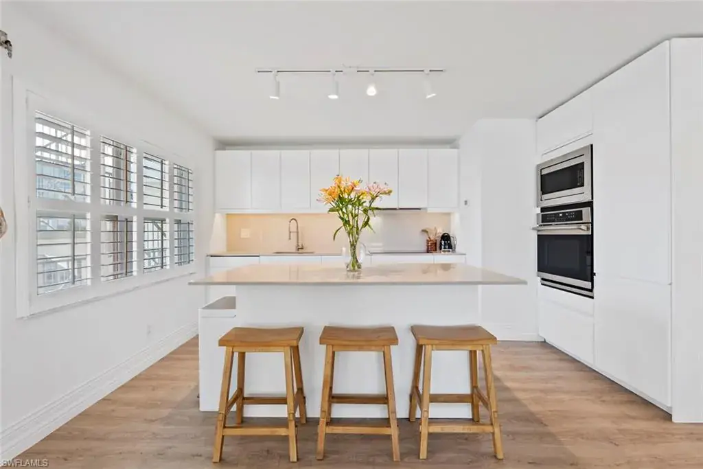 Boater’s Paradise! Nestled in the heart of Olde Naples, this sophisticated 2 Bedrooms + Den condo at 1100 8th Ave S, Unit #230K, offers an unparalleled blend of elegance, comfort, and convenience. Step into a beautifully renovated and designed open floor plan that features nice finishes, including a modern kitchen, and luxury flooring throughout. Move in ready, the spacious living area seamlessly flows into a lovely dining room, offering serene views of Naples Bay and picturesque Naples water views all day long. This residence provides access to amenities, including a private covered boat slip , a community pool, and easy living in the middle of downtown! Located just moments from world-class dining, boutique shopping, and the stunning Gulf beaches, this property boasts a lifestyle of leisure in one of Naples’ most coveted waterfront communities.