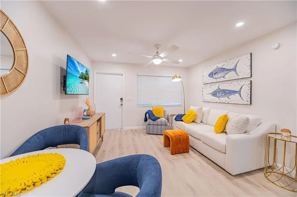 Naples Mariner Condominiums is one of the best kept secrets in Old Naples and one of the only condominium complexes that allow short term rentals which optimizes rental revenue. This perfectly renovated and impeccably maintained, ground floor condo is set inside of the dreamy mid-century modern architecture of the property. Experience the charm, comfort and convenience of this location. You will be within 1 block walking distance to our sugar sand beaches & Naples Pier and 2 blocks to the Third Street shops & restaurants. This condo offers everything you need for a perfect Naples lifestyle! Plus the comfort of a properly and well-managed building. Enjoy this upscale neighborhood, the benefits of your own dedicated parking space, 2 storage units, and heated pool. The condo is being sold fully furnished and ready to stay in or rent out immediately. The unit has an outstanding rental history…existing reservations and VRBO listing will be transferred to the new owner.