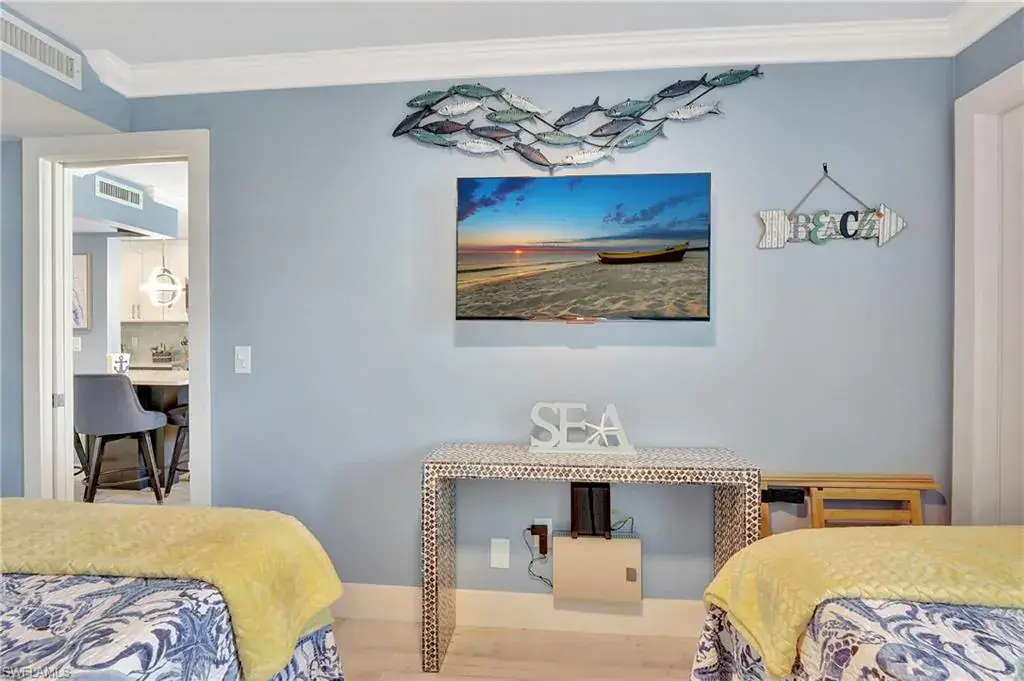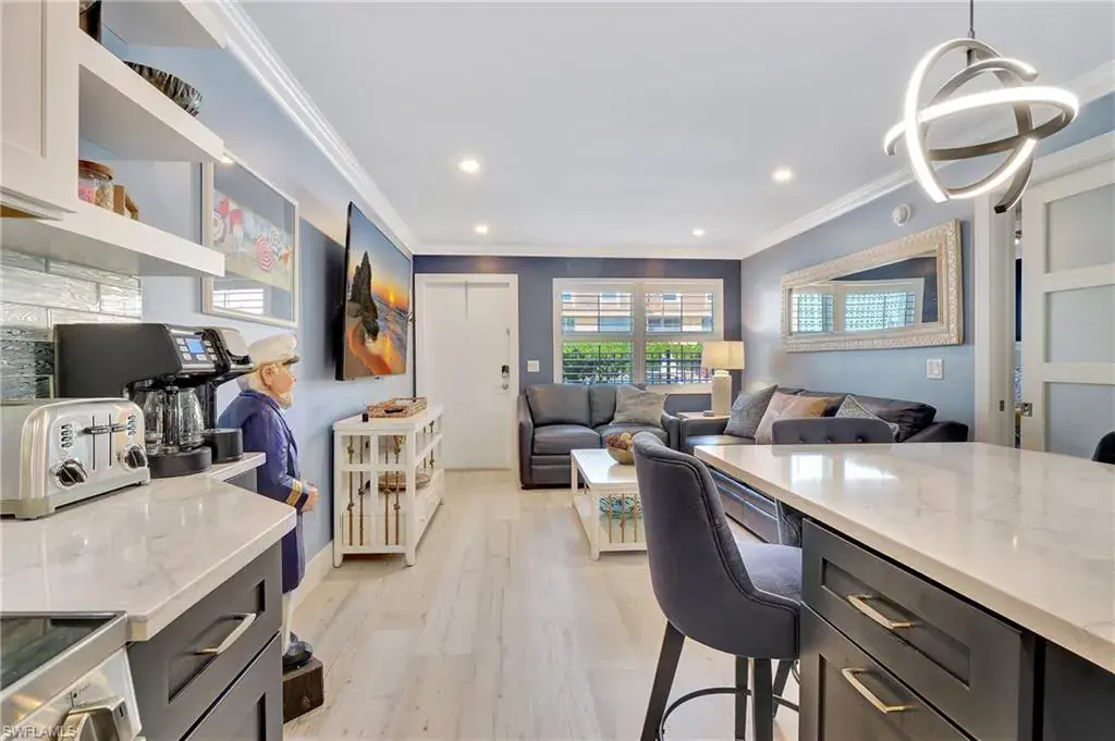 Perfect downtown location offers you a rare opportunity to own a 2 en-suite condo in Olde Naples. Completely redesigned from the studs, the top-shelf redesign and remodel of the open floor plan with high-end furnishings and finishes was completed last year. Guest en-suite can be configured with a king or twin beds. One dedicated parking spot is included. The entire building has undergone numerous upgrades, including the hot water system, roof, air conditioning and heating system, and Summit Cable TV and Internet. UTILITIES are INCLUDED in the condo fees! Owners only pay for electricity used via outlets. The pool was refurbished, plus new pool equipment. This condo is loved by everyone who discovers this unique, quaint, small condo project. EVERYTHING is new down to 4 beach chairs, 2 umbrellas, a cooler, a beach wagon, umbrellas for rainy weather, a generous amount of new linens, towels, a fully equipped kitchen, etc. No expense was spared. Coin-operated laundry is located on the second floor which the 36 units share. Storage??? NO PROBLEM! Two storage units are allocated for. your new place in Paradise. 300 STEPS TO THE NAPLES PIER AND BEACH! This is your rare opportunity to own a condo in the perfect location in downtown Olde Naples. Multi-million-dollar homes surround you. The location cannot be beaten. It is loved by everyone who discovers this unique, quaint, small condo project! RARELY AVAILABLE as many of the owners are long-time owners. Now is your chance to own your very own piece of Paradise!