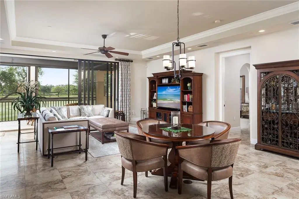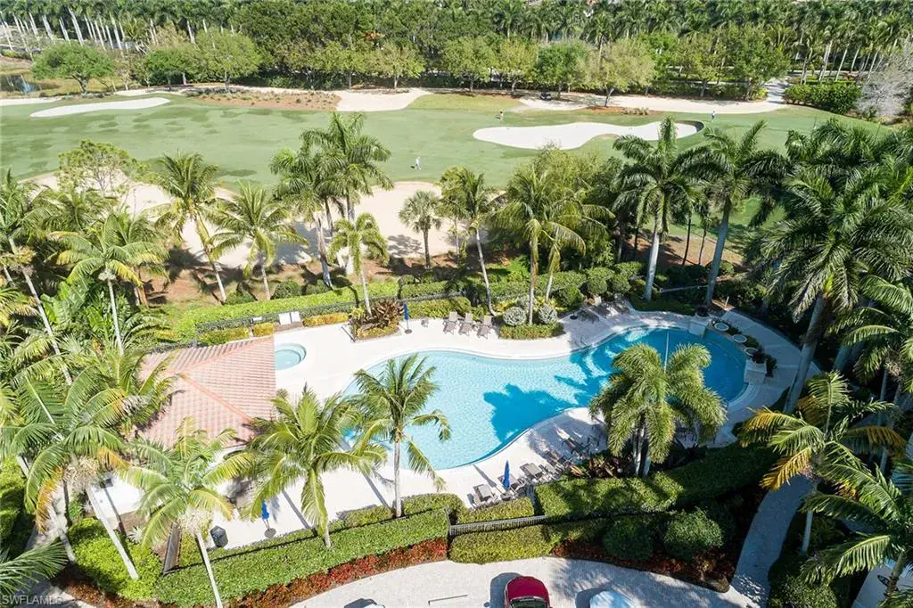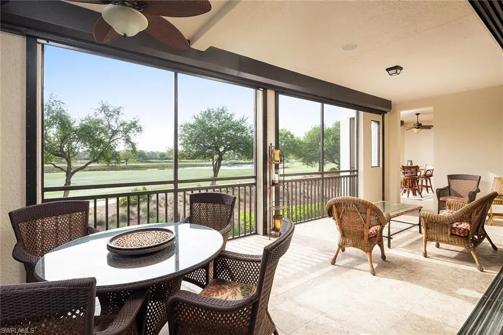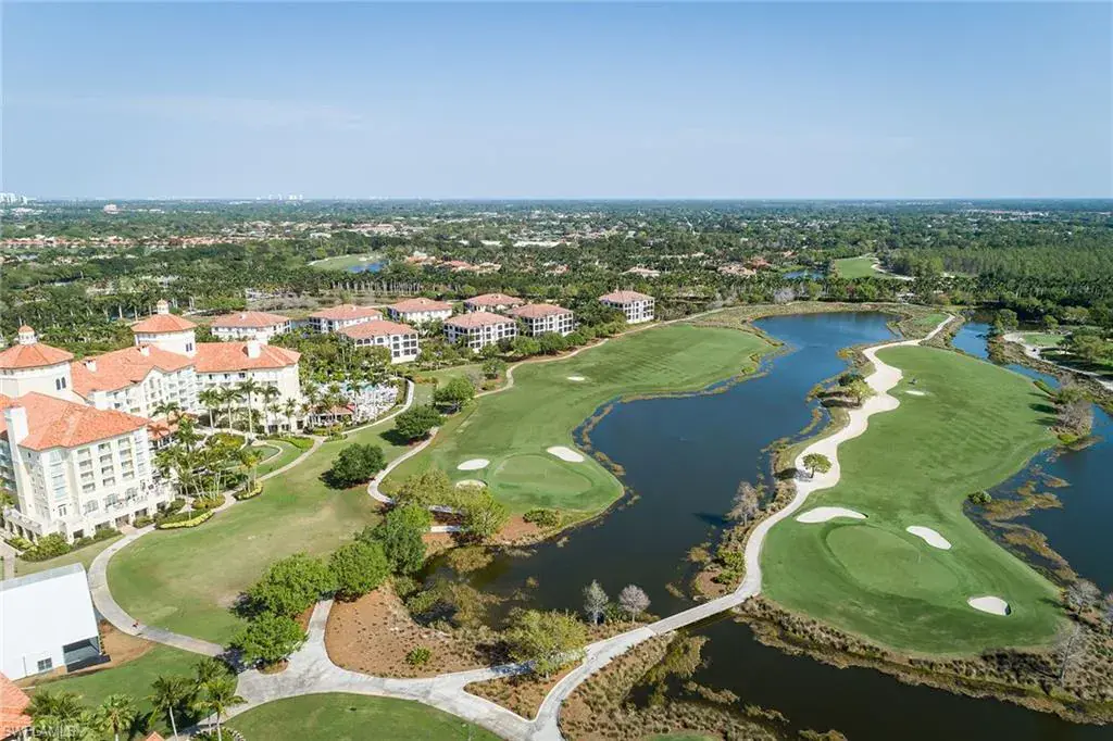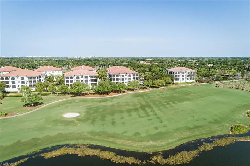Immediate golf membership availability. Enjoy stunning panoramic golf course and lake views of the signature 18th hole from this beautiful three-bedroom, three-bath home with an open floor plan and huge wraparound screened loggia with pocketing sliders and Storm Smart screens. The designer kitchen features new quartzite countertops, a five-burner gas stove, wall oven and stainless steel appliances with sophisticated decor. Wake up to serene lake and golf course views from your primary suite with sliding glass doors to the lanai. Designed to live like a single-family home, this residence offers the privacy and comfort of a house while embracing the ease of luxury condo living. Not only does this home offer effortless luxury, but it also provides peace of mind in a non-flood zone. Adding to the convenience, the property includes two ground level parking garage spaces and a private storage room. Club memberships are available but optional at Tiburon. As a member, you will enjoy 36 holes of championship golf with exceptional amenities including concierge services, fitness center, spa, a water park with slides and lazy river at the Ritz-Carlton Golf Resort, and beach transport to Vanderbilt Beach. Centrally just over two miles from shops and restaurants of Mercato and four miles to the glistening waters of the gulf.