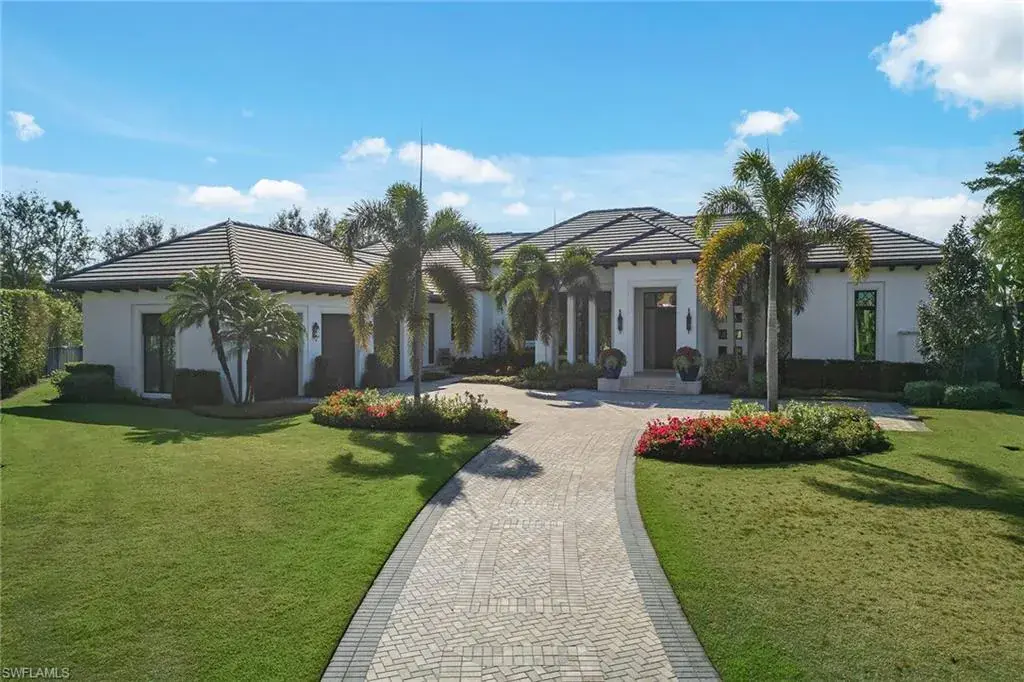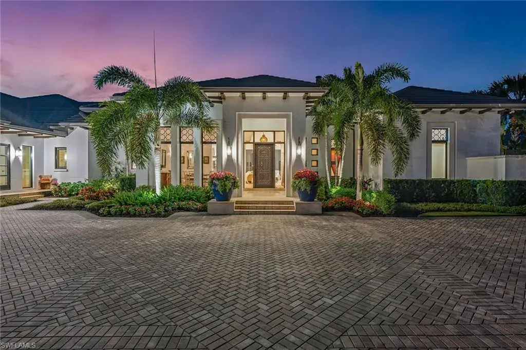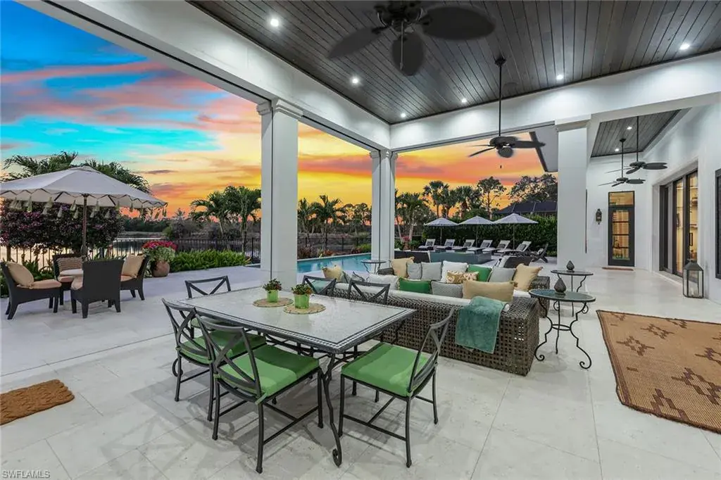Discover luxury living in this truly exceptional home with timeless appeal nestled in the prestigious Marsala community of Tiburon/Ritz-Carlton Golf Resort in Naples and enjoy IMMEDIATE full golf membership. This exquisite residence, designed by award-winning Stofft-Cooney architects and meticulously constructed by CK Custom Homes, offers an unparalleled blend of elegance and comfort, perfect for those seeking a sophisticated lifestyle. As you step inside, you’ll be greeted by a grand foyer with Venetian Plaster barrel ceiling, adjacent dining room with custom vaulted Venetian Plaster ceiling detail leading to an expansive open-concept living area with large, disappearing sliding doors that flood the space with natural light and frame the spectacular Florida sunsets from this west facing property.