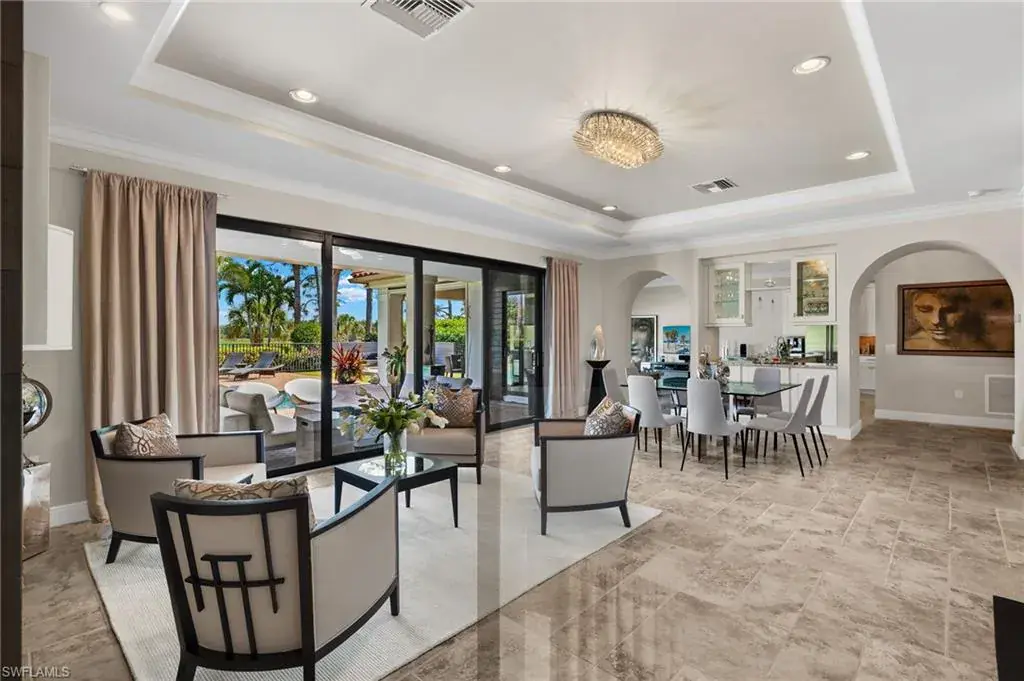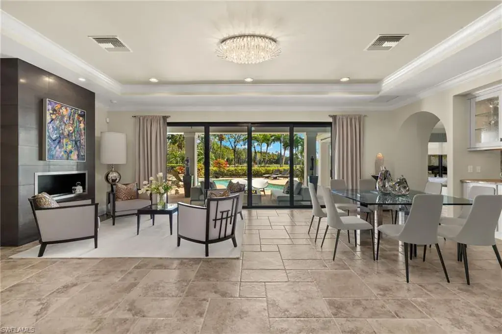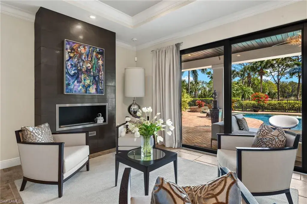 Introducing the stunning Estrella floor plan in the prestigious Marsala at Tiburon, a beautiful home with over 4,400 square feet of luxurious living space with two bedrooms on the main level and 2 two bedrooms upstairs. This exquisite property features a custom pool and spa, complete with gas heating and a salt chlorinator, set in an inviting outdoor oasis designed for entertaining. Enjoy the outdoor summer kitchen, which includes a gas grill, sink, and refrigerator, perfect for hosting friends and family. Nestled in a natural gas community, this home boasts a kitchen equipped with a Wolf stovetop, a Sub-Zero refrigerator, and a wine fridge, as well as a new Bosch dishwasher. The new tankless gas hot water heater ensures continuous and efficient hot water supply, while the newer washer and dryer add convenience to everyday living.  For wine enthusiasts, a dedicated wine room awaits, providing an ideal space to store and display your collection. The property offers breathtaking views of the 12th green and fairway of the Tiburon Black Course, adding a picturesque backdrop to your daily life. With Tesla Powerwalls installed, you can rest assured that the entire house will remain powered during any outages. Additionally, the home comes with new garage door openers for added peace of mind. The open floor plan seamlessly blends modern design with inviting decor, creating a sophisticated yet welcoming atmosphere. Featuring 4 spacious bedrooms, all with ensuite bathrooms, a den, pool bath, and 3 car garage. This exceptional home is the epitome of luxury living in one of Tiburon’s most sought-after communities. Tiburon boasts 36 holes of Greg Norman-designed championship golf, concierge services, restaurants, fitness center, spa, tennis and private beach shuttle. Tiburon is located close to beaches, world-class shopping and dining. GOLF MEMBERSHIPS are IMMEDIATELY available, but not required to live in the community. Just 3 miles to Vanderbilt Beach and 1.5 miles to the shops and restaurants at Mercato. Don’t miss the opportunity to make it your own!