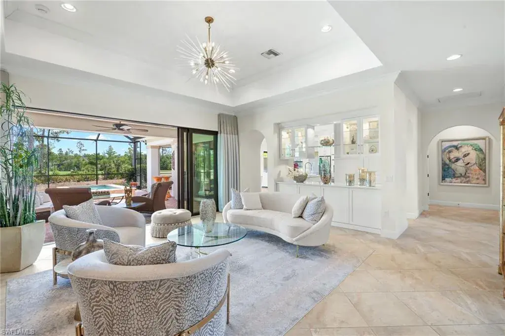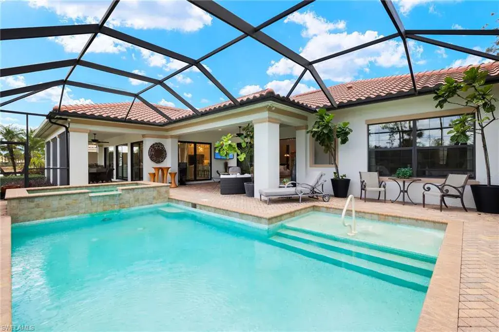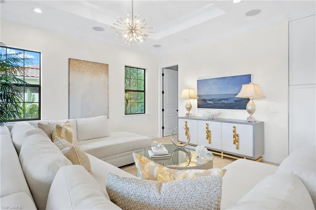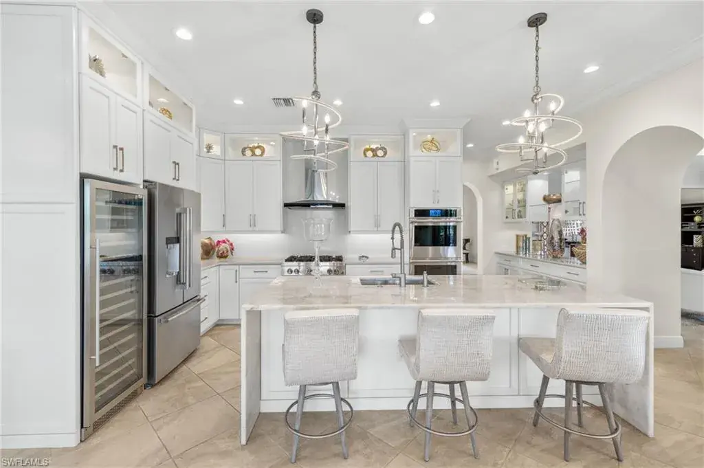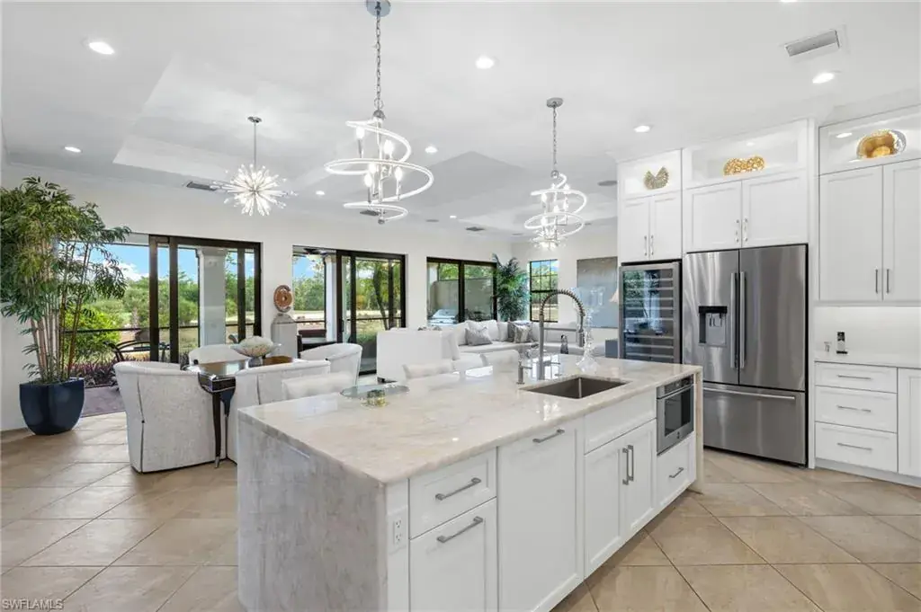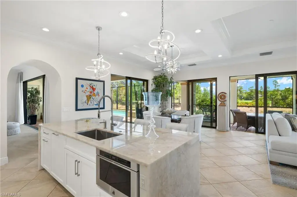 Gorgeous updated kitchen and stunning lake and golf course views! Marsala is a luxury golf course community located at The Ritz-Carlton Naples, Tiburon. This meticulously maintained property offers just under 4,000 square feet of luxurious living space. The gorgeous updated kitchen with gas cooktop, large wine refrigerator and an oversized quartzite waterfall island. The open floor plan flows seamlessly and blends modern design with inviting decor, creating a sophisticated yet welcoming atmosphere. This exceptional home features four spacious bedrooms, four full bathrooms, a den, and three-car garage. Enjoy the outdoor oasis with spacious pool, spa and summer kitchen, equipped with gas grill, sink, and refrigerator, ideal for hosting friends and family. In addition to the beautiful interior, this property features all newer AC units, pool equipment, tankless water heater, and the mini-split AC keeps the three car garage nice and cool. This lovely home represents the epitome of luxury living in one of Tiburon’s most sought-after communities. GOLF MEMBERSHIPS are IMMEDAITELY AVAILABLE, but not required. Furniture is negotiable.Tiburon offers 36 holes of Greg Norman-designed championship golf, concierge services, restaurants, a fitness center, spa, tennis, and a private beach shuttle. Tiburon is just 3 miles from Vanderbilt Beach and 1.5 miles from the shops and restaurants at Mercato. Don’t miss the opportunity to make this exceptional home your own!