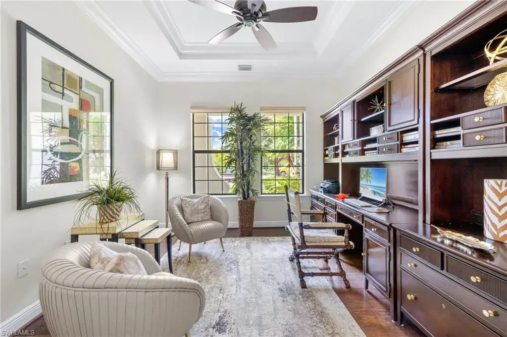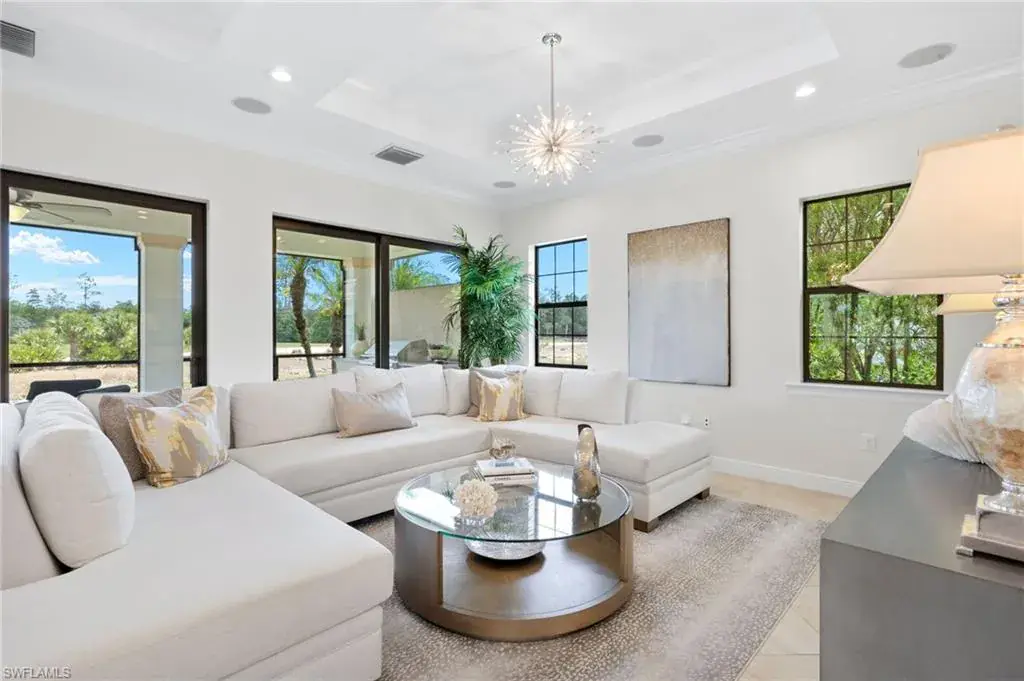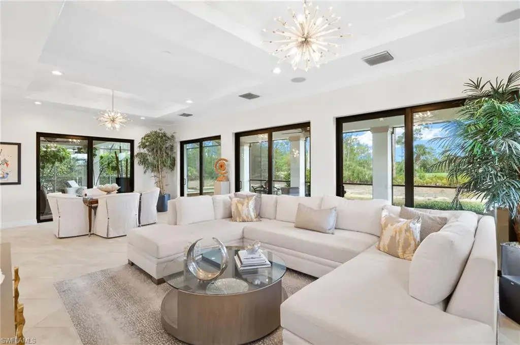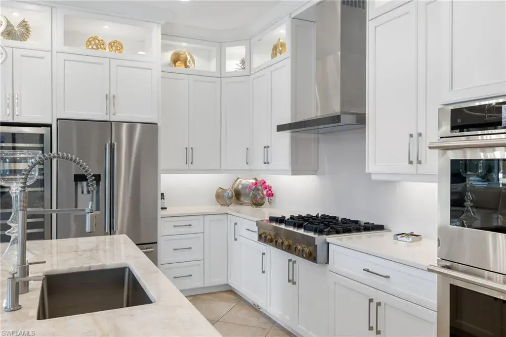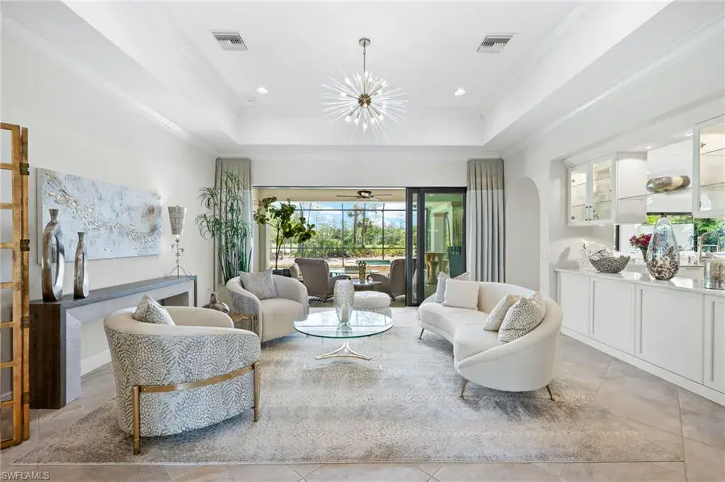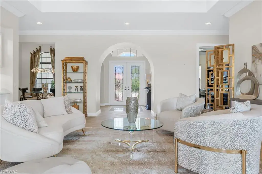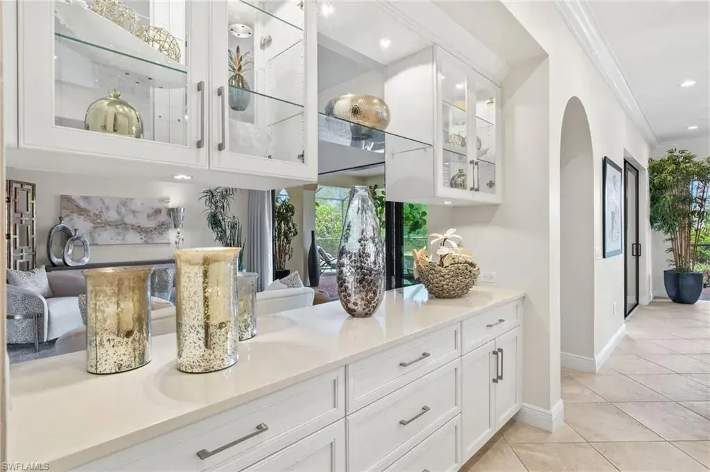 Gorgeous updated kitchen and stunning lake and golf course views! Marsala is a luxury golf course community located at The Ritz-Carlton Naples, Tiburon. This meticulously maintained property offers just under 4,000 square feet of luxurious living space. The gorgeous updated kitchen with gas cooktop, large wine refrigerator and an oversized quartzite waterfall island. The open floor plan flows seamlessly and blends modern design with inviting decor, creating a sophisticated yet welcoming atmosphere. This exceptional home features four spacious bedrooms, four full bathrooms, a den, and three-car garage. Enjoy the outdoor oasis with spacious pool, spa and summer kitchen, equipped with gas grill, sink, and refrigerator, ideal for hosting friends and family. In addition to the beautiful interior, this property features all newer AC units, pool equipment, tankless water heater, and the mini-split AC keeps the three car garage nice and cool. This lovely home represents the epitome of luxury living in one of Tiburon’s most sought-after communities. GOLF MEMBERSHIPS are IMMEDAITELY AVAILABLE, but not required. Furniture is negotiable.Tiburon offers 36 holes of Greg Norman-designed championship golf, concierge services, restaurants, a fitness center, spa, tennis, and a private beach shuttle. Tiburon is just 3 miles from Vanderbilt Beach and 1.5 miles from the shops and restaurants at Mercato. Don’t miss the opportunity to make this exceptional home your own!