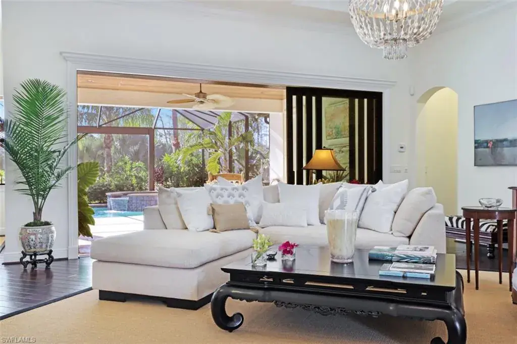 Golf Membership Available!!! Enjoy all day sun, gorgeous sunsets, and golf course views from the salt water pool and spa of this highly desirable southwest facing property. Meticulously maintained and located in rarely available Marsala at The Ritz-Carlton Naples, Tiburon. Upon entering the custom front doors, you will be greeted by luxurious hand-scraped Spanish Hickory hardwood floors, coffered ceilings, & extensive crown molding details. Perfect for entertaining with an expansive kitchen open to the great room, dining area, and an outdoor oasis, with spectacular views of the 15th & 16th holes of the Greg Norman Black Course. The outdoor living area features extensive upgraded landscaping, specialty lighting, a custom water fountain, natural shell stone lanai and pool deck, outdoor kitchen and fireplace flanked in beautiful stacked stone, and a cypress wood ceiling with built-in speakers to complete the space. Enjoy privacy offered by the protected preserve on one side of the property. Tiburón features 36 holes championship golf, restaurants, wellness center, and complimentary shuttle to the beach, all conveniently located in north Naples. MEMBERSHIP AVAILABLE but not required.