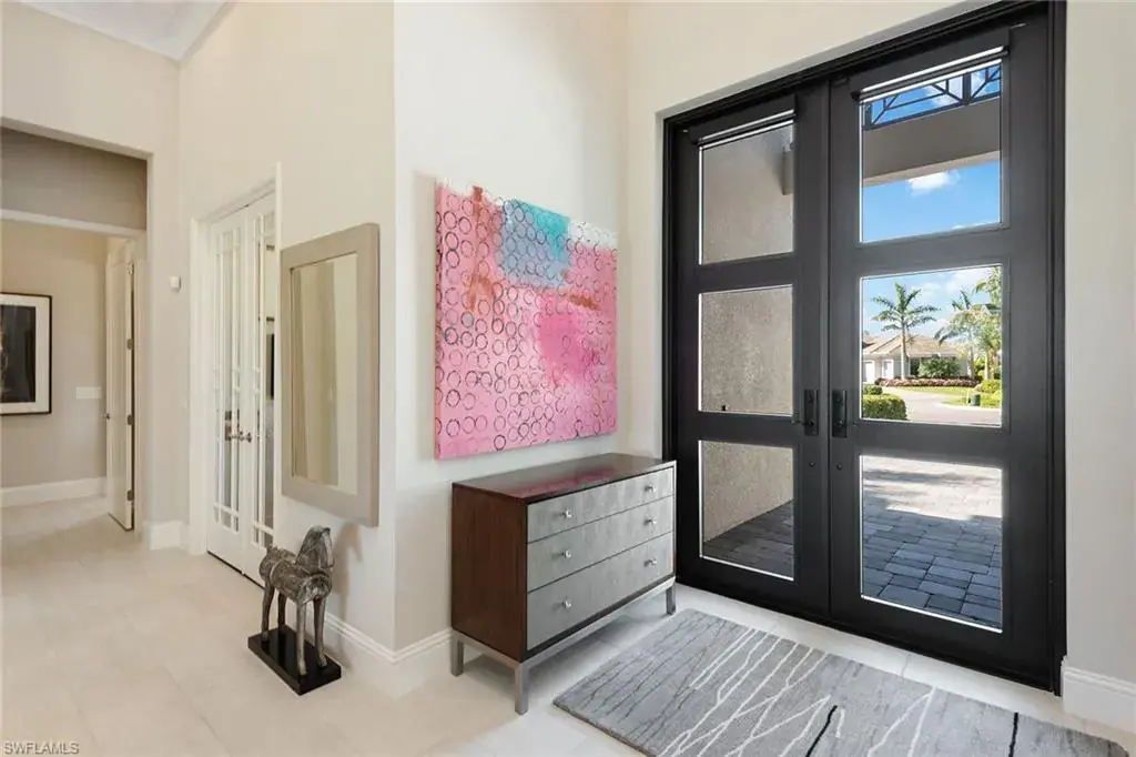 Treat yourself to high-quality upgrades and fantastic golf course views, as far as the eye can see, offered in this over 3,000-square-foot dream home set on a cul-de-sac in the award-winning community of Fiddler’s Creek! Pass through impressive doors to discover an impeccably maintained open-concept interior with four bedrooms plus study and four-and-a-half baths. Coffered ceilings, sophisticated lighting, custom window treatments, and impact-resistant doors and windows that frame golf course views lend a timeless elegance. Your gourmet kitchen has stainless steel appliances, gas cooking, a wine fridge and a large island. Oversized primary suite features dual walk-in closets, outdoor access and an elegant bath with a soaking tub. Take advantage of the southeast exposure from your screened-in lanai where remote-operated awnings keep you comfortable. With a saltwater pool and spa, outdoor kitchen, and a fire table, what’s not to love? Other perks include an air-conditioned three-car garage with an exercise area, office with custom cabinetry and doors, electric shutters, Sonos surround sound, and video camera system. Fantastic community amenities; loads of activities. Golf, beach and marina memberships available.