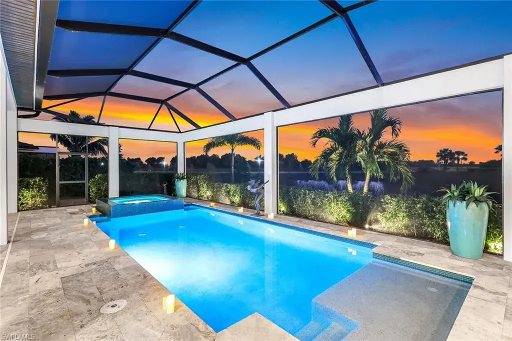 Sophisticated, serene, contemporary, and warm, this absolutely wonderful, 4 bedroom, 3 bath home in coveted Marsh Cove in Fiddler’s Creek is now available to become your very own dream home! Splendid southern exposure offers the warm sun all day on the wonderfully upgraded pool