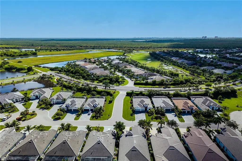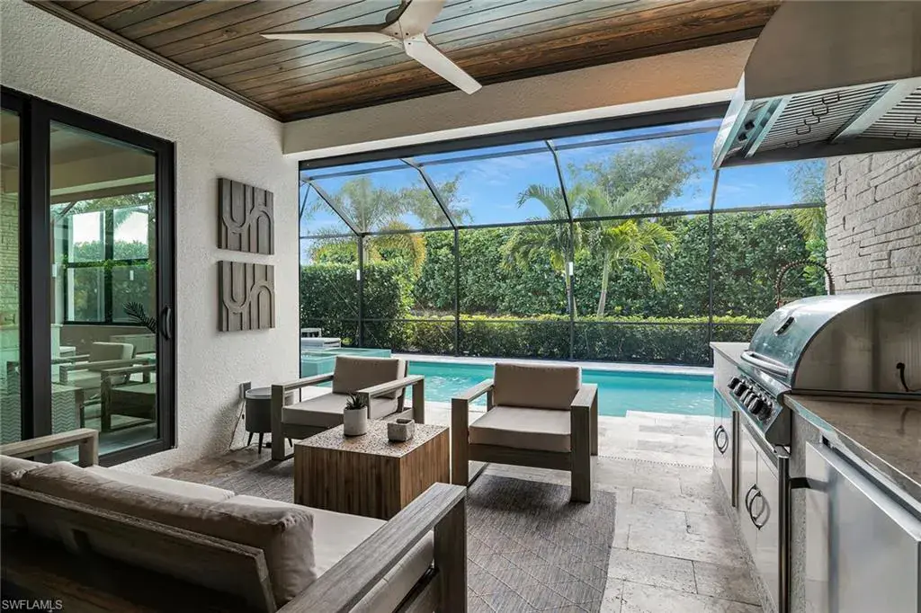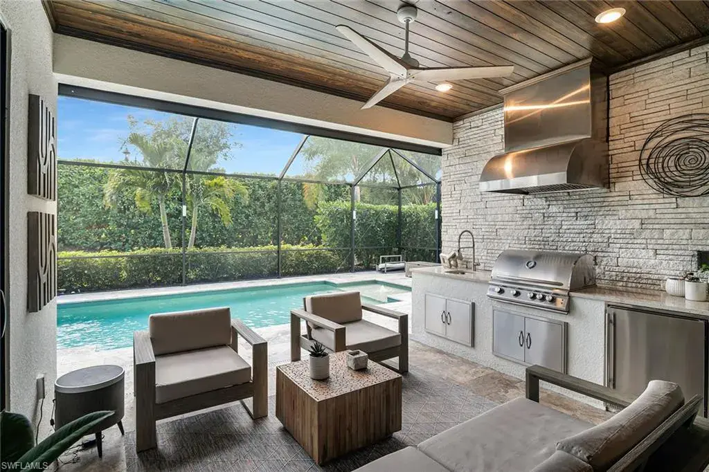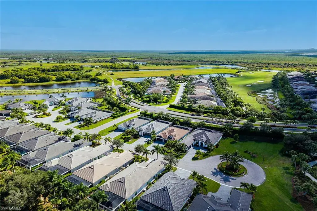This stunning 2022-built smart home showcases contemporary architecture and elegant designer furnishings that complement its modern aesthetic. Sleek lines and high-end finishes define the luxurious living spaces, while the open-concept floor plan seamlessly connects the living, dining, and kitchen areas complete with upgraded appliances, automatic window shades and Samsung Frame TVs in multiple rooms, offering convenience and modern style. Go outside to your private outdoor oasis featuring a sparkling pool, spa, outdoor kitchen and lush tropical landscaping ideal for enjoying Florida sunshine. Additional features include hurricane-resistant electric storm screens, a whole-house generator and a home warranty for peace of mind. The garage features durable epoxy floors, built-in storage shelving and an electric vehicle charging setup for convenient at-home charging. Fiddler’s Creek is close to Marco Island Executive Airport, beaches, shopping, restaurants and boating, and has quick access to Naples Fifth Avenue and Naples Airport.
