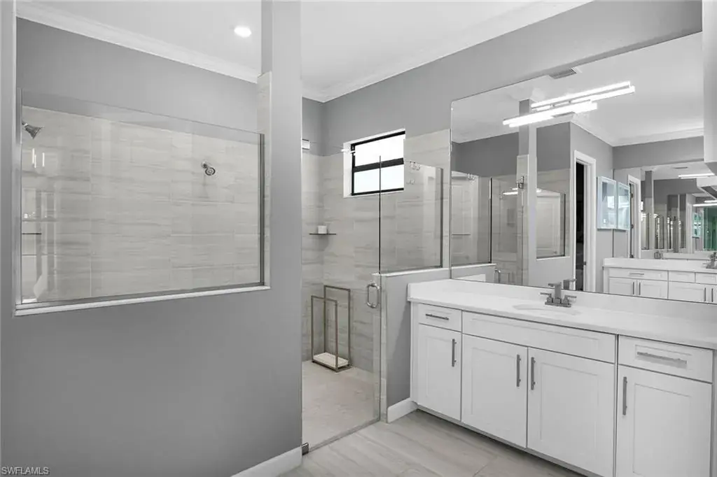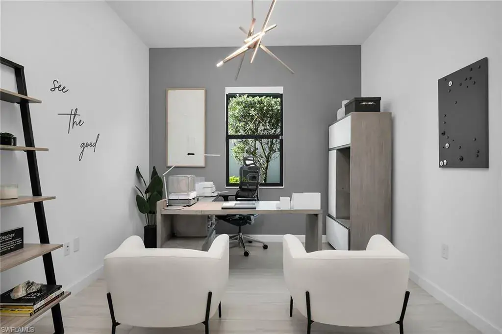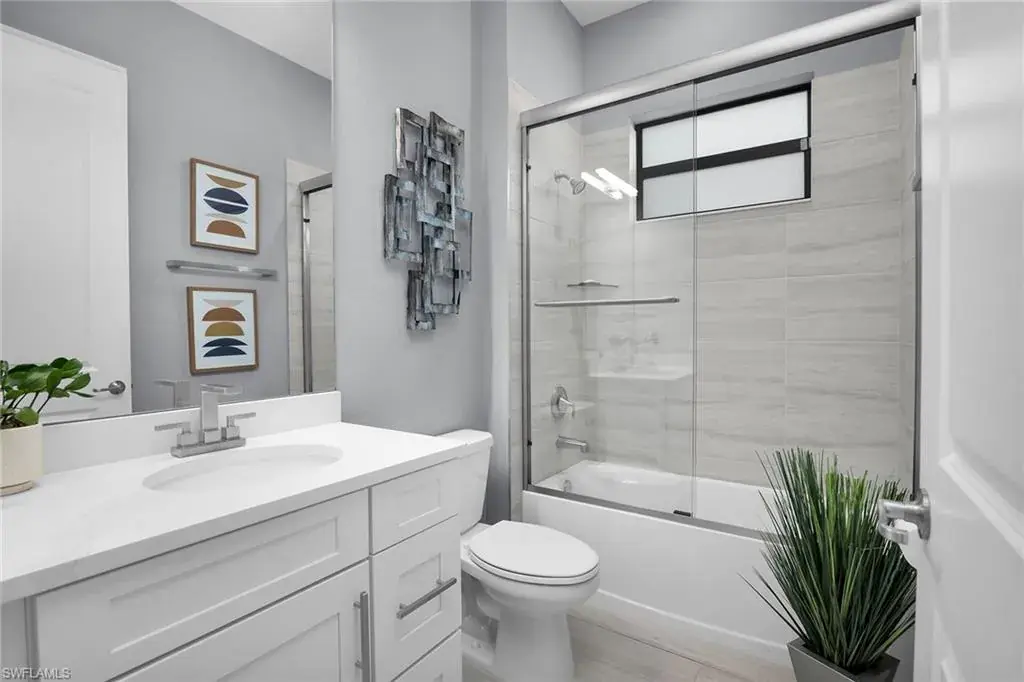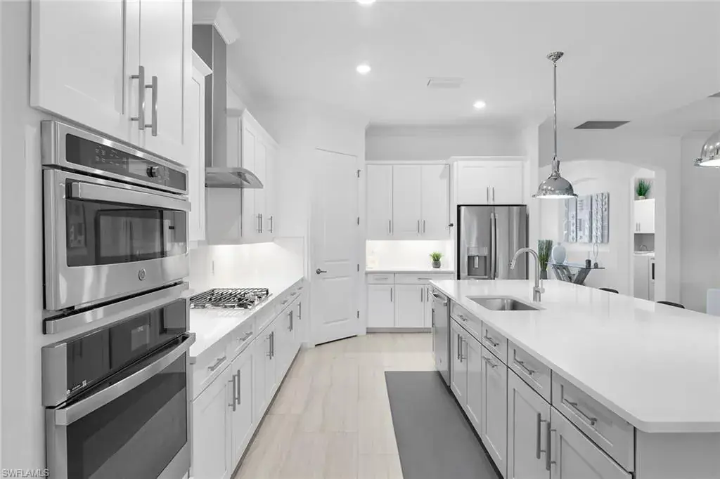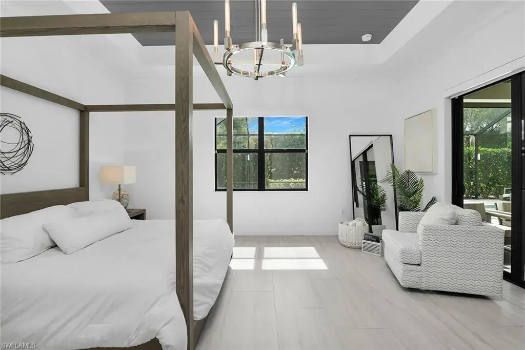 This stunning 2022-built smart home showcases contemporary architecture and elegant designer furnishings that complement its modern aesthetic. Sleek lines and high-end finishes define the luxurious living spaces, while the open-concept floor plan seamlessly connects the living, dining, and kitchen areas complete with upgraded appliances, automatic window shades and Samsung Frame TVs in multiple rooms, offering convenience and modern style. Go outside to your private outdoor oasis featuring a sparkling pool, spa, outdoor kitchen and lush tropical landscaping ideal for enjoying Florida sunshine. Additional features include hurricane-resistant electric storm screens, a whole-house generator and a home warranty for peace of mind. The garage features durable epoxy floors, built-in storage shelving and an electric vehicle charging setup for convenient at-home charging. Fiddler’s Creek is close to Marco Island Executive Airport, beaches, shopping, restaurants and boating, and has quick access to Naples Fifth Avenue and Naples Airport.