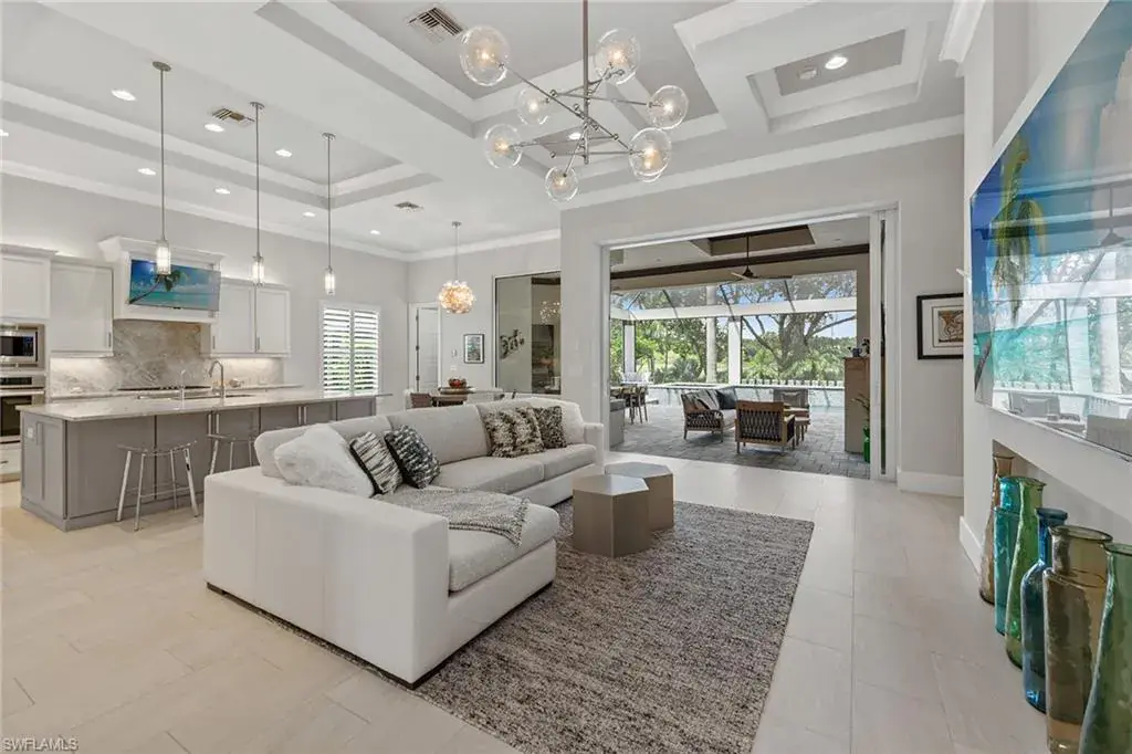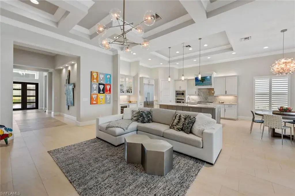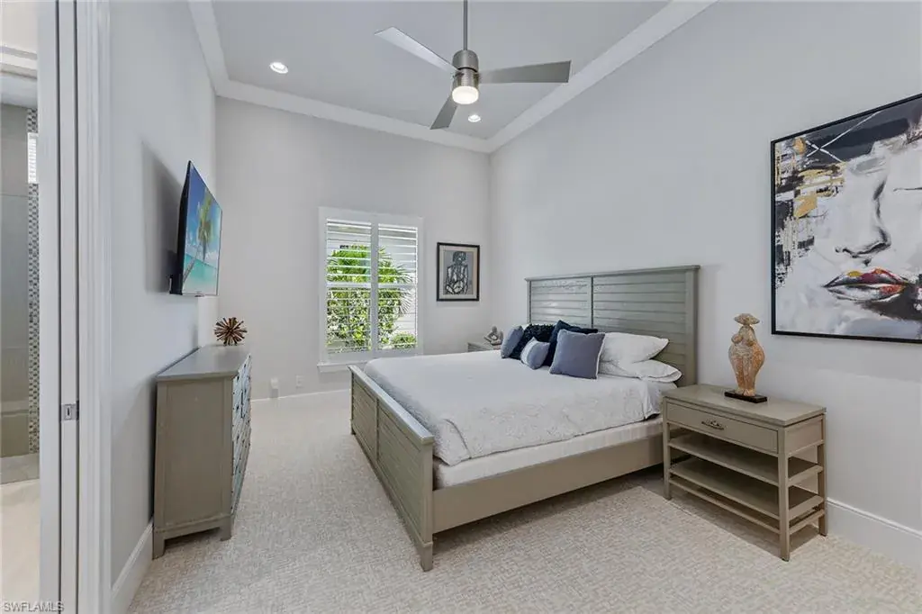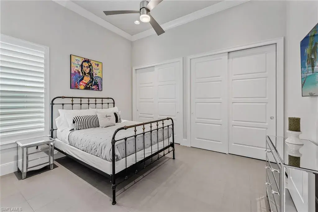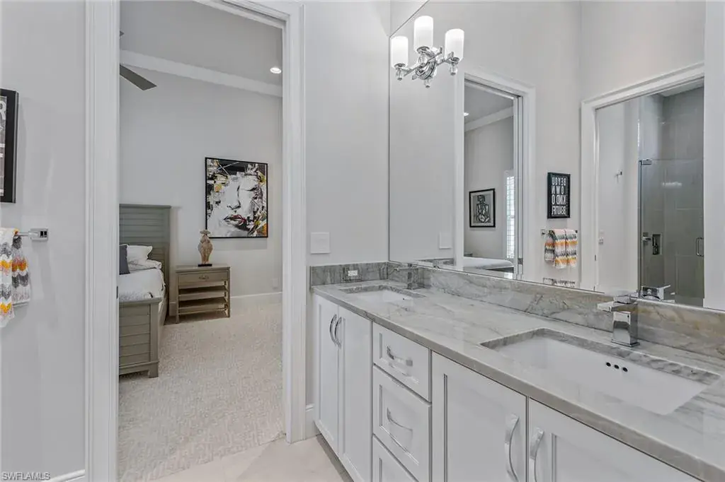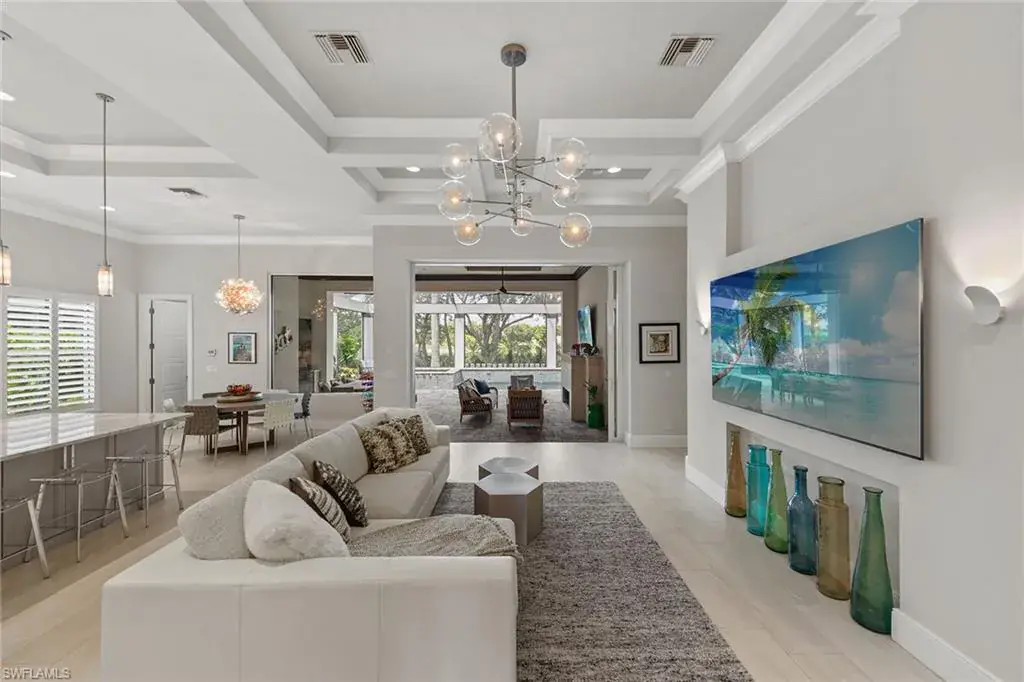 Overlooking the scenic first fairway of the newly renovated Arthur Hills-designed Creek Course, this quality-built residence by regarded Harbourside Custom Homes in the sought-after Marsh Cove neighborhood, blends luxury with serene golf views and indoor-outdoor living. This modern residence offers an impressive double-door entrance, four bedrooms plus a study, 3.5 baths and a spacious two-car garage. The outdoor area is a private retreat featuring a picture-frame screen enclosure, sparkling pool and spa with waterfalls and sun shelf, electric rolldown hurricane screen and a pool bath. The covered lanai boasts a gas fireplace, LED lighting, dual ceiling fans, in-ceiling speakers, wood ceiling, outdoor shower, and a fully equipped outdoor kitchen with Sedona grill, granite surfaces, custom cabinetry, sink and mini refrigerator, ideal for entertaining. Impact-resistant doors and windows, along with a whole-house Generac generator, provide added peace of mind and reliable protection in any weather. Inside, elegant finishes and extensive upgrades include dramatic volume and tray ceilings, crown molding, porcelain tile floors, exquisite lighting, recessed LED lights, Kinetico reverse osmosis system and plantation shutters in a fantastic split-bedroom floor plan. The chef’s kitchen shines with quartzite countertops and backsplash, Mouser cabinetry, Thermador appliances, a built-in side-by-side refrigerator, convection wall oven, five-burner natural gas cooktop with hood and second convection oven beneath, and under-cabinet lighting. A walk-in pantry adds storage. The dry bar includes a wine refrigerator, beverage refrigerator with icemaker and quartzite counters. The dining area features a chandelier and a mitered glass window. The great room offers wall accents, coffered ceiling, sconce lighting and ceiling speakers, flowing seamlessly to the lanai. The owner’s suite has lanai access, ceiling speakers and fan, two large walk-in closets (one custom-designed), and a spa-like bath with ceiling speakers, soaking tub, dual sinks, full-width mirror and walk-in shower with bench. One guest room includes a private en suite and two share a Jack and Jill bath with quartzite vanities. The den offers a quiet space for a home office, enhanced by in-ceiling speakers. The laundry room includes overhead cabinetry and LG washer/dryer with steam. The garage has a painted floor, windows, overhead storage, 220-volt service, and a mini split air-conditioning system for climate control, ideal for a workshop or EV. Close to the new golf clubhouse and all additional Fiddler’s Creek amenities. Residents enjoy lush landscaping, resort-style dining, fitness with trainers and classes, spa services, an active tennis and pickleball program, pools and an extensive activity calendar, with clubhouse renovations underway in 2025. Optional golf, beach and marina memberships available. Great location close to Naples and Marco Island. CDD bond paid in full!