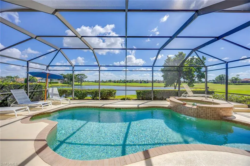 Sunlight, sweeping water views and endless outdoor enjoyment define this exceptional home in Masters Reserve. Positioned at end of a quiet cul-de-sac, this oversized pie-shaped lot lines up the most prized combination in Lely Resort: long-lake vistas paired with the backdrop of rolling golf course grounds. Every moment outdoors feels like a private postcard. Go inside and the experience continues to stretch outward. Wide sliders open the main living spaces directly to the lanai, making the outdoors a natural extension of everyday living. The popular Augusta layout delivers comfortable flow and effortless privacy with three bedrooms, two baths and a spacious two-car garage. Outside is where this home shines. A large covered outdoor living area invites year-round dining and lounging, all cooled by gentle breezes from the water. The heated pool and spa transform relaxation into a daily ritual, while southern exposure bathes the entire setting in warm natural light from morning to sunset. Entertaining feels easy, serene mornings feel sweeter, and every view is a reminder of why you chose Southwest Florida. Ownership includes optional membership to the award-winning Player’s Club & Spa, offering resort-style pools, multiple dining options, a modern fitness facility, spa services and every game you could imagine including tennis, pickleball, and bocce. Social events, friendly neighbors and modest HOA fees round out a lifestyle that feels like vacation. A rare offering of space, sunshine and scenery. Experience the outdoor Florida living you’ve been dreaming about in the heart of Lely Resort.