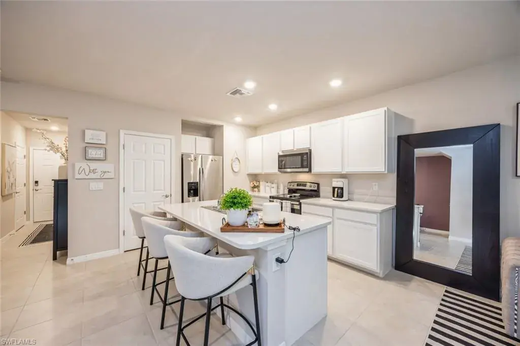 Prestigious 3 bdrms with 2 1/2 baths, 1 car garage townhome, pet friendly, gated,close to the beach, Shoppes of Pebblebrooke, hospital, A+school district, resort style amenities and one of the lowest HOA fees in a great location of Naples. Built in 2022, this spacious unit could be yours…. The first floor offers kitchen with stainless steel appliances, quartz countertops, kitchen walk-in pantry, 2 storage rooms, living room with a dining , 1/2 bath and extended very private lanai with a preserve view for taking your afternoon naps or just having a coffee with your best friend. Upstairs has 3 spacious bedrooms with 2 full bathrooms and walking closets, washer and dryer. There is an alarm system ready for you to be activated. LOW, LOW HOA fees offers beautiful community pool with a lakeview, club house with an oversized social room and billiard, large full kitchen with a big island for your gatherings, gym, basketball court and playground.