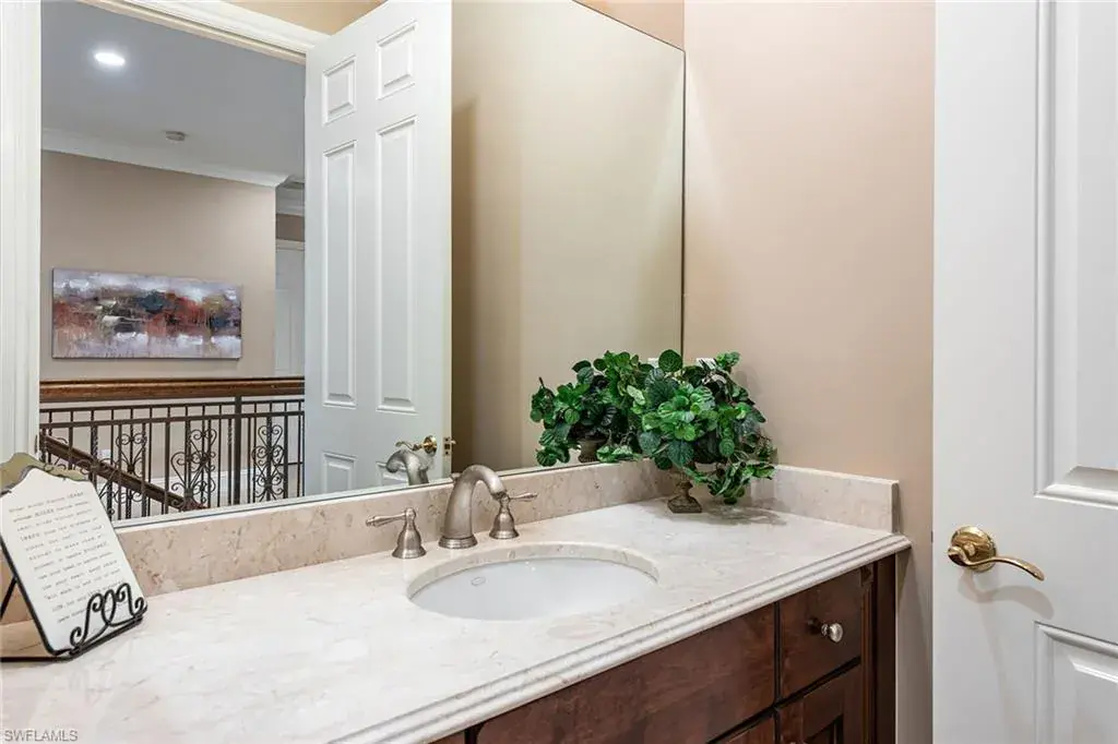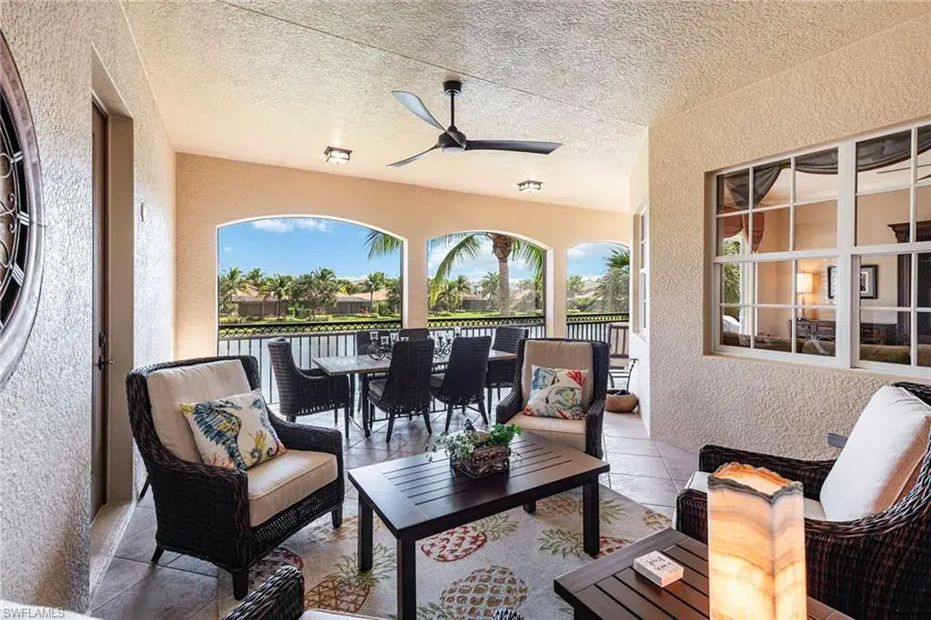 Introducing luxurious living in this elegantly furnished Menaggio residence, quality built by Gulf Bay, and located within the award-winning gated community of Fiddler’s Creek. Showcasing tranquil lake views and desirable eastern exposure, this home is positioned to enjoy brilliant morning sunlight and relaxing shaded afternoons on the spacious screened lanai. Highly upgraded, meticulously maintained, and designed for refined comfort, this expansive second-floor coach home features three large bedrooms plus a den, 3.5 baths, and a private elevator leading to a beautifully appointed interior highlighted by decorator molding, plantation shutters, custom drapery and double crown molding throughout. The inviting living space opens through glass sliders to the lanai, where covered outdoor living with a ceiling fan and tile flooring provides a peaceful setting to take in the lake views. The gourmet kitchen blends style and functionality with quality Raffinati cabinetry, including glass-front displays, under-cabinet lighting, quartz countertops and backsplash, recessed lighting and a large island. A pantry with wood pullout shelving and premium GE Monogram appliances, including a cabinet-front refrigerator, 36-inch five-burner stainless cooktop, stainless wall oven, 2022 stainless microwave and cabinet-front dishwasher, completes the space. Adjacent, a charming breakfast nook framed by bay windows overlooks lush palms, while the formal dining room with a tray ceiling creates an elegant atmosphere for entertaining. Just off the dining room, a door leads to an additional pantry featuring shelving and a refrigerator, providing extra storage and convenience. The owner’s suite is a serene retreat featuring lake views, a tray ceiling, lanai access, plantation shutters and two walk-in closets with wood shelving. The impressive spa-inspired bath offers dual vanities with a makeup counter, a full-width mirror, a jetted soaking tub and a walk-in shower with a glass enclosure. Two spacious guest bedrooms each include private en-suite baths, one featuring its balcony and the other often utilized as a second primary suite with an oversized bath and walk-in closet. The cozy den with French doors is ideal for a quiet office or study. Additional highlights include full storm protection with all impact glass, two recently installed air-conditioning units (2024), 18-inch porcelain tile on the diagonal in the main living areas, textured accent walls, a powder bath, a laundry room with newer Maytag washer and dryer, utility sink, water leak sensors, alarm system, overhead cabinetry and a two-car garage with epoxy flooring. A new tankless water heater (2025) adds peace of mind. Residents enjoy resort-style amenities, dining and recreation, with the optional Tarpon Club offering beach and marina access plus two golf courses. Furnished, impact-protected, and move-in ready with new HVAC and luxury upgrades, this Menaggio home offers exceptional living.