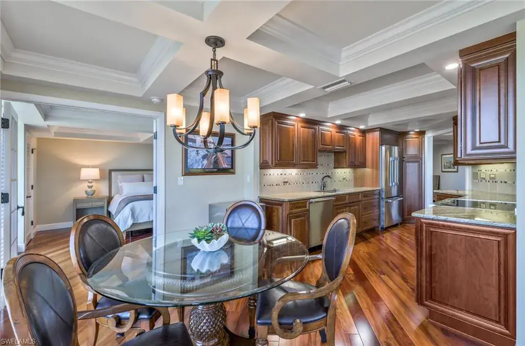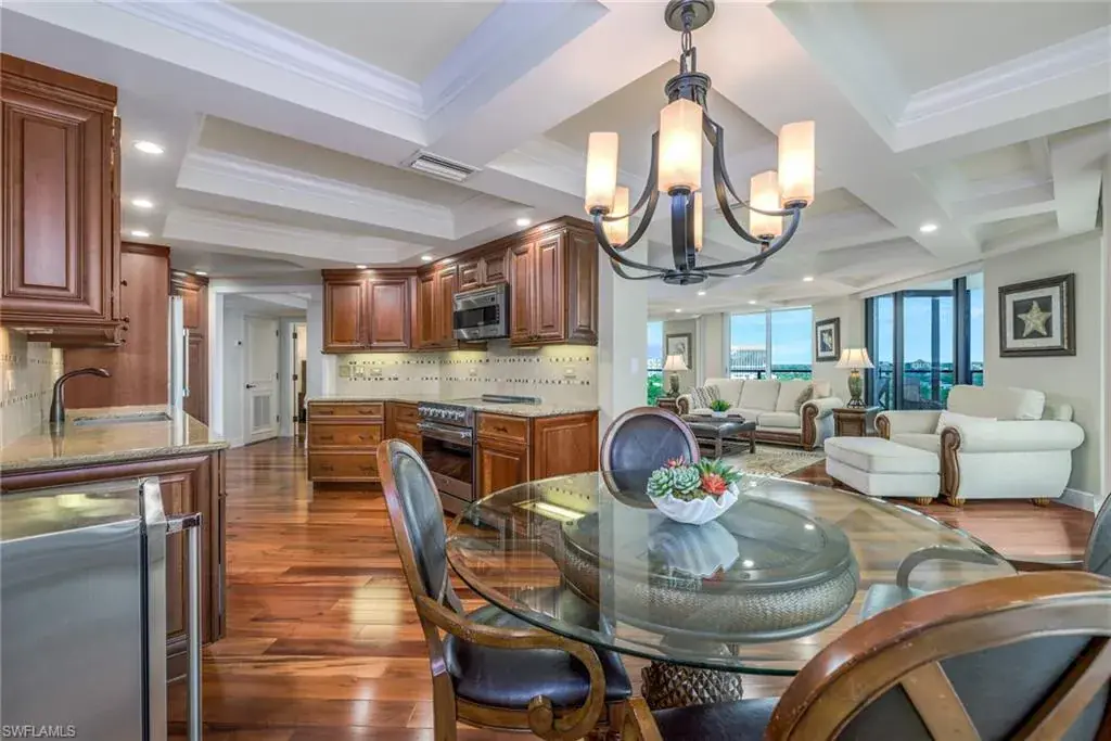 Start your day with stunning sunrises over Venetian Bay and end it with breathtaking Gulf of Mexico sunsets — all from your beautifully renovated 12th-floor residence at The Meridian Club. With a warm southern exposure and an unbeatable beachfront location, this 3-bedroom, 3-bath residence perfectly blends comfort, style, and sophistication. Step inside to rich mahogany wood floors, timeless coffered ceilings, and an inviting open layout designed for both relaxation and entertaining. The kitchen and bathrooms have been tastefully updated with granite countertops and elegant tile finishes. In the spacious master suite, you’ll find his-and-hers closets and a luxurious shower with dual showerheads — your personal retreat after a day in the sun. The wide, open balcony stretches the full length of the unit, offering plenty of space to soak in those spectacular views. A slider-protected sitting area at the center makes it easy to enjoy the outdoors in any weather. For peace of mind, this residence includes impact-resistant windows and doors, plus custom shades for privacy. The Meridian Club sits on 3.5 acres of gated, resort-style grounds featuring tennis and pickleball courts, a fitness center, and a sparkling pool and spa with a deck, grilling area, bathhouse, and cabana. Located in the prestigious Park Shore community, this property offers direct beach access and a beautiful mile-long boardwalk that runs along the beachfront — perfect for morning walks or evening strolls by the water. With only four residences per floor, a 24-hour attendant, covered parking, and wheelchair accessibility, this pet-friendly community provides an exclusive sense of security and serenity — all within walking distance of Venetian Village and just minutes from the Waterside Shops.