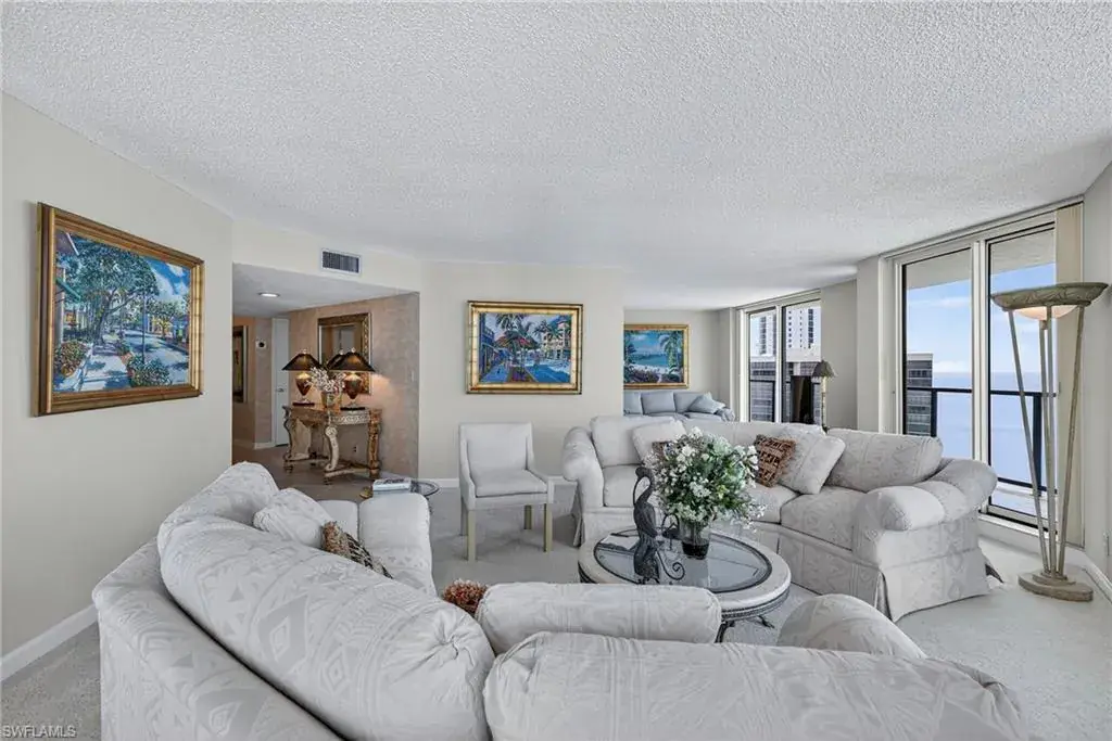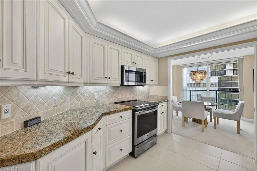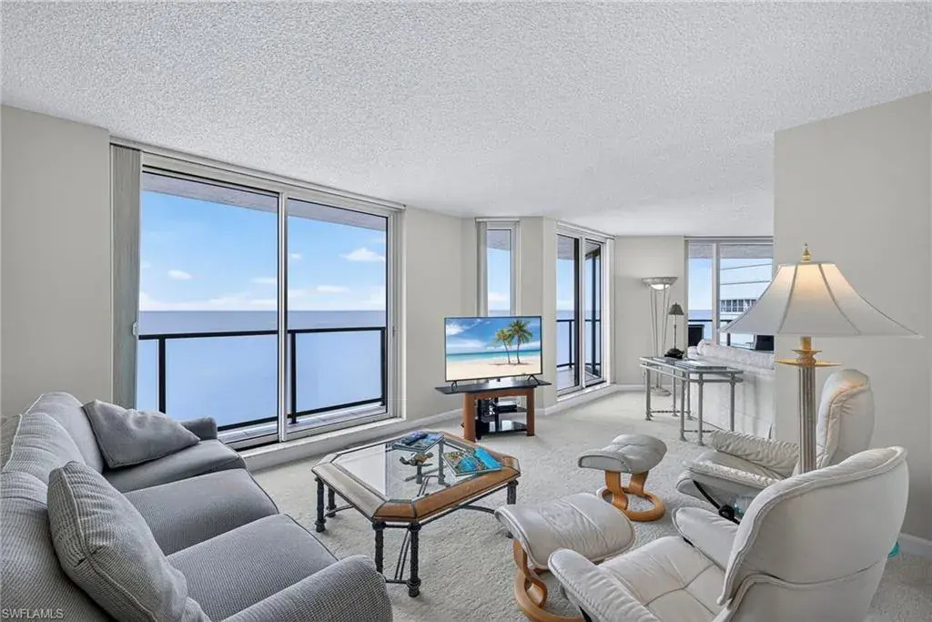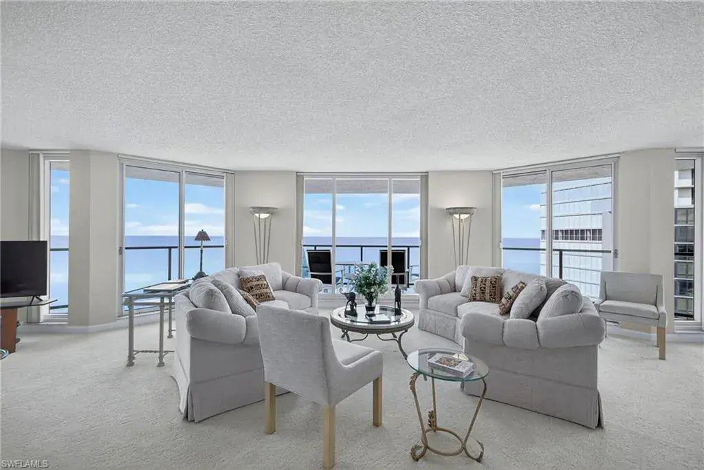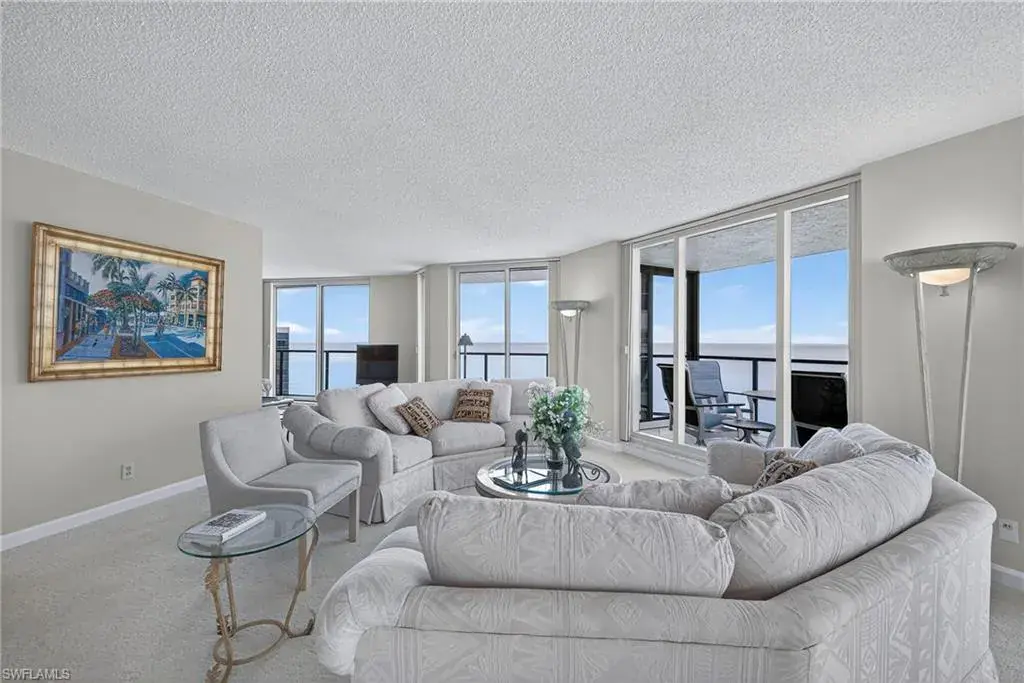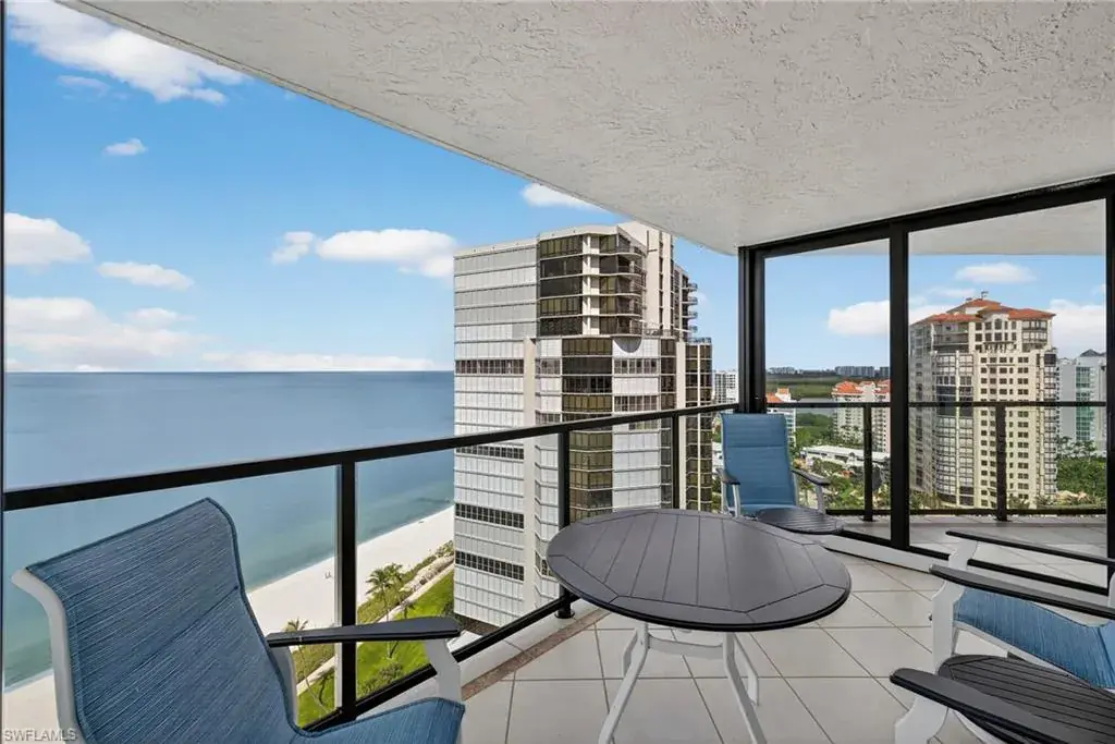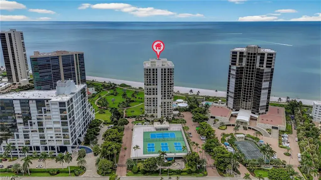 The wait is over! A rare opportunity to own a move-in ready 2-bedroom 3-bath unit with the most sought after views in the building. Located in the prestigious Park Shore Meridian Club, this unit has been occupied by only one owner and has been lightly used and never leased! With over 2,200 square feet of living space, the floor plan features split two bedrooms, a versatile den area (easily converted to a third bedroom), living room, computer room, eating area and three full bathrooms. Each room offers balcony access, panoramic vistas and wonderful sunsets. The kitchen features new stainless-steel appliances and updated cabinets. The master suite and guest suite offer walk-in closets, and a private en-suite bath. Additional features include a convenient in-unit laundry room with brand new washer and dryer, hurricane-resistant doors and windows, and a newer AC unit. The Meridian Club is set on 3.5 acres of pristine beachfront property, providing quick access to the beachside pool, Park Shore boardwalk and the white sandy gulf beach. Most importantly this ocean front building has NEVER FLOODED! The Meridian has a host of amenities, including an elevated beachside pool deck with a resort-style pool and spa, an outdoor kitchen and entertainment area, tennis and pickle ball courts, a state-of-the-art fitness center, a social room with complete kitchen, and a library. The property also offers 24/7 gated security, onsite management, covered assigned parking, and additional storage, with the option to lease or purchase boat slips at the nearby Venetian Yacht Club. The Meridian is within walking distance of the upscale shopping and fine dining of Venetian Village and only a short drive from the Waterside Shops, Old Naples, 5th Avenue, 3rd Street South, Artis-Naples, and Mercato. Don’t miss this opportunity to experience paradise!