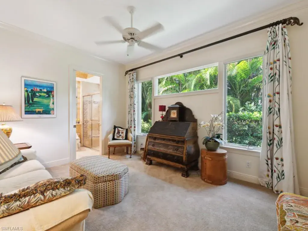 NEWLY RENOVATED PRIVATE BEACH CLUB – Located in the prestigious Mediterra golf & country club of Naples –Welcome to this stunning 3-bedroom plus den, 3-bath residence that perfectly blends architectural elegance and everyday livability, all set against sweeping golf course views. A grand foyer welcomes you into a light-filled great room with soaring ceilings, custom architectural details, and expansive sliding glass doors that open effortlessly to the outdoor living space. The gourmet kitchen is designed to impress, featuring granite countertops, a large center island with bar seating, a walk-in pantry, and a formal dining area ideal for entertaining. The spacious primary suite is tucked away for privacy and offers serene pool views, a generous walk-in closet, and a spa-style bath with dual vanities, an oversized shower, and a separate soaking tub. Guests will enjoy their own space, with bedrooms thoughtfully placed throughout the home and each offering access to an en-suite bath. The den/flex room adds versatility for a home office or lounge. Step outside to a resort-style screened lanai with a sparkling pool, raised spa, and ample covered space for dining or relaxing—all framed by tropical landscaping and lush fairway views. With a 2-car garage and a floor plan that balances sophistication with comfort, this home is a standout in every sense. Mediterra is a prestigious luxury golf & country club community featuring Two championship Tom-Fazio golf courses for avid golfers, a private beach club with restaurant & bar, multiple tennis courts, pickle-ball & bocce, fitness center, pristine bike & jogging trails, and luxurious dining at the private country club restaurant. The Mediterra Beach Club offers an escape to a 10,000 sq. ft two-story private oceanfront paradise on the Gulf of Mexico. Featuring a restaurant & bar that serves members via indoor & outdoor dining, this private facility boasts a heated swimming pool, a sundeck, and cabana beach service for chairs, umbrellas & refreshments.