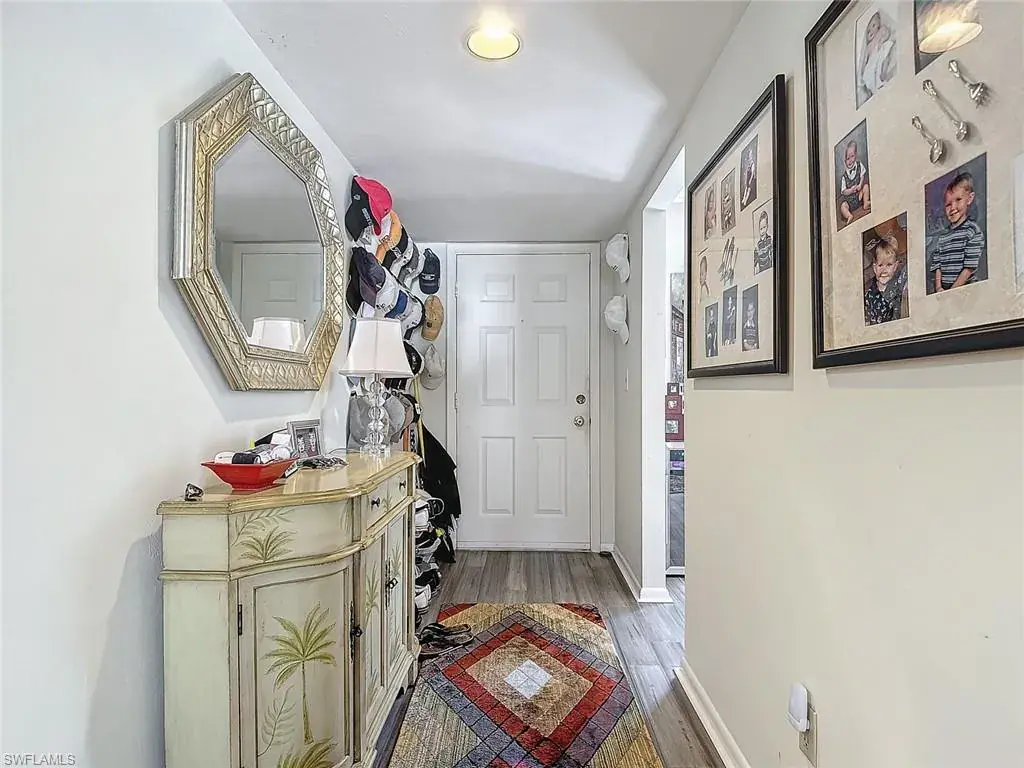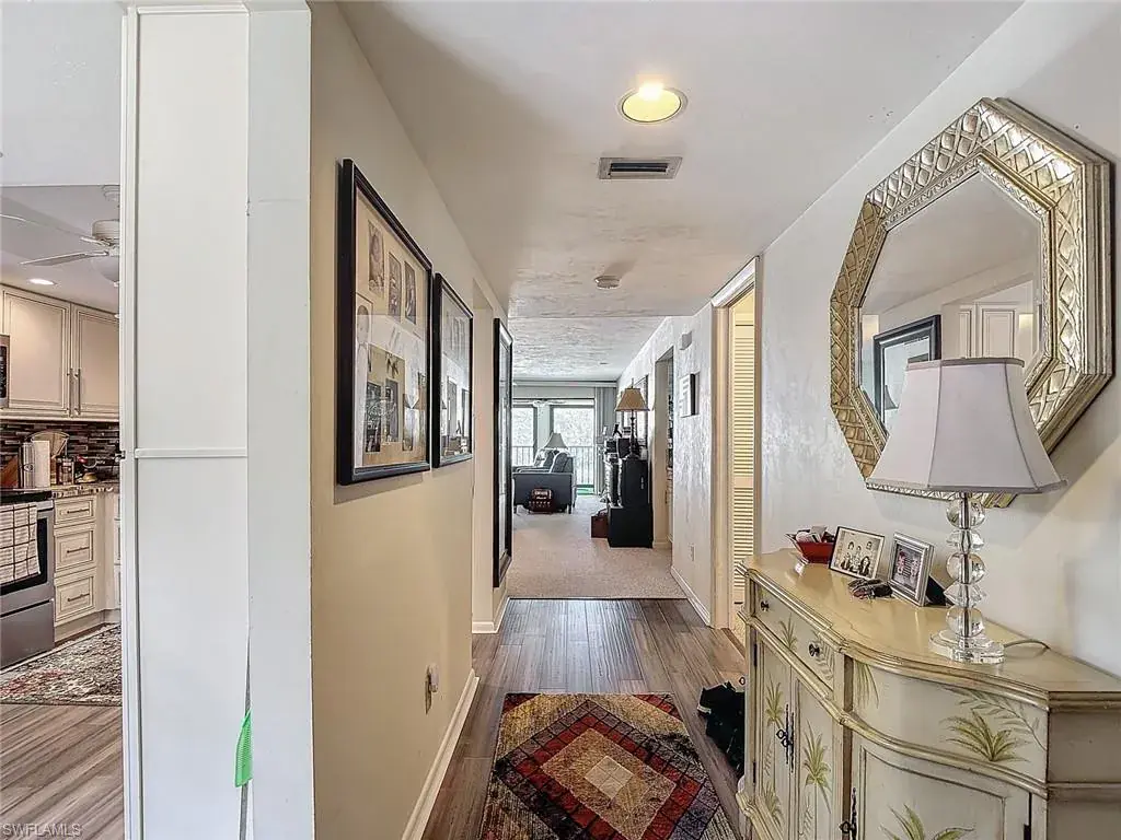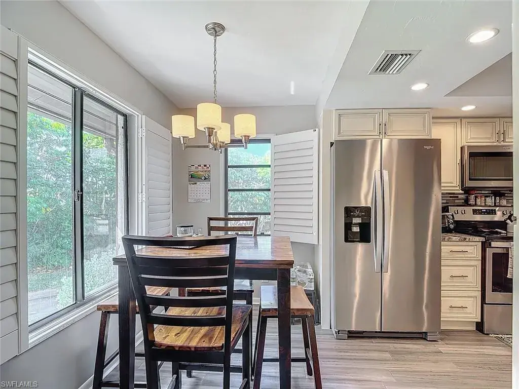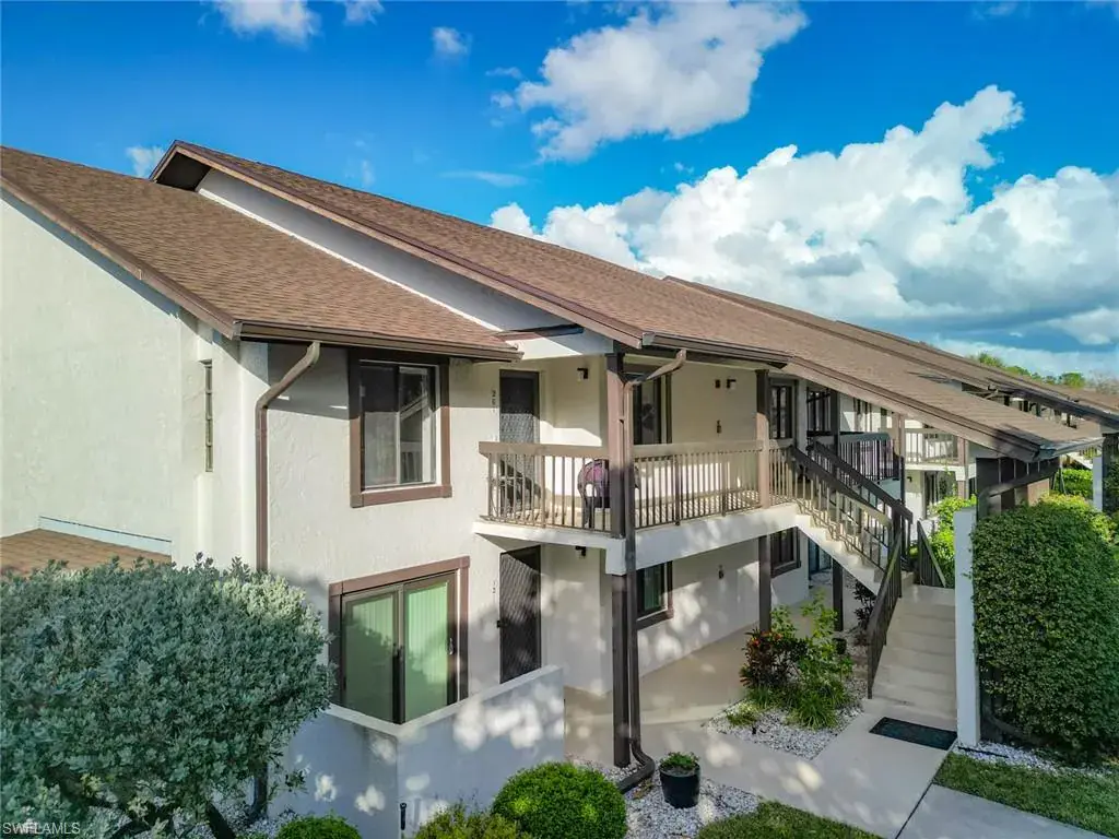 Location, location! 2BD/2BA 2nd floor end unit condo with lake view located in the heart of Central Naples! End units have three more windows than an interior units for additional light. Large, beautifully updated kitchen with granite counters, stainless appliances, eat-in area and lots of storage. Luxury vinyl flooring in entry area and kitchen. Enclosed tiled lanai has sliding glass doors for year round use. There are plantation shutters on the kitchen and living area windows. Extra storage area off of the lanai. New AC in 2024. Front patio area. Nice community with mature landscaping, two pools and tennis courts. Excellent location close to Naples beaches, downtown Naples, and just minutes to a wide variety of shopping, dining and entertainment options.