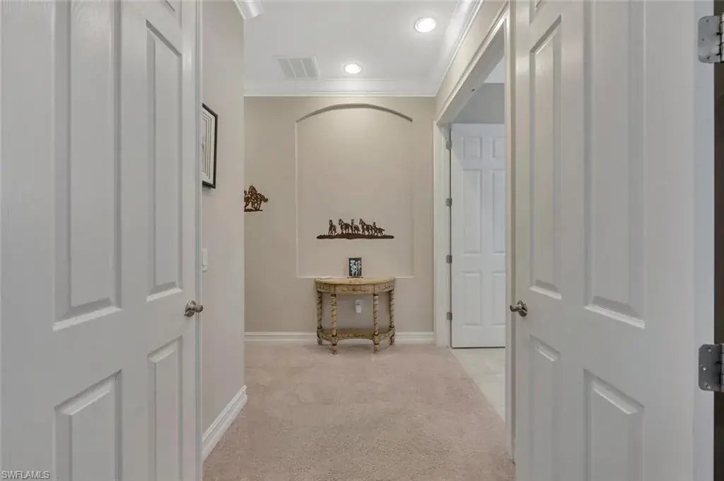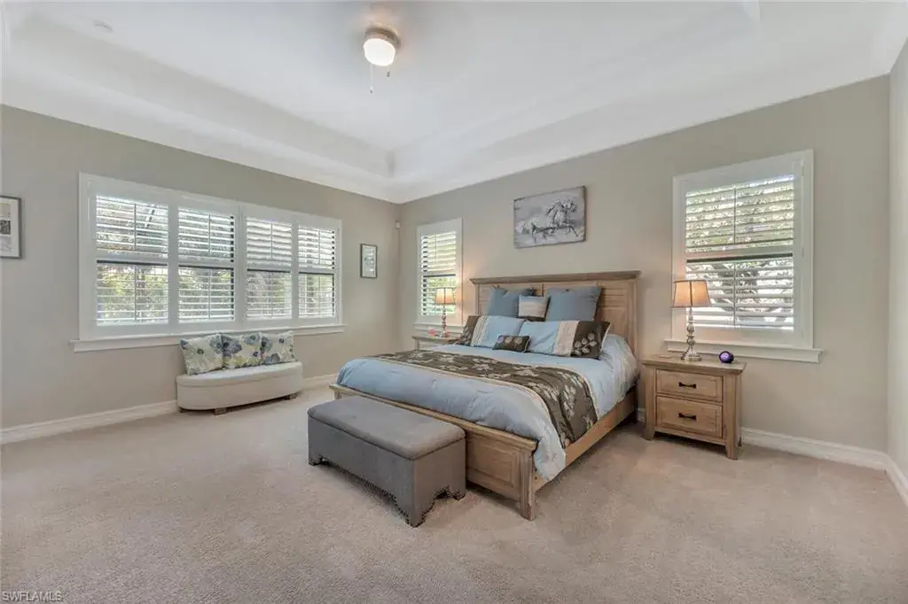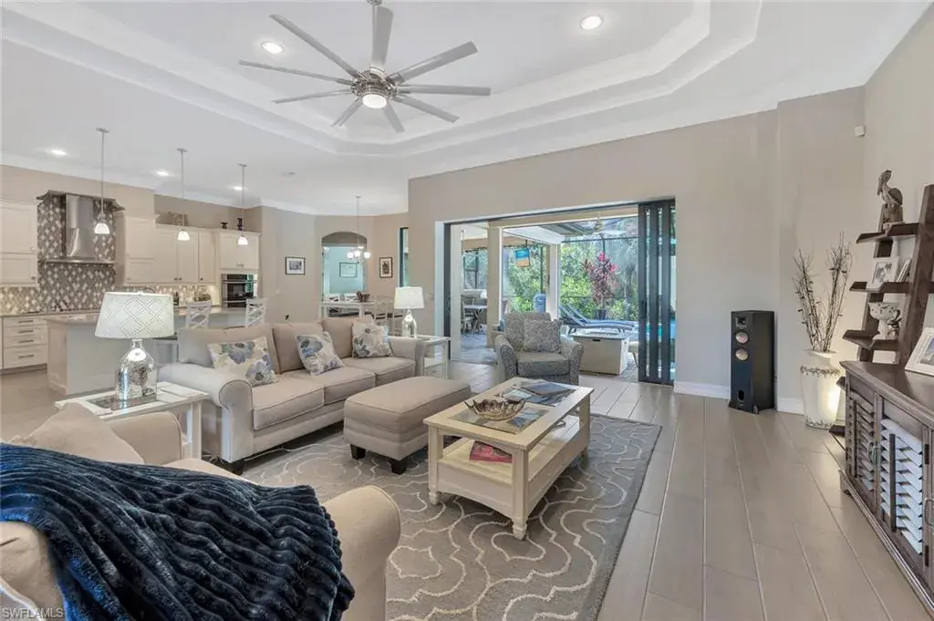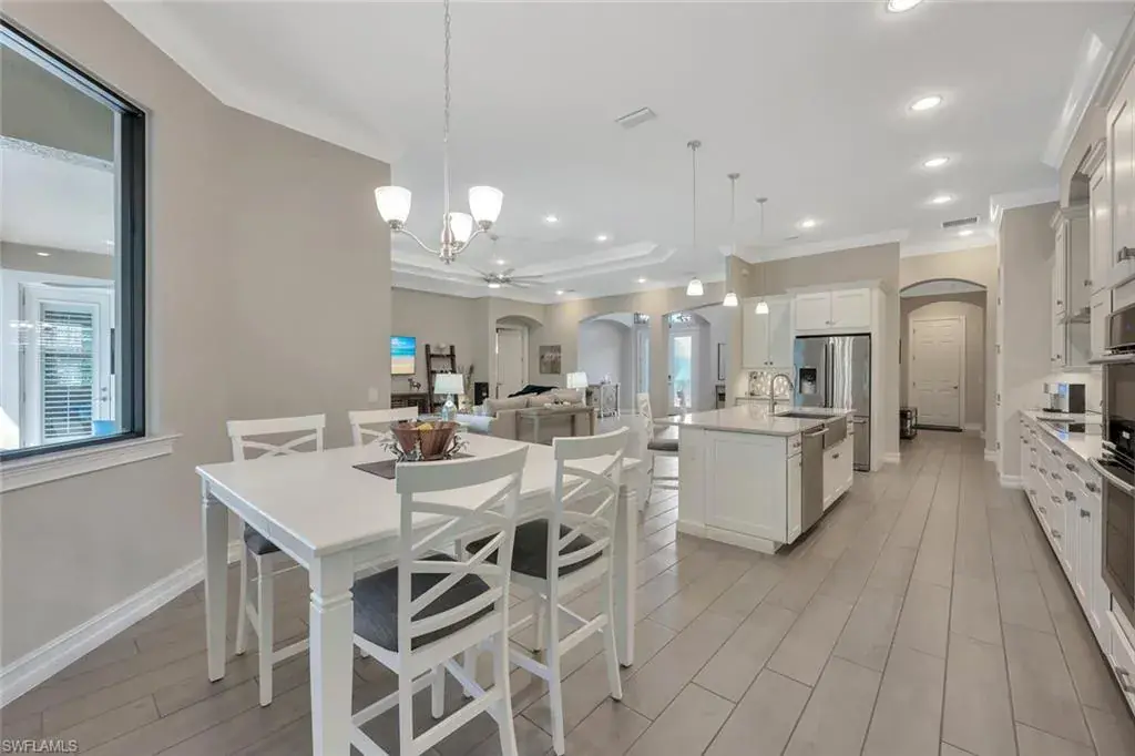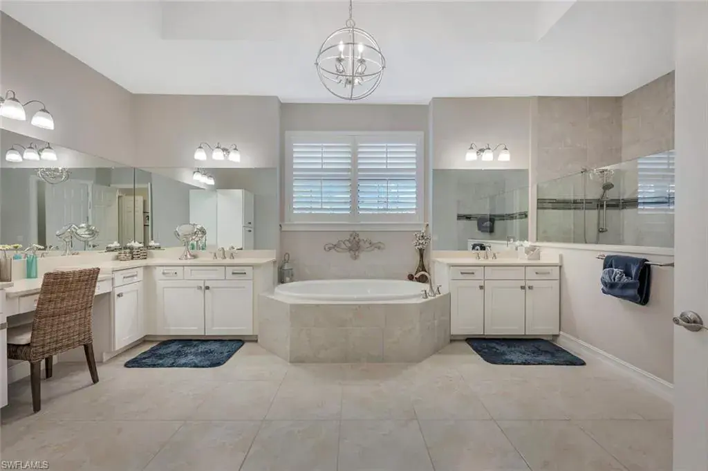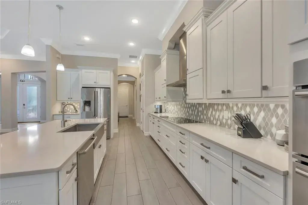 Welcome to Mockingbird Crossing, a private and secluded gated community of 110 homes in North Naples featuring ESTATE SIZE LOTS. This popular “Langford” open floor plan of 4 bedrooms, 3 full baths, 3 car garage with POOL/SPA is situated on a private and serene .27 acre SOUTHERN EXPOSURE lot. This home is beautifully appointed with TRAY CEILINGS, CROWN MOLDING, 8′ DOORS, 5″ BASEBOARDS, PORCELAIN TILE & WOOD, WINDOW TREATMENTS, and much more! The gourmet kitchen offers 42″ CABINETRY, QUARTZ COUNTERS, CENTER ISLAND, STAINLESS APPLIANCES, COOKTOP, BUILT IN OVENS and WALK IN PANTRY. The luxurious master suite features double door entry, elegant bathroom with DUAL VANITIES, soaking tub, separate walk-in shower, HIS AND HERS WALK-IN CLOSETS. Enjoy the beautiful and serene surroundings from the expansive lanai with OUTDOOR KITCHEN. The HOME IS COMPLETELY SOLAR POWERED & FULL HOME BATTERY BACKUP – NEVER LOOSE POWER. Located in Naples A+ school district, minutes to shopping, restaurants, I-75, Vanderbilt and Wiggins Pass Beaches.