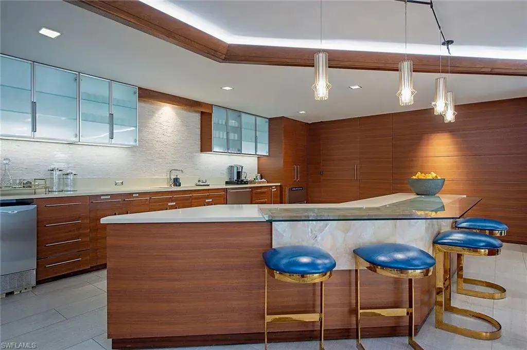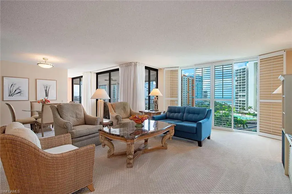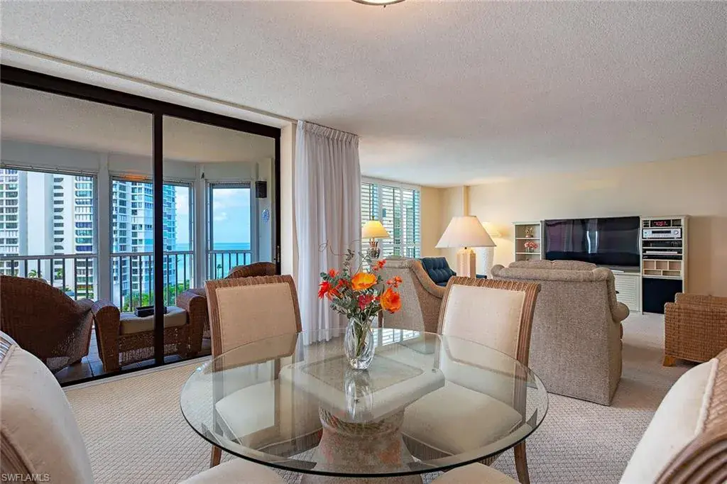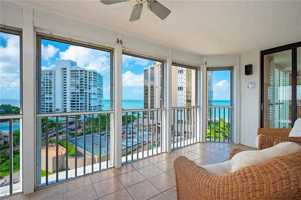 Enjoy southwestern views of the Gulf and bay from this 10th-floor corner residence at Monaco Beach Club. Lovely light streams throughout this two-bedroom, two-bath home with over 2,000 square feet of living area including a spacious living room with bar, primary bedroom with an updated bath and two walk-in closets, eat-in kitchen plus dining space and nicely-sized guest suite. Some of the additional features are floor-to-ceiling windows in the living room, a spacious lanai plus a private lanai off the primary suite and an oversized laundry room with storage. Monaco Beach Club is a wonderfully maintained, Gulf-front building and offers amenities including 24-hour secured gated entry, 24-hour front desk attendant, renovated lobby and common areas, social room, fitness room, two tennis courts, pool area with four gas grills and on-site manager. Stroll along the Park Shore Promenade or across the street to Venetian Village for shopping, dining and entertainment. Boat docks are available for lease or purchase (based on availability). The feeling of a home with convenience of condominium living!