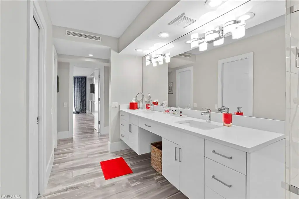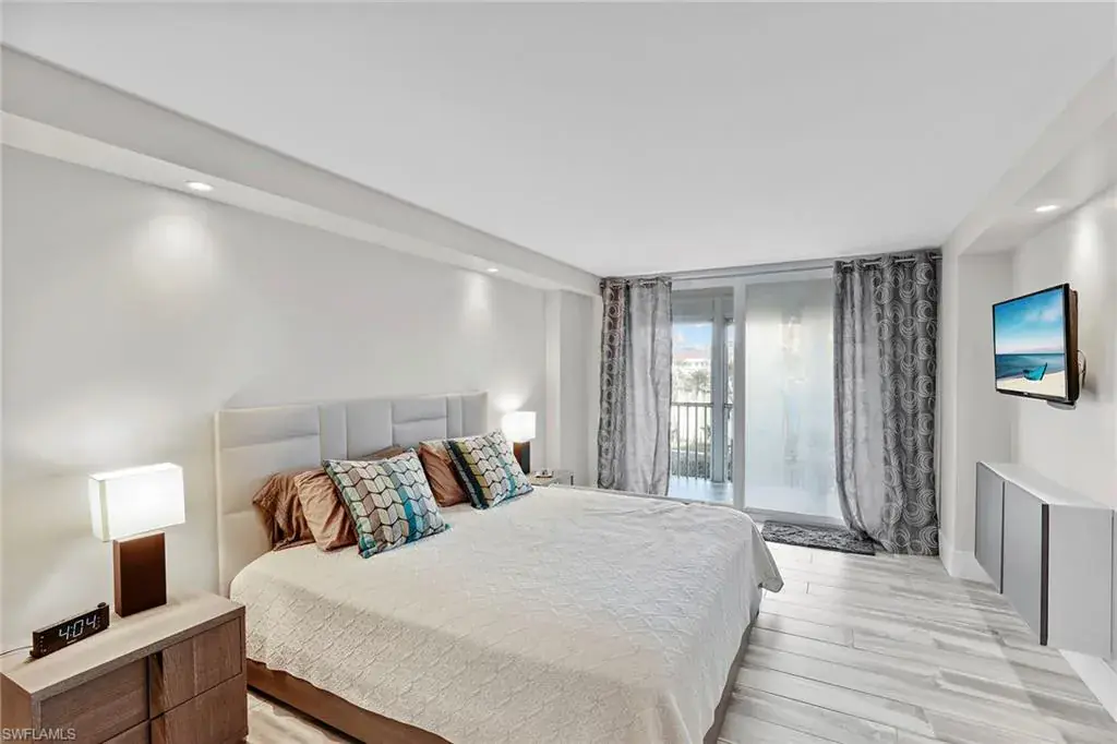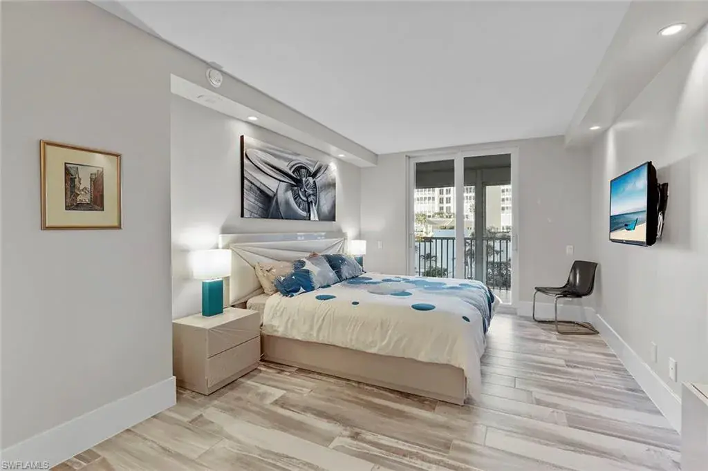 Experience refined Gulf-front living in this 2,753-square-foot residence in the Monaco Beach Club in Park Shore. Positioned on the third floor, this three-bedroom, four-bath home includes two primary suites and showcases a 2017 renovation by Borelli Construction. The open-concept layout offers tile flooring throughout, a wet bar, abundant storage, and custom closets.