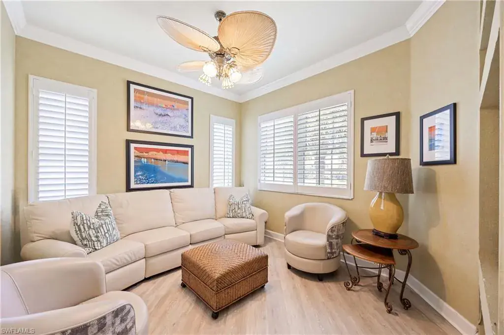 Step into elevated living with this beautifully appointed 2,748 sq. ft. coach home in the highly sought-after Mont Claire at Pelican Marsh. Boasting 3 spacious bedrooms, a versatile den, bonus room, and private elevator access, this residence combines comfort and sophistication in one of Naples’ premier gated communities.