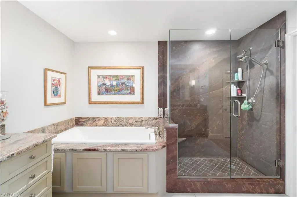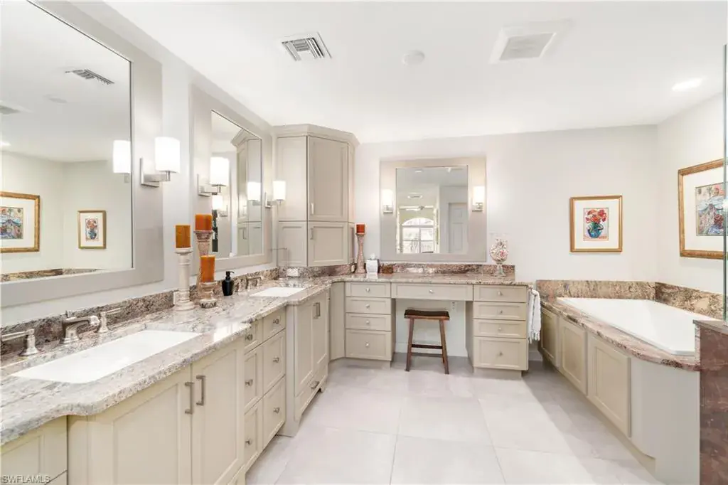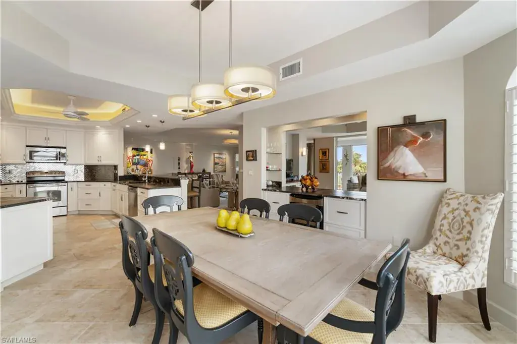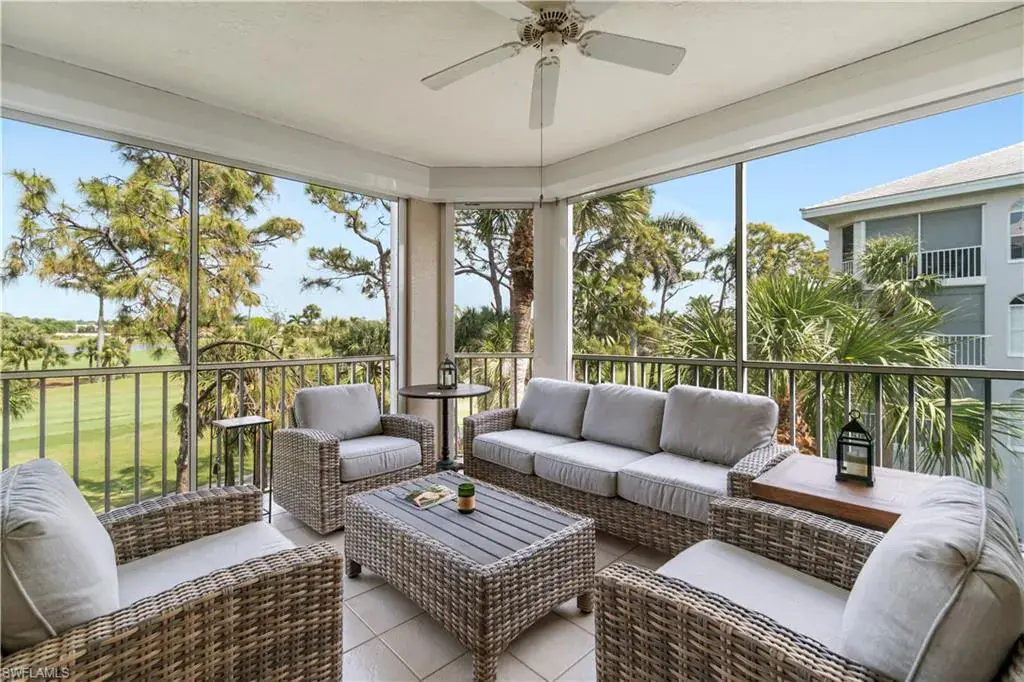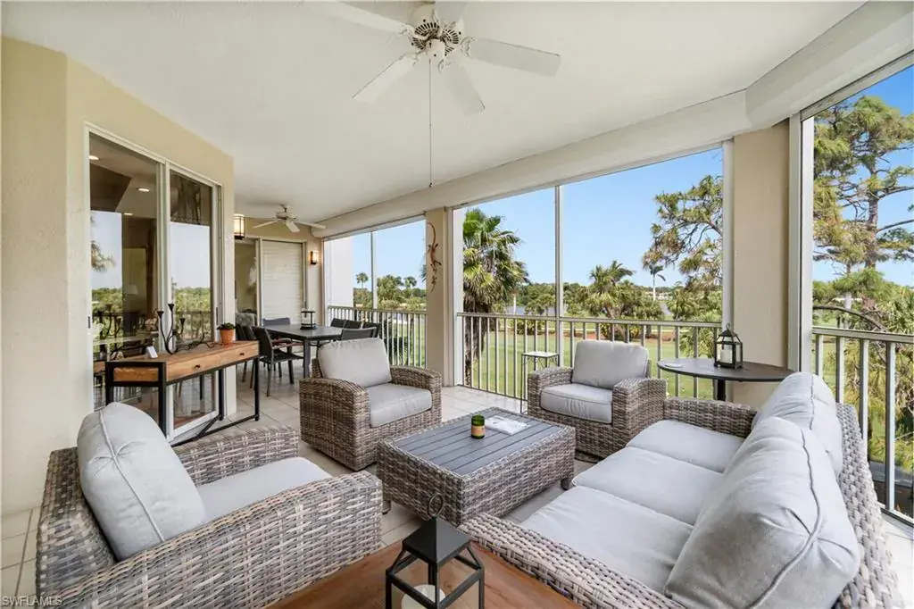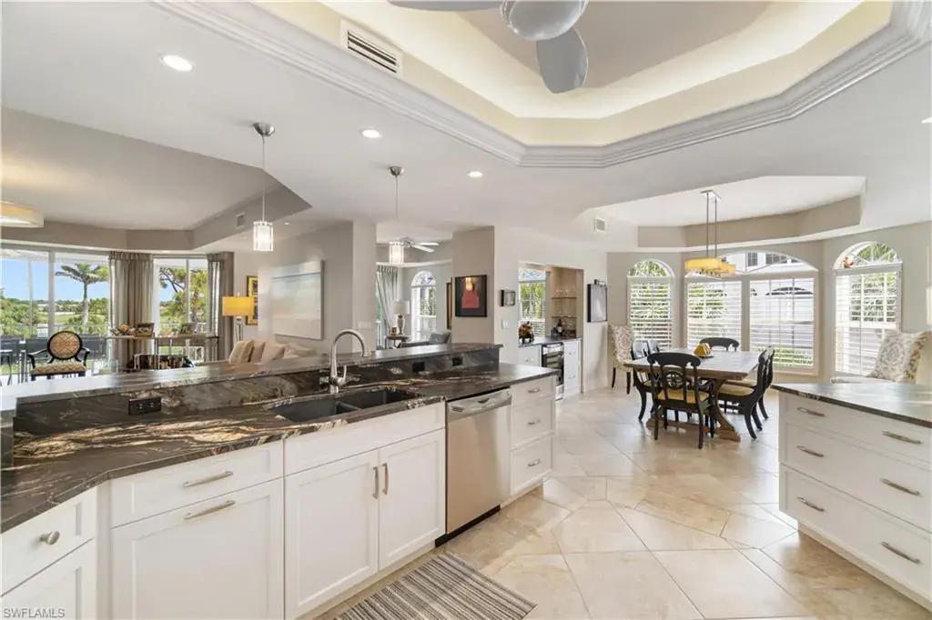 Beautifully updated condo with spectacular golf course & lake views in North Naples’ coveted “Audubon Golf & Country Club!” All the prime amenities offered in Audubon are only steps away, including an 18-hole championship golf course, tennis, pickleball, Bayside boardwalk, brand-new spectacular poolside club & café. Relax and unwind on your expansive screened-in lanai with breathtaking panoramic golf course views. This stunning residence features an open floor plan, three spacious bedrooms, a versatile den, and 3.5 bathrooms. A private two-car garage, complete with golf cart storage, adds to the convenience. Inside, you’ll find light, wide plank, wood flooring, tray ceilings, and a chef’s kitchen with crisp white cabinetry, exquisite granite countertops, and a breakfast bar for casual dining. Adjacent to the kitchen, a charming eat-in area offers a beverage bar with a built-in wine cooler, perfect for entertaining. The expansive primary suite boasts stunning golf course views, private access to the lanai, and a spa-like en-suite bathroom with dual vanities, a large frameless glass shower, and a separate soaking tub. Audubon Golf & Country Club is ideally located just five minutes from the vibrant Mercato shopping center and the pristine beaches of Southwest Florida, all within a gated, and guarded community.