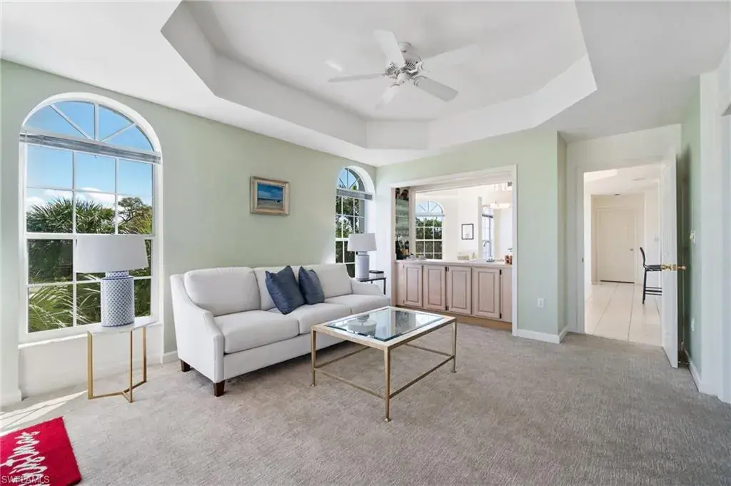 Beautiful condo with spectacular golf & lake views in North Naples’ coveted “Audubon Golf & Country Club!” All the prime amenities offered in Audubon are only steps away, including an 18-hole championship golf course, tennis, pickleball, Bayside boardwalk, brand-new spectacular poolside club & café. Relax and unwind on your expansive screened-in lanai with breathtaking panoramic golf course and lake views. This light, bright & airy home boasts electric hurricane shutters, an open floor plan, 3 beds + den, 3.5 baths, private 2-car garage plus golf cart storage, tray ceilings, & a built-in wet bar. The spacious kitchen offers light cabinetry and countertops, stainless steel appliances, and an eat-in kitchen that can also be utilized as an extra living area or home office. The primary suite offers magnificent golf course views, private access to the lanai, and an expansive ensuite with a large shower, separate soaking tub & dual vanities. North Naples’ “Audubon Country Club” is perfectly located 5-min from Mercato & SWFL’s world-class beaches, with gated/guarded entry.