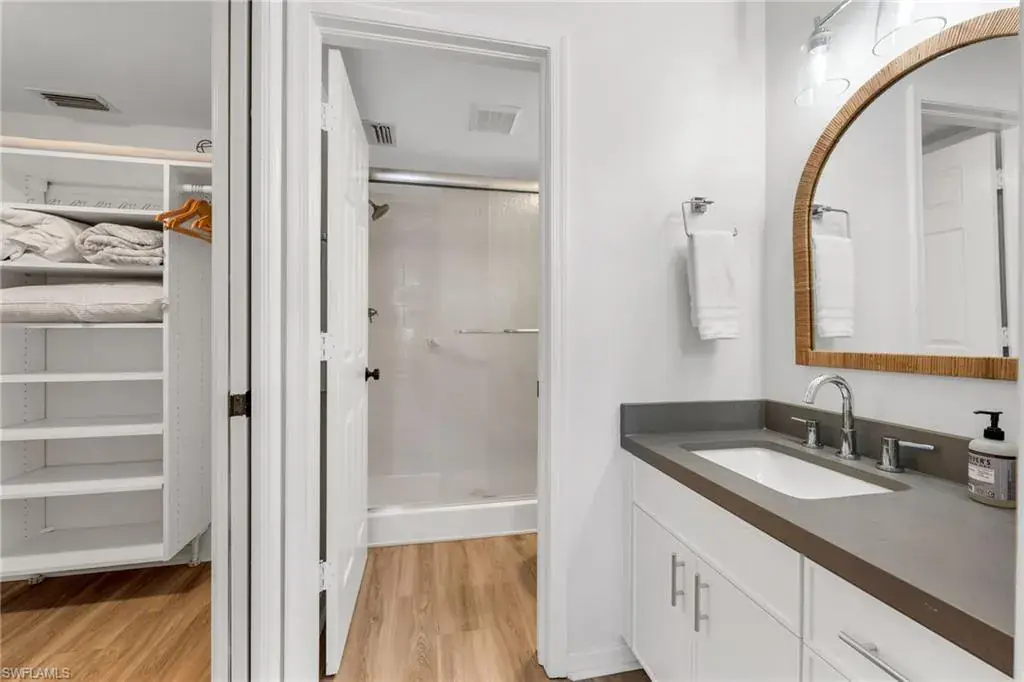 Investor’s dream or ideal second home! Already secured with $20K+ in bookings for Jan/Feb 2026, it’s a true income opportunity. This bayfront condo delivers both lifestyle and income with breathtaking bay views, direct beach access across from Vanderbilt Beach, and a generous rental policy allowing up to 12 rentals per year (30-day minimum). Renovated in a contemporary coastal style, this turnkey residence offers 1,248 sq. ft. of living space with luxury vinyl floors, high-end finishes, and designer furnishings. The layout includes 2 bedrooms plus a flexible den, providing plenty of space to host and entertain. The updated kitchen features solid wood cabinets, stainless appliances, ample counter space, and a breakfast bar flowing into the open living/dining area that extends onto a southern-facing screened patio. Amenities include a community pool, gated entry, and covered parking. Ideally located near Mercato, Waterside Shops, The Ritz-Carlton, LaPlaya, Whole Foods, Turtle Club, and Delnor-Wiggins State Park.