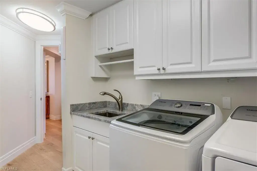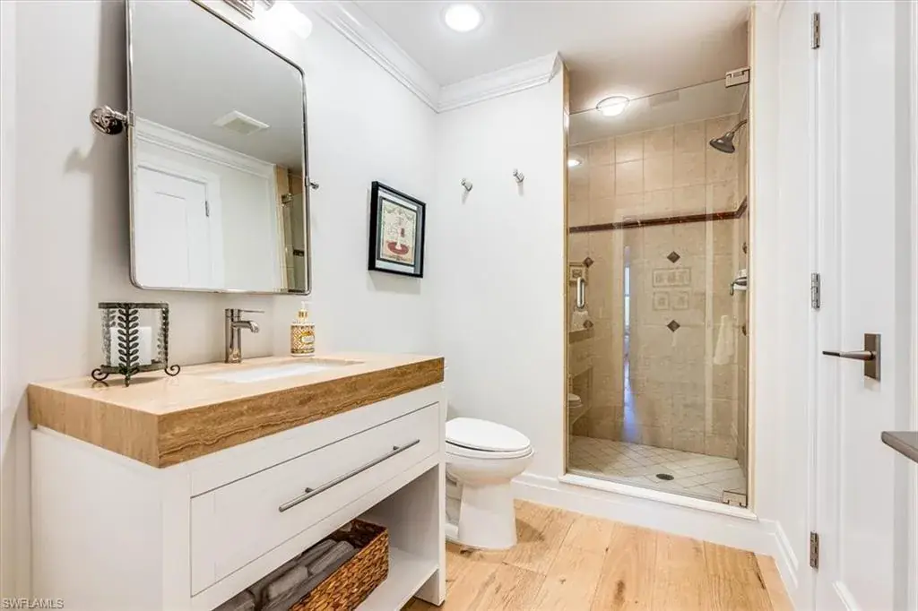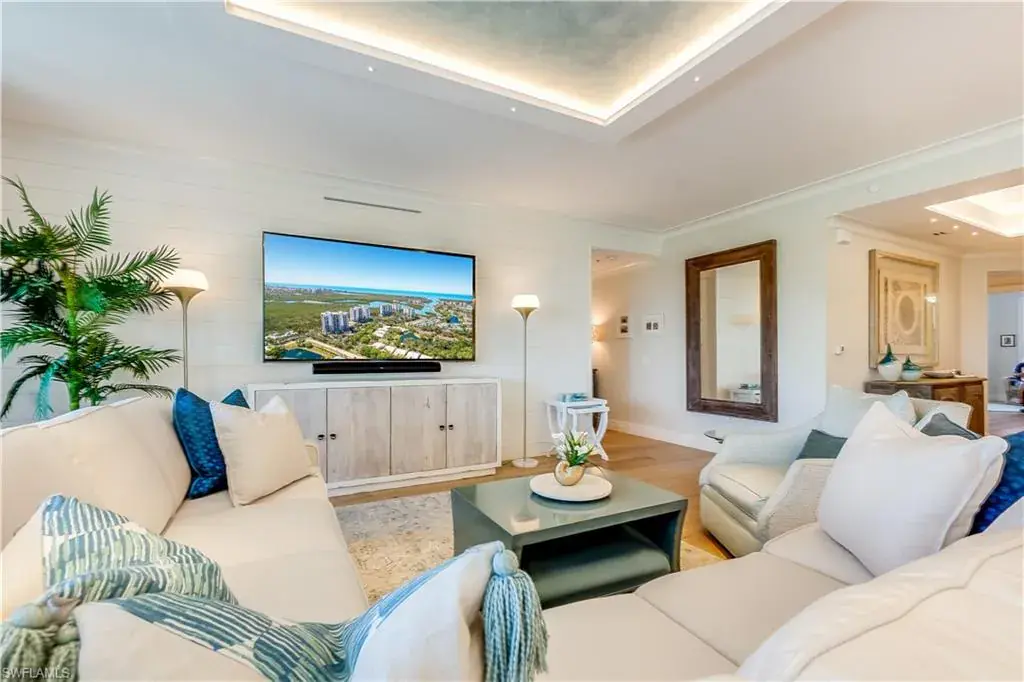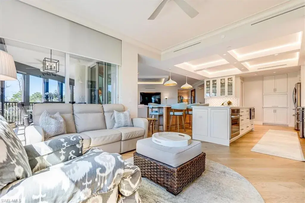 Elevated luxury in Naples! Located in Montego at Cove Towers, this stunning 2645 sq ft 3- bedroom, 3-bathroom condo, accessed via a PRIVATE ELEVATOR, invites you into a world of elegance and comfort. As you step inside, you’ll be captivated by the completely renovated open floor plan with high ceilings and wide-plank white oak floors. At the heart of the home, the gourmet kitchen features shaker cabinets, GE Café appliances (including an induction range with split ovens and an additional oven in the working island), and two 9 1/2 ft spacious islands – one for dining that can accommodate up to 10 people. Relax in the luxurious master suite with serene preserve views, dual walk-in closets and a beautifully designed bathroom with an extra large shower, quartz counter tops and all new cabinets. Two additional bedrooms and two bathrooms (one en suite) await your guests – both with large, walk-in closets. Enjoy outdoor living on the screened in lanai where you can sip your morning coffee while taking in tranquil views. You will also appreciate the open balcony (unique to Apartment 302) for even more outdoor space. This exceptional unit includes TWO GARAGE PARKING SPACES and access to the on-site Calypso Club, offering a resort-style pool, fitness center, 2 guest suites for extended family stays and social room where many residents gather for a game of bridge, book club, or even just to enjoy a glass of wine. Calypso Club is exclusive to only 2 buildings and is a truly special place. Additionally, the optional membership to the Tarpon Cove Yacht & Raquet Club offers an abundance of opportunities for tennis, pool, dining experiences, and “The Endless Summer” pontoon boat shuttle to the beach. Ideally located near shopping, dining and Naples beaches, experience the pinnacle of luxury living in the Cove Towers Preserve community, where Montego 302 is ready to welcome you home!
