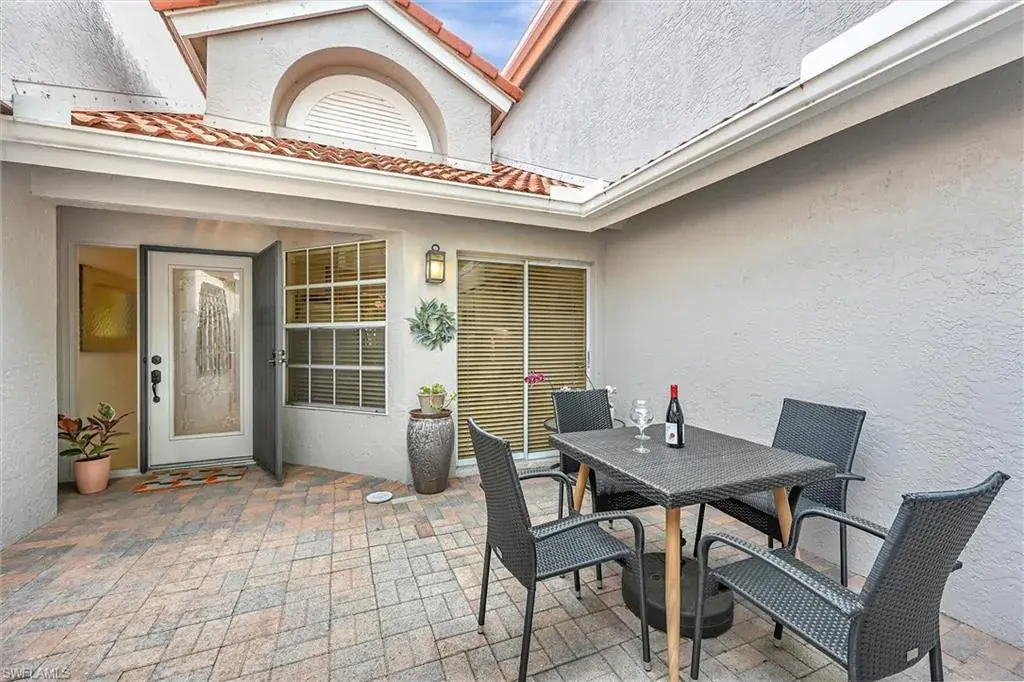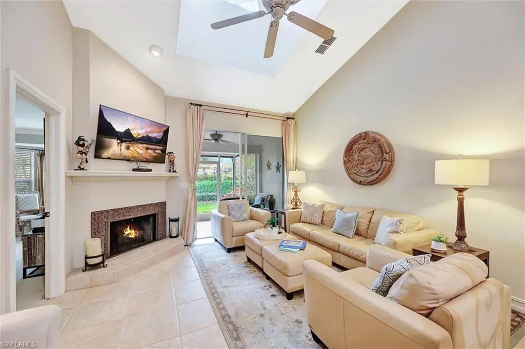 Best buy and rarely available. Move-in-ready villa in the desirable Villages of Monterey! This spacious 2-story home offers 3 bedrooms + den, 2.5 baths, a loft, and 1-car garage with lake and landscaped views from the screened lanai. Located on a quiet cul-de-sac, it’s just a short walk to the renovated clubhouse and resort-style pool. Enjoy 1,830 sq. ft. of living space with vaulted ceilings, tile flooring, and a cozy fireplace. The updated kitchen features newer stainless-steel appliances, ample cabinetry, plenty of prep space, and two breakfast bars—perfect for casual meals or entertaining. Step outside to your private courtyard patio, ideal for morning coffee, reading, dining al fresco, or gardening. The elegant bathrooms offer walk-in showers and custom cabinetry. The upstairs loft works well as a home office, guest room, or play area—offering flexible space for family and visitors. Monterey is centrally located off Orange Blossom Dr. near Airport-Pulling and Goodlette-Frank, close to top-rated schools, Mercato, Waterside Shops, beaches, Whole Foods, and more. Community amenities include 24/7 guard-gated entry, a remodeled clubhouse, fitness center, Har-Tru tennis courts, pickleball/basketball sports court, playground, and pet-friendly policies. A must-see home perfect for a variety of lifestyles!