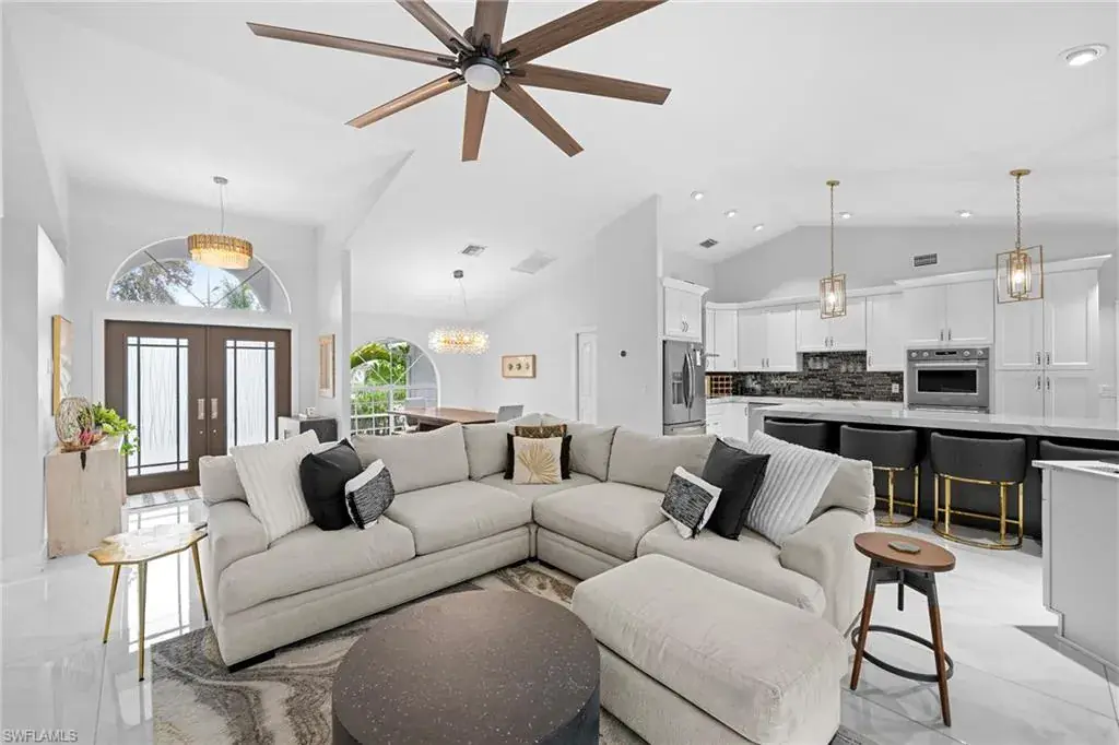 Effortlessly sophisticated home on a cul-de-sac street in the highly sought after and rarely available Monterey community! This 4 bed/3 bath + den home was recently updated to include an additional 500 sf of living space and an open kitchen perfect for entertaining. So much is NEW in this home, both inside and out! Full of luxurious finishes, including a professional La Marzocco espresso bar, Simonelli grinder (worth $12k), NEW Italian ceramic tile, New double convection oven, NEW AC with UV light filter, NEW water heater, NEW water well and NEW RO system. Outside features a butterfly garden, $55k of NEW landscaping, NEW lanai casing, NEW parking pad, and a spacious backyard with a zip line and trampoline. All furniture conveys, including a piano and Nest cameras. Located in an A+ rated school zone, just 1 mile from the beach, near the upscale Mercato and Waterside Shops. The gated Monterey community offers a renovated clubhouse, resort-style pool, fitness center, tennis, pickleball, and more. With easy access to I-75, the SWFL International airport, world class dining, shopping, entertainment, and beautiful white-sand SW Florida beaches.