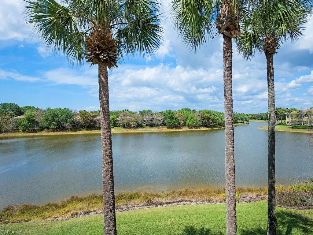 Ascend the beautiful wood spiral staircase or a quick ride in the private home elevator to the flowing open floor plan of this stylish second story coach home. Updated from top to bottom in light, neutral tones, this stunning home leaves little to be desired. Gorgeous tile laid on the diagonal flows throughout the main living spaces, highlighted by soaring tray ceilings, crown molding, arched passageways and abundant windows with plantation shutters inviting natural light to flood the space. Casual and formal dining areas are situated just off the elegant, updated kitchen featuring striking gray cabinetry, large marble-topped center island with sink, brand-new stainless-steel appliances, walk-in pantry, and natural gas cook top. The family room features stunning outdoor views through an expansive wall of windows, bringing the outdoors in. Handsome wood floors adorn the master bedroom suite with picturesque lake views, walk-in closets and direct access to the screened lanai. The master bath features his and hers vanities, separate soaking tub, glass shower and expansive mirrors. Relax on the screened lanai, soaking up panoramic lake views, complete with hurricane shutters.