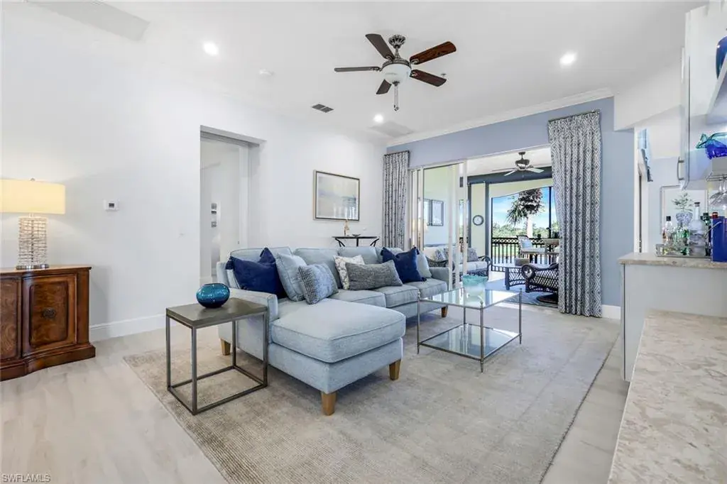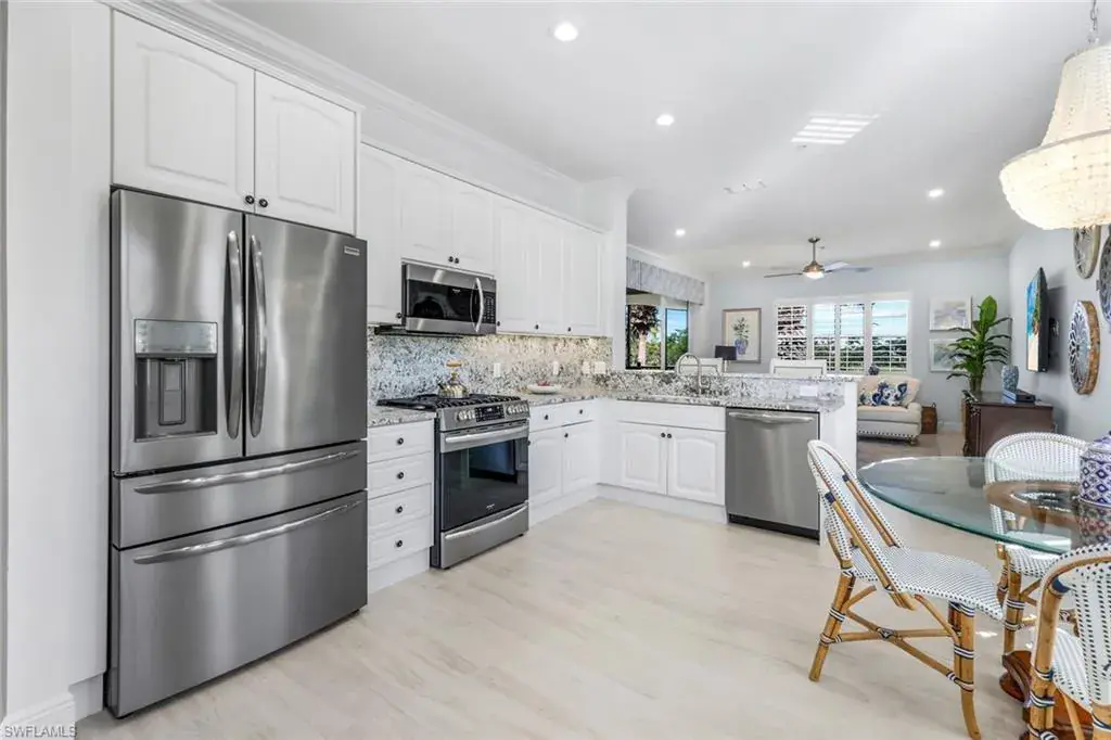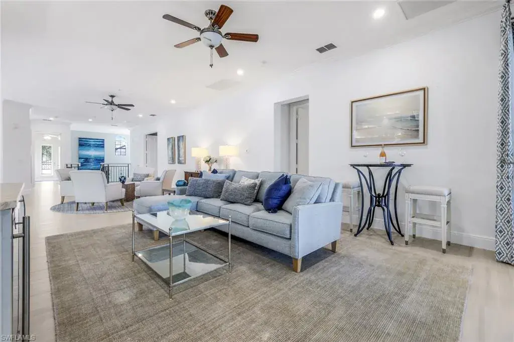 Priced to sell, and absolutely gorgeous!! It’s not often you walk into a home that checks all the boxes, but this beautifully updated 2nd floor end unit coach home in the desirable village of Montreux does indeed! 3 large bedrooms, 3 baths, plus den that can be used as an additional bedroom oozes fresh coastal vibes and a sparkling wide water view on the Rookery golf course that is second to none. 3,029 square feet professionally designed with white wood look porcelain tile planks throughout! Features include: fresh white walls and solid core doors, plantation shutters, custom built-in bar, perfectly scaled, newer air conditioning, tankless water heater, storm screens protecting the expansive private screened lanai, solid cherry white cabinets, spectacular leathered finish granite counters, newer roofs, freshly painted exterior and brand new landscaping currently being installed, create a home that is not only easy to maintain, but one you can enjoy with family and friends this winter season or year round. Large storage closets on both floors with the ability to install an elevator make this home perfect for multi-generational living. Montreux is a short walk or bike ride to the heart of the community, the updated 54,000 sq ft home to the state of the art gym with new equipment, yoga studio, pilates room, 2 resort pools with waterfalls and slides, 2 restaurants, spa services, fitness classes, full time activity staff providing special events and classes year round, tennis, pickle ball and bocce ball. Miles of sidewalks, all underground utilities, lush landscaping, location, modern coastal designed future building, plus the overall design of the community sets Fiddler’s Creek apart from all others and is a gem of south Naples. As if this wasn’t enough, there is also an optional beach and/or marina membership available, an extremely rare opportunity to enjoy the beach club at the Marco Beach Ocean Resort and the Marina on Isles of Capri. If you are a golfer, you are in the right place! The Golf Club at Fiddler’s Creek just re-opened with a total turf renovation, re-designed Arthur Hills greens, amazing practice facility anchored by the brand new spectacular private golf clubhouse. Equity memberships are currently available with no waiting list.