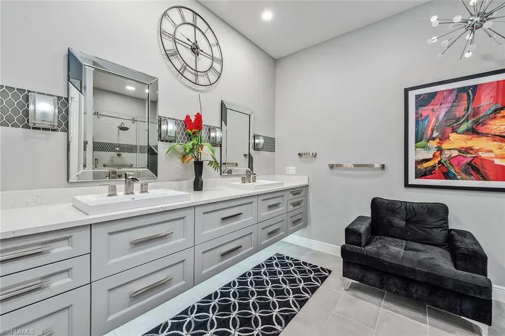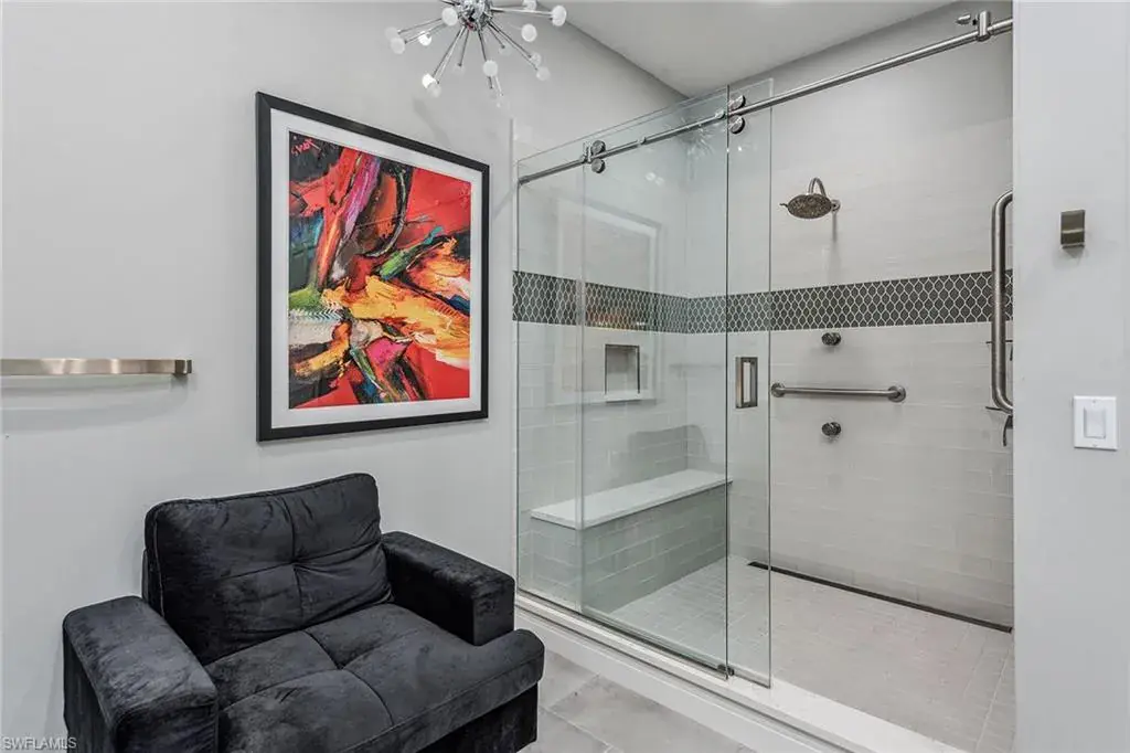 Experience refined living in this beautifully remodeled and furnished top-floor end-unit coach home, perfectly positioned with sweeping views of the Rookery golf course and sparkling lake in the award-winning community of Fiddler’s Creek. Encompassing over 3,000 square feet, this residence lives like a single-family home with three bedrooms, a den, three full baths and an attached two-car garage. The inviting exterior, with its tile roof, paver driveway and lush landscaping, opens to a private courtyard entry with soaring two-story ceilings. A private elevator and wrought-iron staircase lead to the main living level, where spacious, light-filled interiors await. The great room, formal dining space, and den with French doors blend seamlessly, while a custom cocktail room elevates the home’s entertainment appeal. Complete with a dramatic stacked stone feature wall, passthrough to the kitchen, breakfast bar, under-cabinet lighting, and beverage cooler, this one-of-a-kind space is ideal for hosting. The gourmet kitchen is appointed with stainless steel natural gas appliances, wood cabinetry, a pantry and a breakfast nook framed by bay windows. Flowing from here, the family room opens to a screened lanai with generous space for lounging and dining while enjoying uninterrupted views of the water and golf course. The serene owner’s suite offers two walk-in closets and a newly remodeled spa bath with a floating dual vanity, custom mirrors, under-lighting and a frameless walk-in shower. Two spacious guest suites each feature private baths for family and visitors alike, with one guest room offering a beautiful balcony. Additional highlights include plantation shutters, a well-appointed laundry room and built-in shelving in the garage. This luxury condominium is located in the Montreux village, with convenient access to the award-winning Fiddler’s Creek amenities: a stunning 54,000-square-foot clubhouse with new updates in 2025, a resort-style pool with waterfalls and slides, a fitness center with trainers and classes, very active tennis and pickleball programs with brand new pickleball courts in 2025, clinics and leagues, bocce, sauna, a steam room, casual and fine pool-side dining, and an activity and event calendar with something for everyone. Immediate golf memberships are available with a spectacular new clubhouse and recently renovated championship course, along with optional beach and marina memberships for the ultimate Southwest Florida lifestyle. Miles of sidewalks offer excellent space for jogging, walking and bicycling, surrounded by gorgeous landscape and fountains, all within the gates. Perfectly situated between Naples and Marco Island, this home offers unmatched convenience near pristine beaches, dining, boutiques, grocery shopping, parks, the executive airport and nature preserves. With the brand-new exterior paint, a newer roof, new landscaping and CDD bond paid in full, this remarkable property combines elegance, privacy and peace of mind.