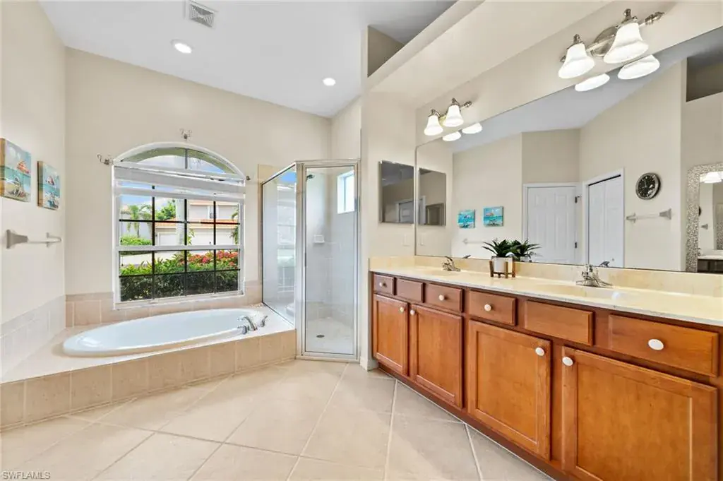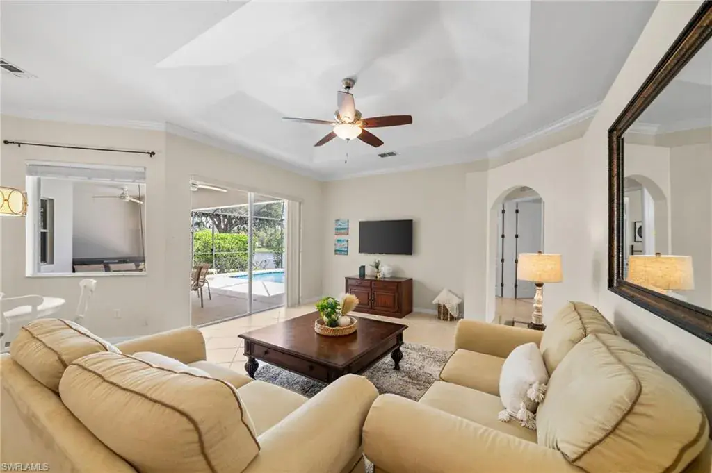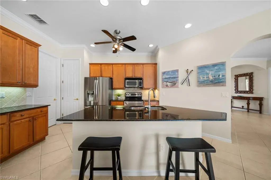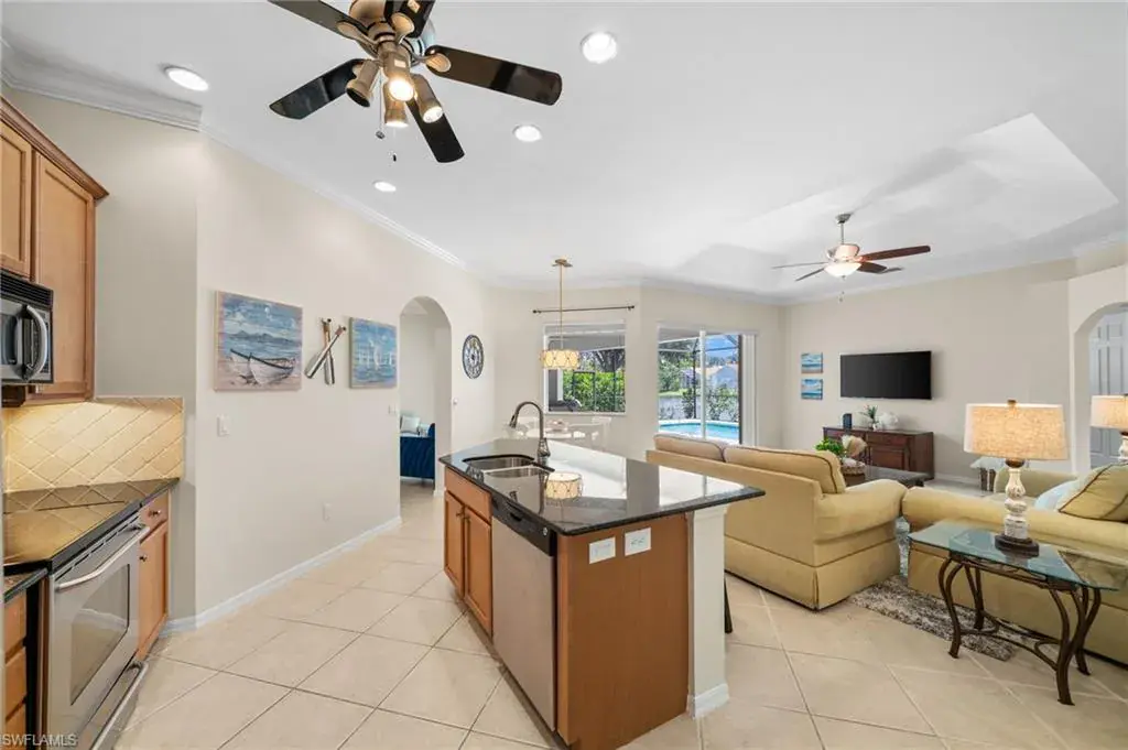 Welcome to 5014 Old Pond Drive, the largest home currently available in Moon Lake by square footage, number of bedrooms and bathrooms, garage space, and lot size—and yes, it comes with an expansive lakefront view. This beautifully updated 4-bedroom, 3-bath, 3-car garage residence spans 2,287 square feet and sits on an oversized lot, offering the kind of space and lifestyle flexibility that’s hard to find in this desirable Naples community.