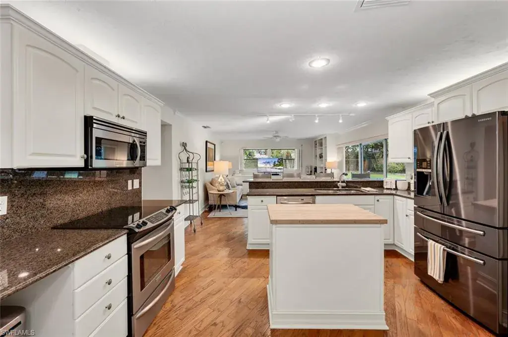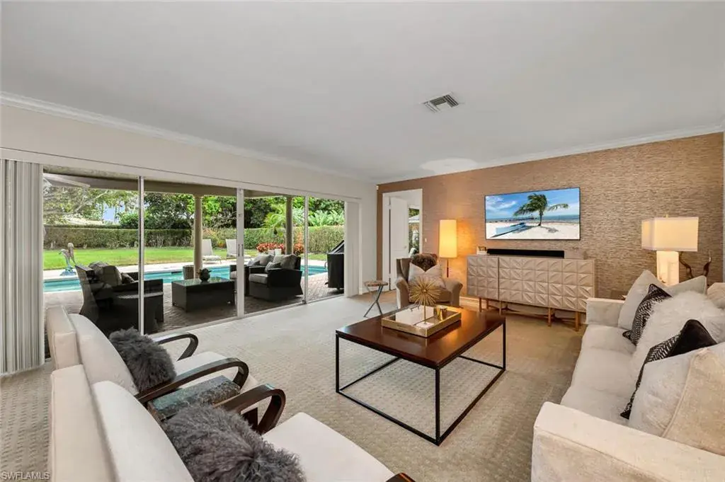 Spectacular find! Beautifully updated & meticulously maintained 4-bedroom 3-bath one level home. Located in the SAFE FEMA “X” zone. Very Large .42 Acre lot on Crayton Road. Just south of Mooringline Dr. Old growth trees and native plants encompass your private retreat. Hidden private respite in the heart of Naples. Over 2400 sq ft of light & bright, comfortable, quiet, living. Updated kitchen, spacious living room, family room, den, 3 guest bedrooms, 3 full baths, with spacious master suite. Tranquil covered outdoor pool, deck, and entertainment area with stunning park-like yard. Refresh in nature’s beauty. Plenty of room for your pets to roam. Harvest your mature Mango & Lemon trees. One of the few properties in The Moorings with no overhead power lines. Centrally located with short stroll to Moorings Beach Park for stunning sunsets, a dip in the Gulf, or picnic lunch. Minutes from Old Naples, Venetian Village, Waterside shops, Mercato or Artis-Naples. Dreams do come true – Bring your best offer!