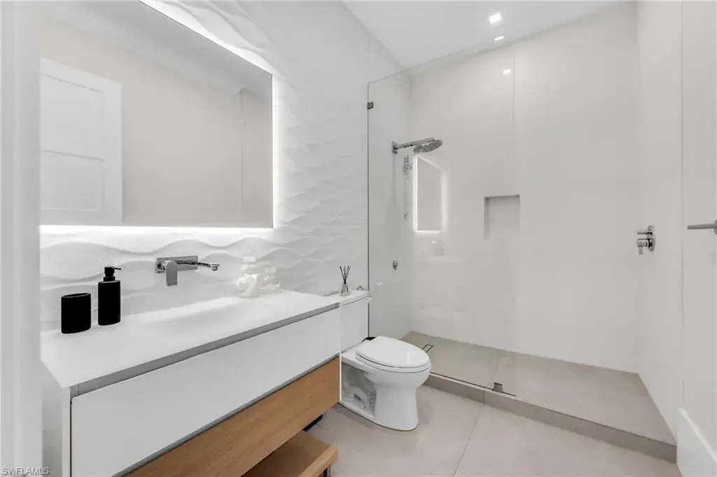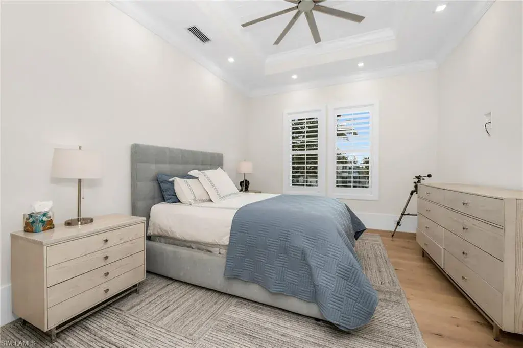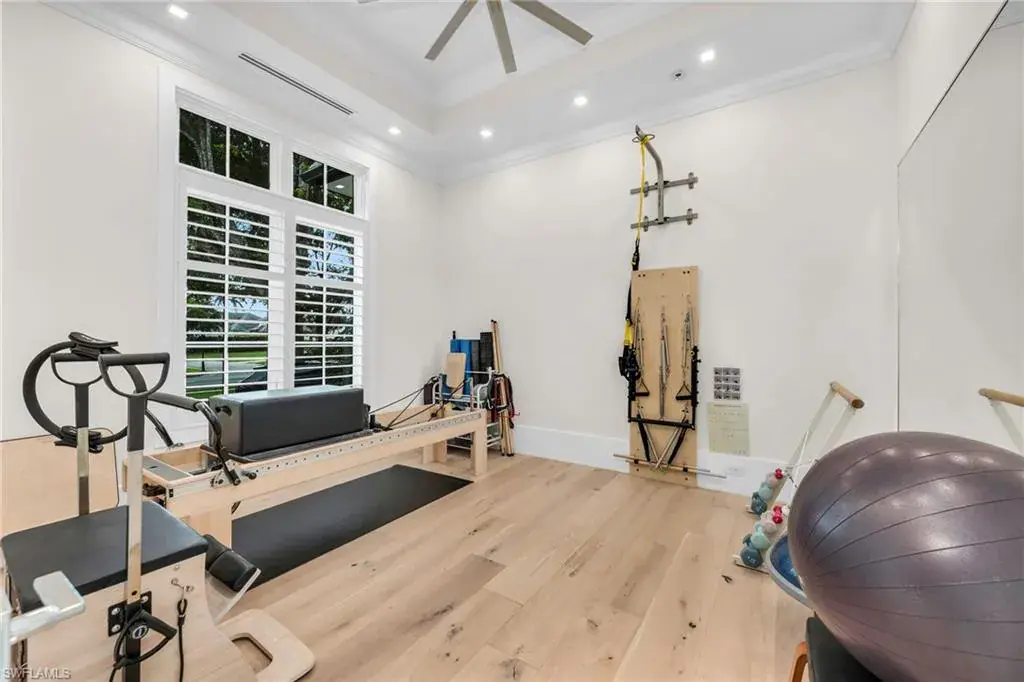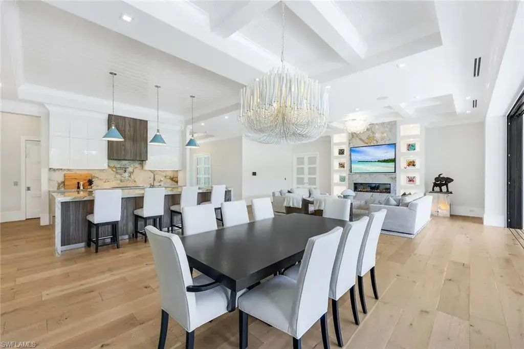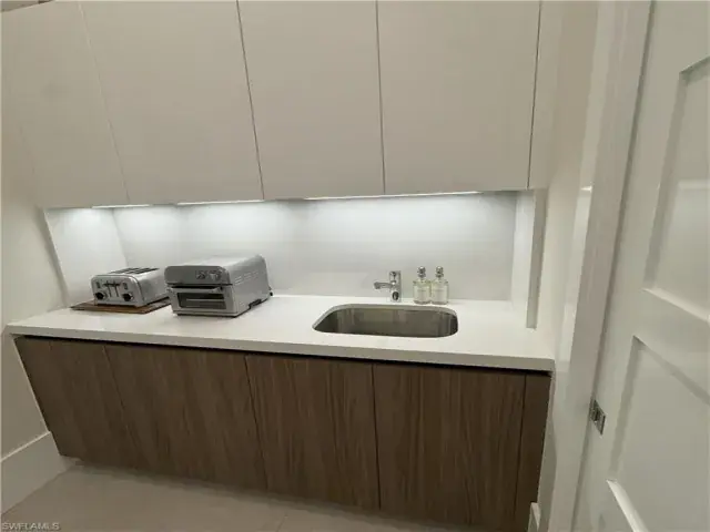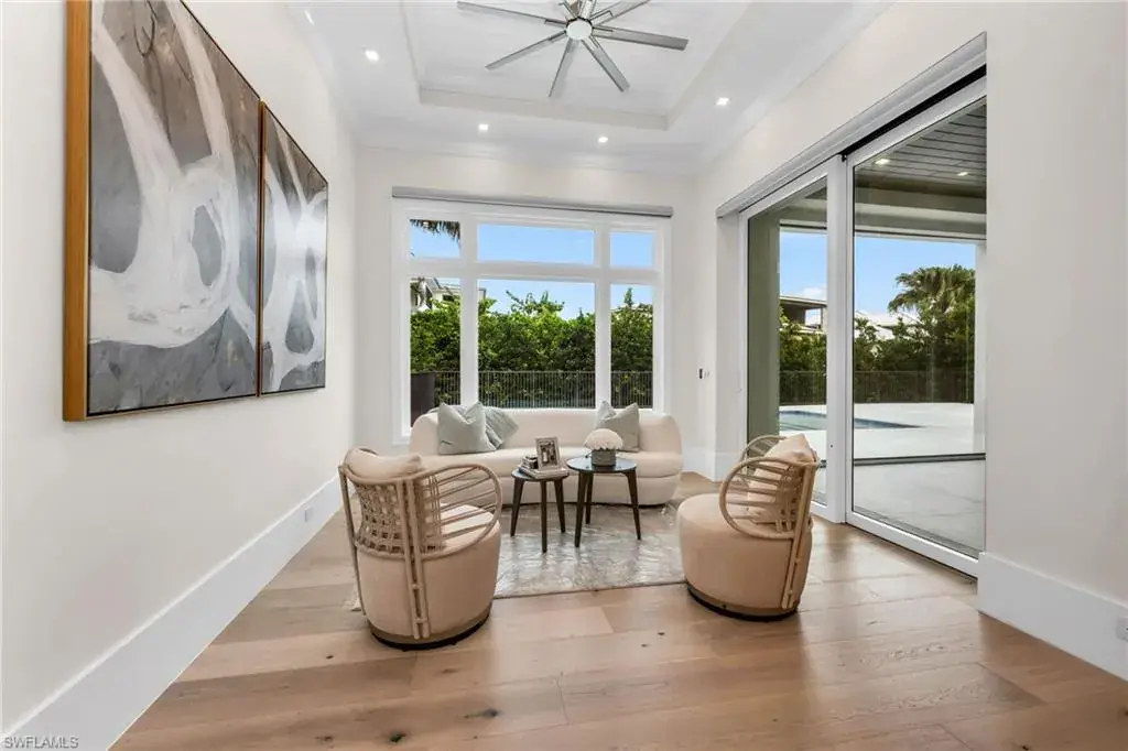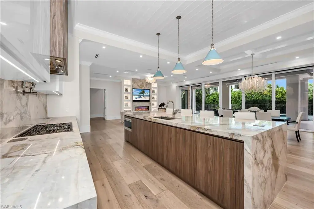 Stunning 2023 custom built home meticulously designed by Clive Daniel and Robb & Stucky interiors, furniture negotiable and features 5 bedroom/en suites, plus a Pilates/yoga studio. CHECK OUT THE VIDEO! This home is designed to be handicap friendly with an elevator that takes you from the garage level up to the main floor and second floor of the home, perfect for heavy lifting. The primary bedroom features his and her walk-in California Closets, a large walk in shower, a free standing tub, electric blackout hunter Douglas shades and 2 private Japanese smart toilet rooms. Entire home offers an array of technology throughout and is powered by Savant Automations’ new *brilliant smart home system* with video audio and sound controlled from every area of the house linked to your smart phone. As you walk through this well thought out floor plan, you will find an expansive family room with floor to ceiling Anderson pocket sliding glass doors that allows plenty of natural light with wide plank legno bastone flooring throughout. The family room will lead you into the oversized Chef’s Kitchen with Sub-Zero Wolf and Asko Appliances with a full butler’s pantry and 2 sub zero wine towers with 4 refrigeration drawers. The second floor offers 3 en-suites with private balconies along with a large bonus room that can be used as a home theatre set up or game room. Relax by your Resort Style salt water pool/spa surrounded by Brazilian trees while enjoying the Florida weather that also features a 900 sq foot lanai area with electric roll down screens and shutters, a fireplace, mounted 85” TV with 10 outdoor speakers perfect for entertaining. A built-in summer kitchen with outdoor subzero refrigeration and ice maker. This Moorings masterpiece has it all and touched by all. Within minutes to Historic Downtown Naples, white sugar Sand Gulf Beaches, and all that Naples has to offer! Just 1.5 miles to four seasons and waterside shops. Truly a rare find! 12 Foot Elevation.
