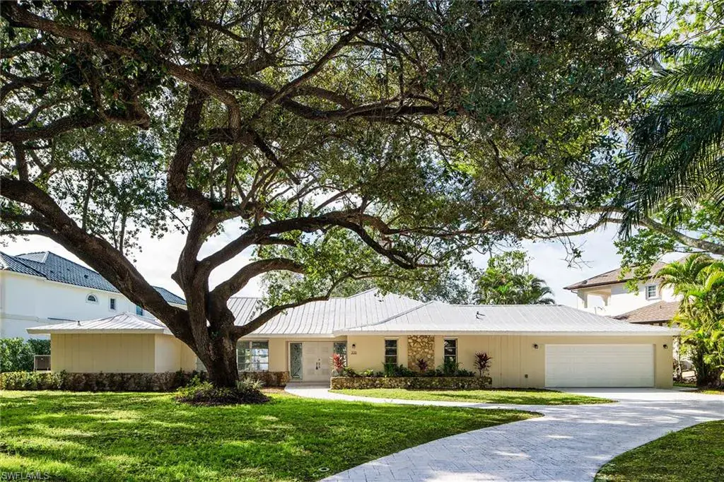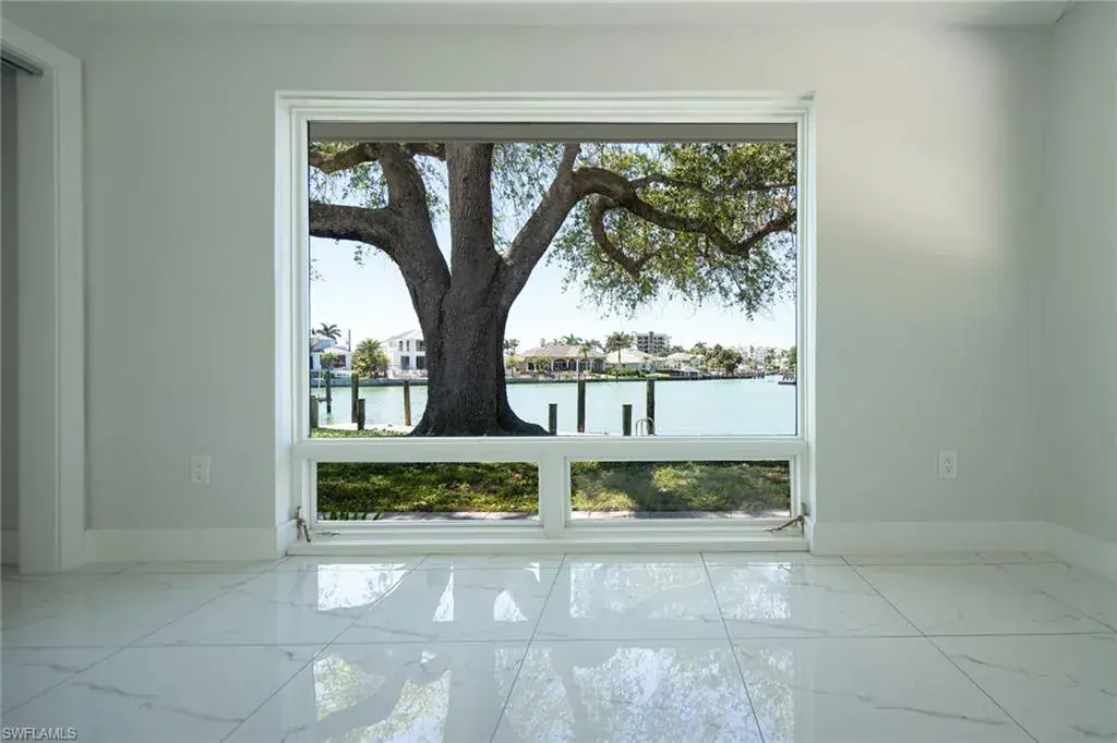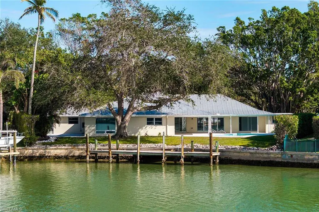 This is the optimum waterfront site for a sailor or power-boater who wants a sheltered mooring site with almost immediate access to the gulf. Doctor’s Pass is five minutes from the dock. There are no bridges and adequate depth! The southwest exposure from the rear yard and dock provides stunning sunsets over the wide lagoon, and the soft prevailing sea-breezes keep the pool area comfortable year-round. The residence has been completely re-constructed over the last two years with a new roof, new partition walls, baseboards, cabinetry baths, appliances and HV/AC equipment, and is ready for owner decorating and occupancy or rental. The floor plan has split primary suites, a third guest bedroom and a large den or office. Surrounded by mature live oaks in one of Naples loveliest neighborhoods, it is offered at lot value and awaits your pleasure.