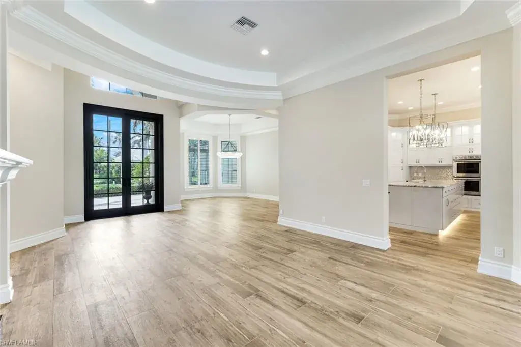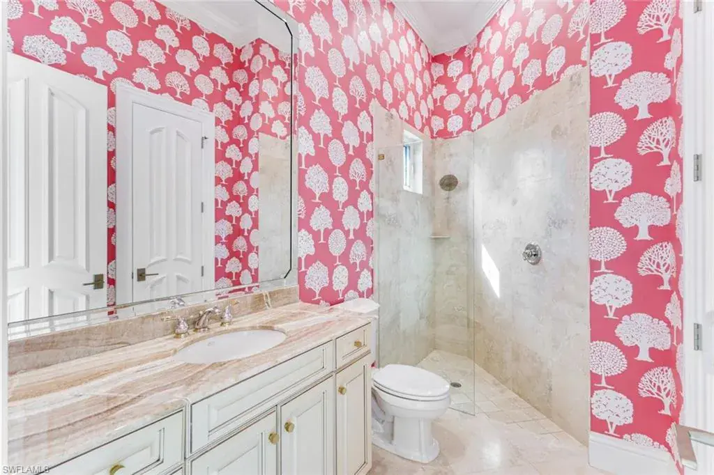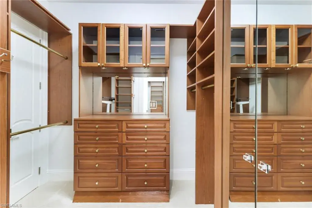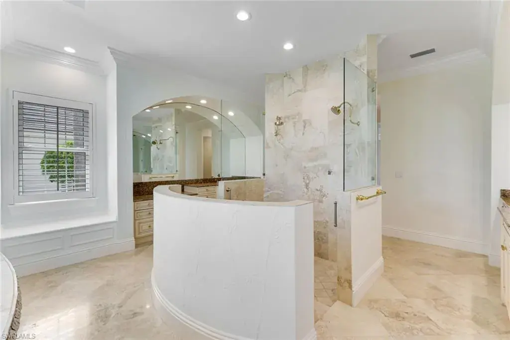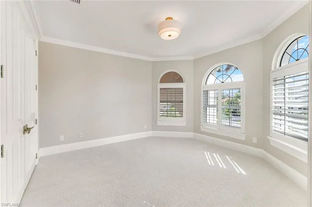 As you step into the formal living room, you’re greeted by awe-inspiring water views framed by floor-to-ceiling windows, complemented by a cozy gas fireplace. Enjoy spectacular sunsets from your new residence in The Moorings, situated on .31 acres with southwest rear exposure on Compass Pass, where you’ll find your boat dock with a lift that can accommodate a substantial-sized boat. Quick, direct Gulf access with one bridge is a boater’s delight. Five bedrooms plus a den, a large bonus room, five and a half baths, as well as an oversized attached garage with a circular drive provide ample space for your car collection and street-legal golf cart. The generously sized family room, with pocketing sliding doors opening up to your amazing outdoor living space, will surely become a favorite spot for relaxing and enjoying time together. The sprawling master suite, with dual vanities, a jetted tub, walk-in shower, his-and-her custom closet systems, a separate library or den with beautiful French doors, and an additional first-floor en suite bedroom, offers ultimate comfort. Upstairs, you’ll find three inviting bedrooms with custom closets and en suite baths, plus a pleasant bonus room with a wraparound balcony overlooking the fabulous pool and bay, perfect for a game room or media room. The grand gourmet kitchen, featuring a Thermador appliance package with a six-burner gas range and griddle, two dishwashers, a double wall oven, and a microwave drawer, is sure to excite any foodie. Dual Sub-Zero refrigeration, ample custom under-lit cabinetry with two islands, a fantastic oversized sink, and an ice maker make it perfect for entertaining. The impressive pool, with its expansive sundeck, jacuzzi, and summer kitchen, sits amid a beautifully landscaped, fully fenced backyard, ensuring privacy and security for your loved ones. Nestled on prestigious Mooring Line Drive, you’re just moments away from Old Naples, the Venetian Village, Waterside Shops, and the exclusive Moorings private beach.