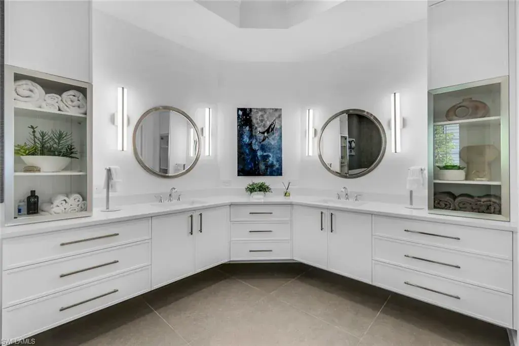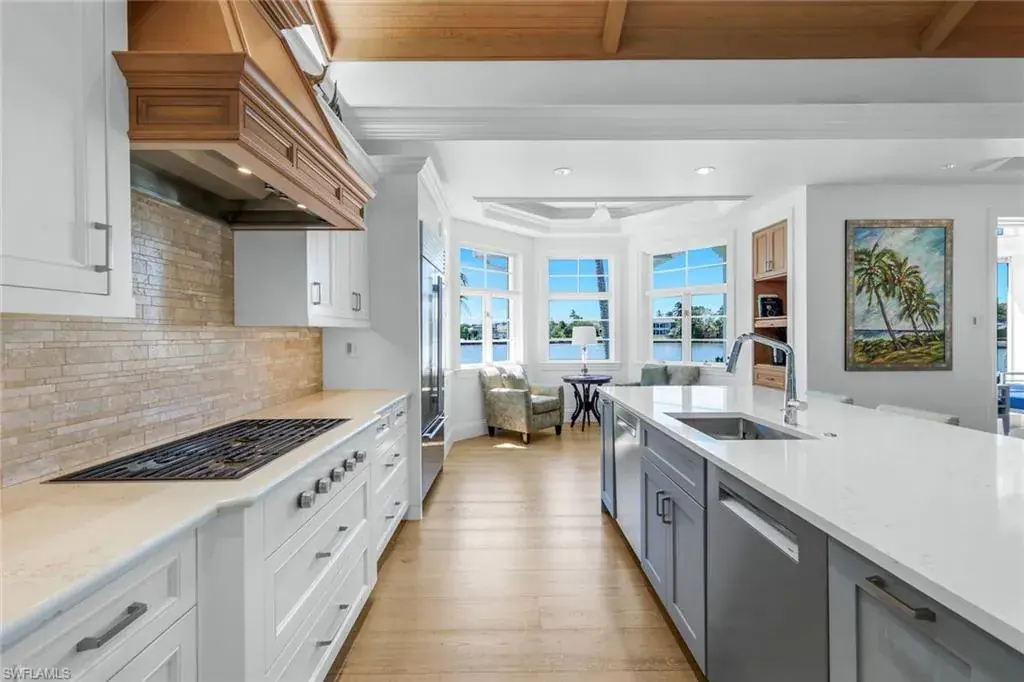 Gorgeous waterfront home on Hurricane Harbor in The Moorings – less than a mile to the private Moorings Beach. Enjoy the delightful wide bay southern exposure views from every room & breathtaking sunset every evening. Open floor plan providing one level living on the first floor & plenty of room for guests. 20’ vaulted ceiling foyer with a grand staircase and balcony, opening to unobstructed water views. This home is a seamless blend of elegance, tropical warmth, and traditional touches. A mix fine wood trim craftsmanship and modern Florida living. Entertaining and cooking is a pleasure in the updated kitchen with large island, bar, wine cellar & walk in pantry. Wolf, Subzero and Decor appliances. This home has been extensively upgraded. Secured with electric storm shutters. New roof. The seawall has been replaced in 2021. Three car garage/one temperature controlled. Take your choice to sip morning coffee from the breakfast nook, lanai or pool deck as you overlook the bay and swaying palms! This is truly your own self-contained resort and yet super close to all amenities. Short boat ride to the Gulf via Doctors Pass. Come see this amazing home and make it yours.