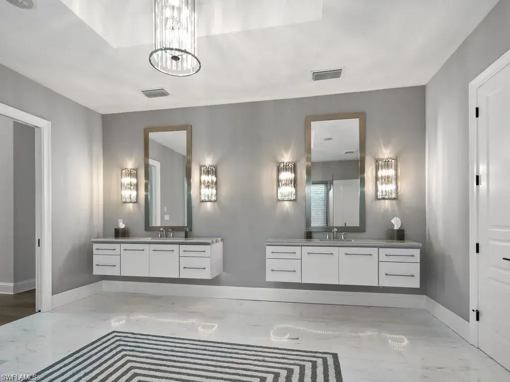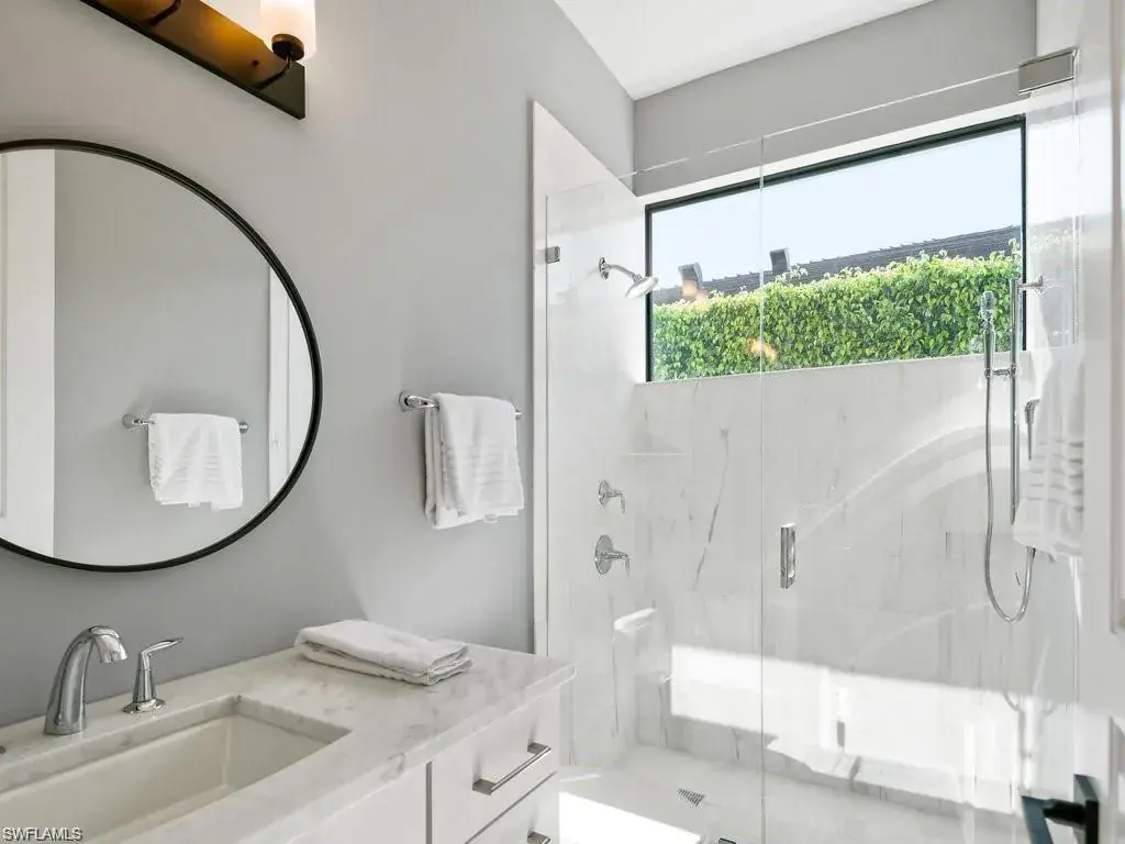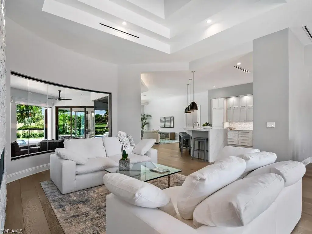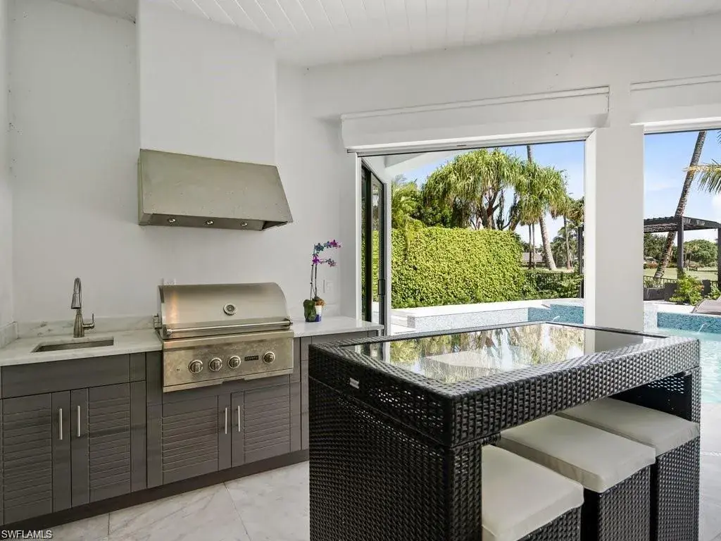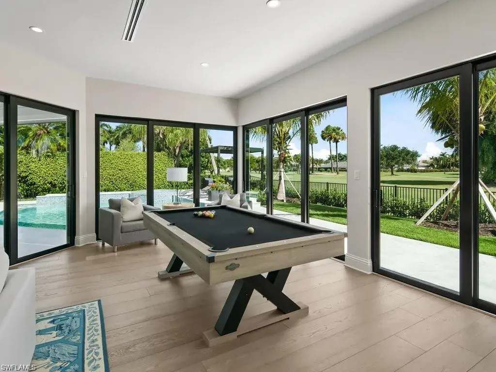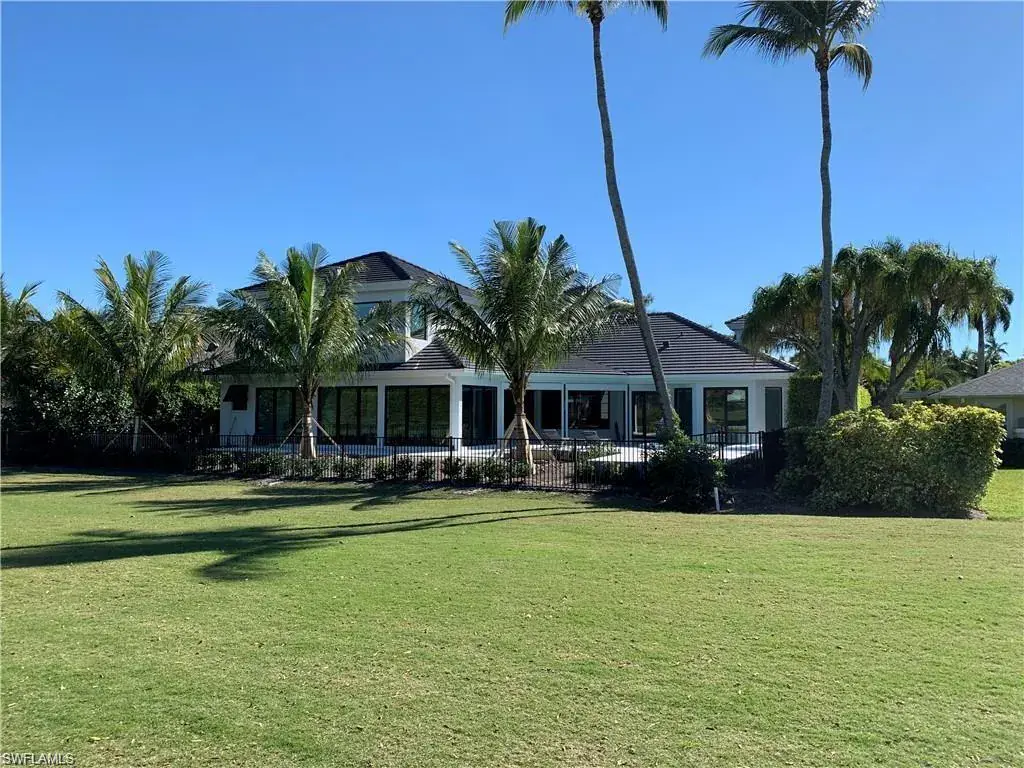 State of the art Design, Location and Views. Masterfully reimagined, this 5 bedroom, 6 bath residence of more than 5,000 sq. ft. sits on a premier lot overlooking the 18th fairway of the Moorings Golf Club. Private Moorings Beach Club membership included for the first year. Located close to fine dining, shopping and all that Naples has to offer. Open floor plan with walls of glass, high ceilings and Bespoke details. Climate controlled wine room, see thru linear gas fireplace and premium finishes throughout. Beautiful wide plank wood flooring with white marble baths. Amazing primary suite with two dressing rooms and spa bath with freestanding soaking tub overlooking private garden. Tropical swimming pool with Spa, water features and sun ledge. Louvered ceiling pergola with gas fire table overlooking the manicured golf course. Perfection!