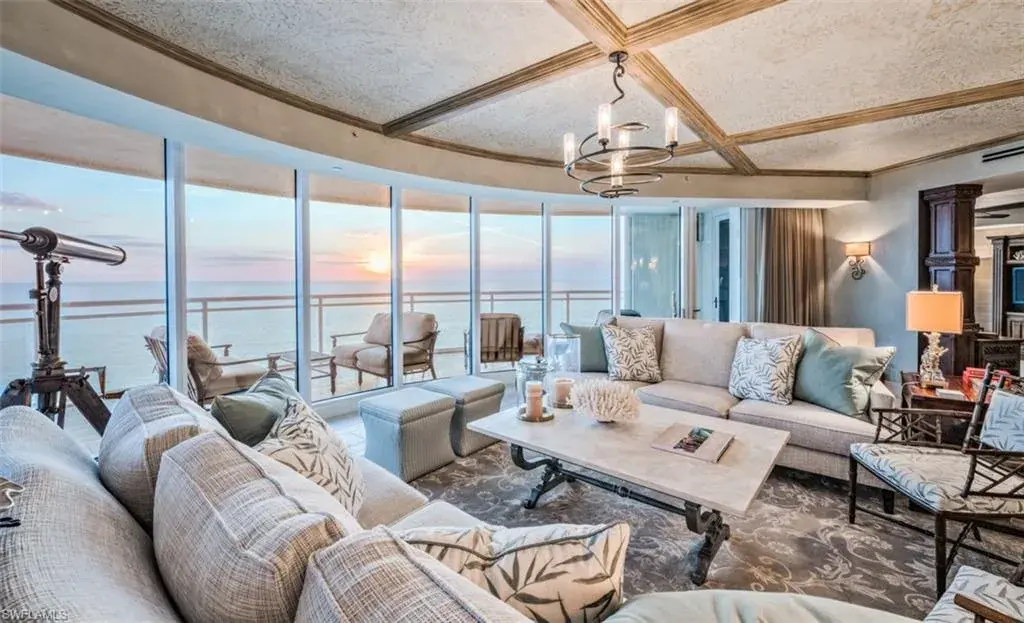 Penthouse unit available in Moraya Bay! PH3 with direct beachfront access and spectacular panoramic western views of the Gulf of Mexico and the gorgeous white sand beaches, features wood flooring, custom upgrades and exquisite detail throughout. The spacious 3-bed + Den, 3.5-bath, 4,000+-sq ft residence comes with a coveted enclosed 2 car garage with extra air conditioned storage. Located on the 11th floor, this open-concept residence is accessed through private elevator and features a gorgeous chef-grade kitchen, as well as great room and dining areas with magnificent Gulf-front views thanks to floor-to-ceiling glass. The high-end chef’s kitchen features a gas range, dishwasher, multiple refrigeration units, ice maker, wine cooler and ample storage. The large master bedroom also enjoys wall-to-wall floor-to-ceiling glass for unforgettable views. The huge lanai (with glass railings and sliders) makes sunsets feel close enough to touch. When you’re not spending time inside this stunning space, Moraya Bay’s 2 pools, beach and poolside service, restaurant, beachfront gym, full-time manned security and concierge services make you feel as though you are staying at a 5-star resort.