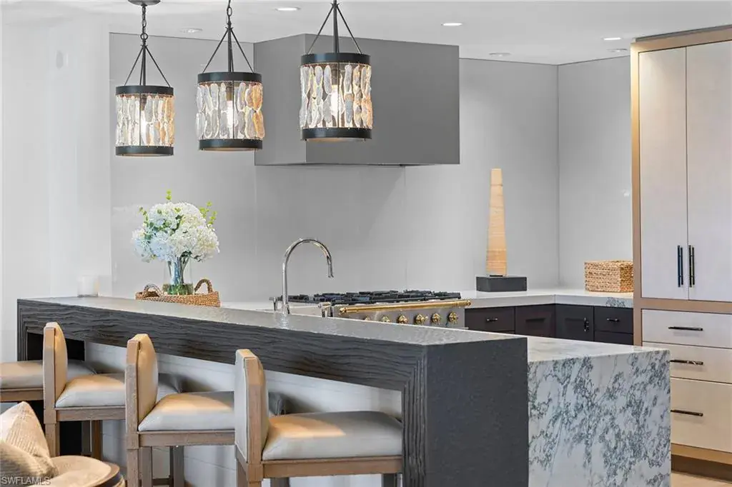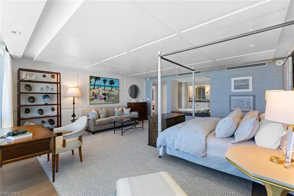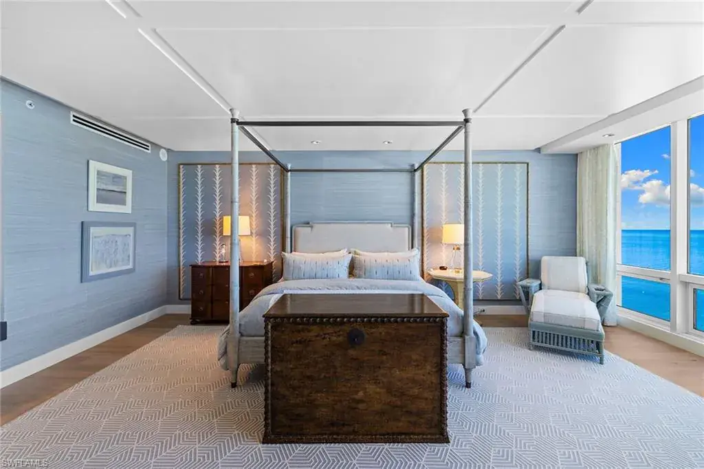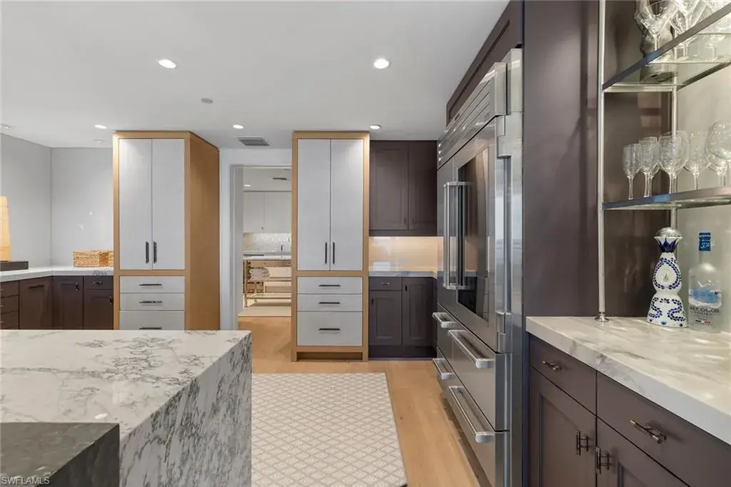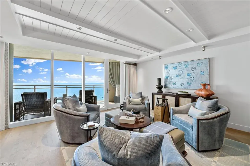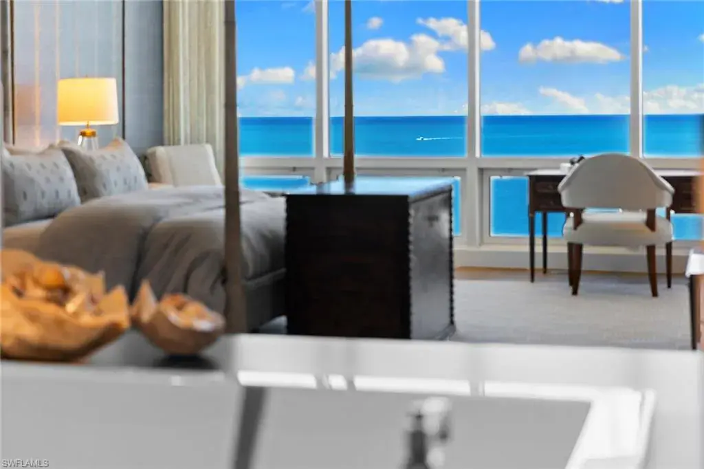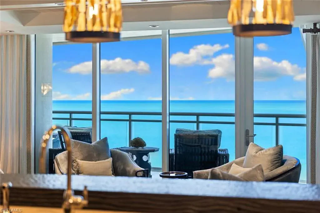 Experience beachfront luxury at its finest. Moraya Bay offers full amenity, resort-style lifestyle featuring indoor and poolside dining, beachfront lounge chair service and 24-hour security, all in one of Naples premier Gulf-front communities. This exquisite three-bedroom residence in the desirable 05 stack showcases one of the widest and closest beach views in the building. Completely reimagined by Renée Gaddis Interiors, the home blends refined design with top-tier craftsmanship. The gourmet kitchen features a La Cornue range and oven, Thermador commercial refrigerator, and an impressive butler’s pantry with three Thermador wine refrigerators plus an additional Thermador refrigerator and freezer. The primary suite offers sweeping Gulf views, a generous walk-in closet and a spa-like marble bath. The private elevator entrance opens directly into your residence, creating an intimate sense of arrival and privacy. With impeccable finishes, sophisticated design and unrivaled beachfront amenities, this is one of Naples exceptional coastal offerings.